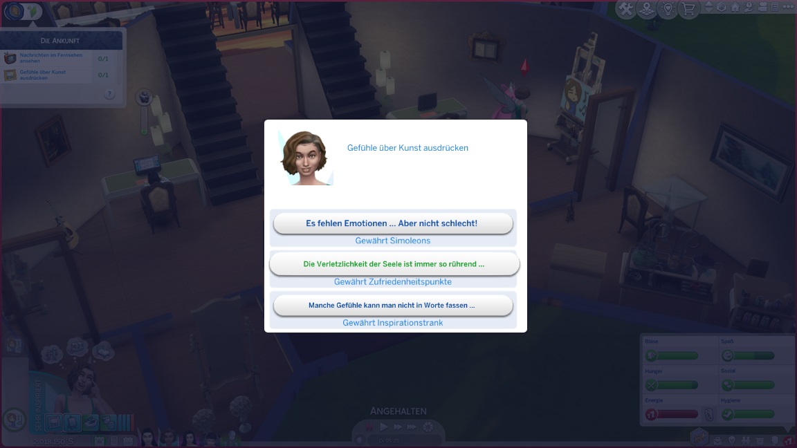 Als Lucretia das Bild fertigstellt und über ihre Gefühle spricht, darf sie eine Belohnung wählen.