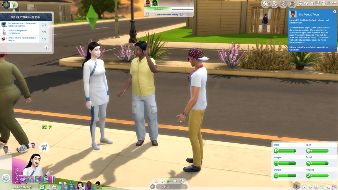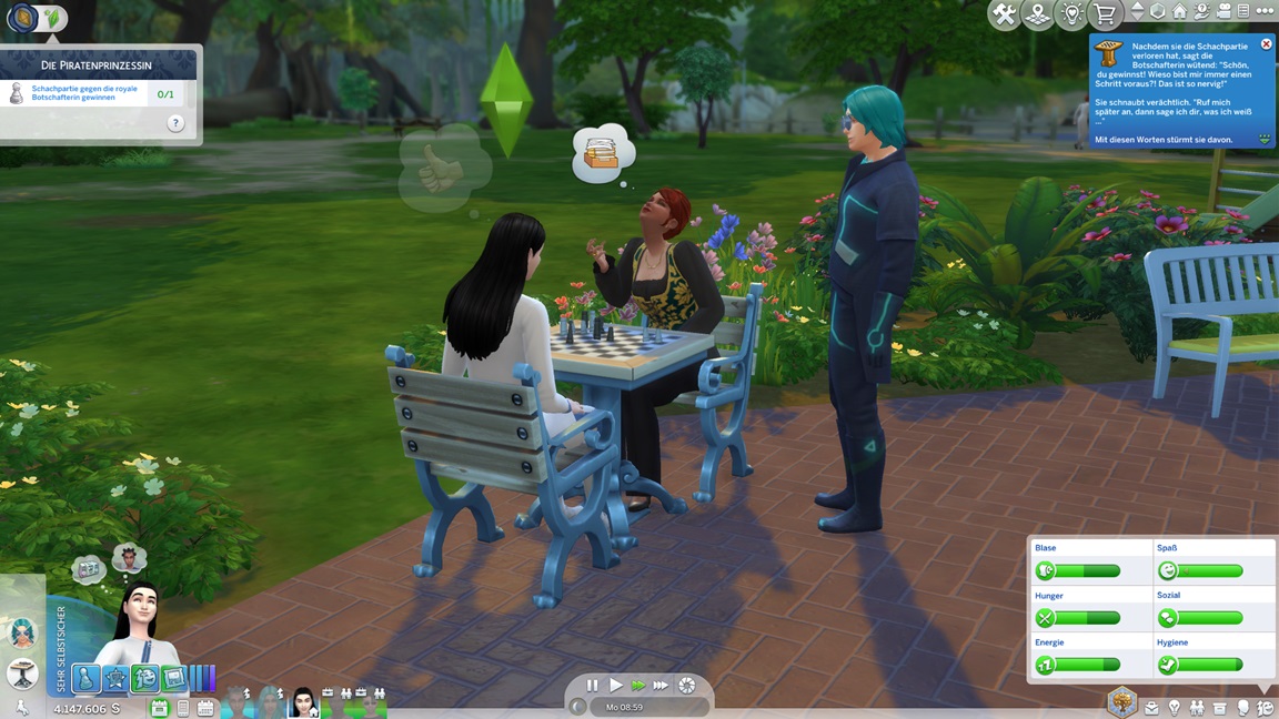 Bei dem dritten Adelshaus handelt es sich um die Familie Thor. Die Botschafterin besteht auf ein Duell (im Schach), ehe sie mehr erzählt.