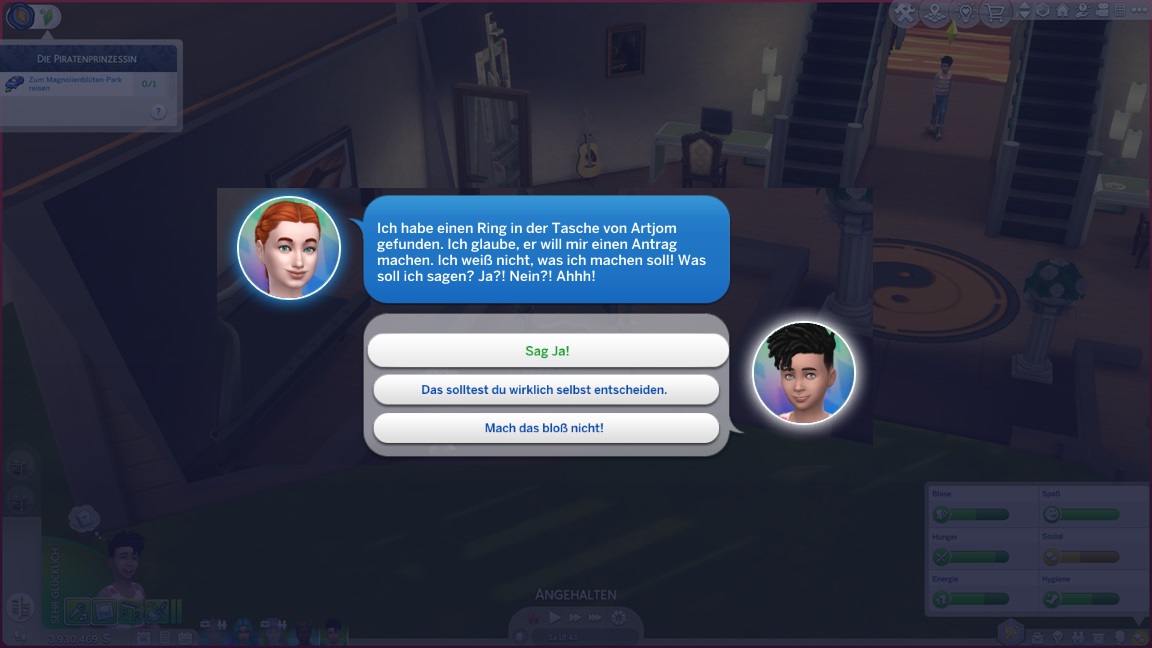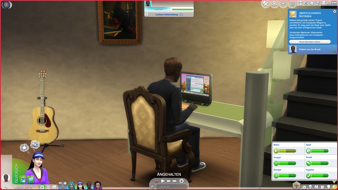 Lure wählt Jack für die romantischen Interaktionen. Robert jubelt und wendet sich dem letzten verbliebenen Feld, Kreativität, zu.