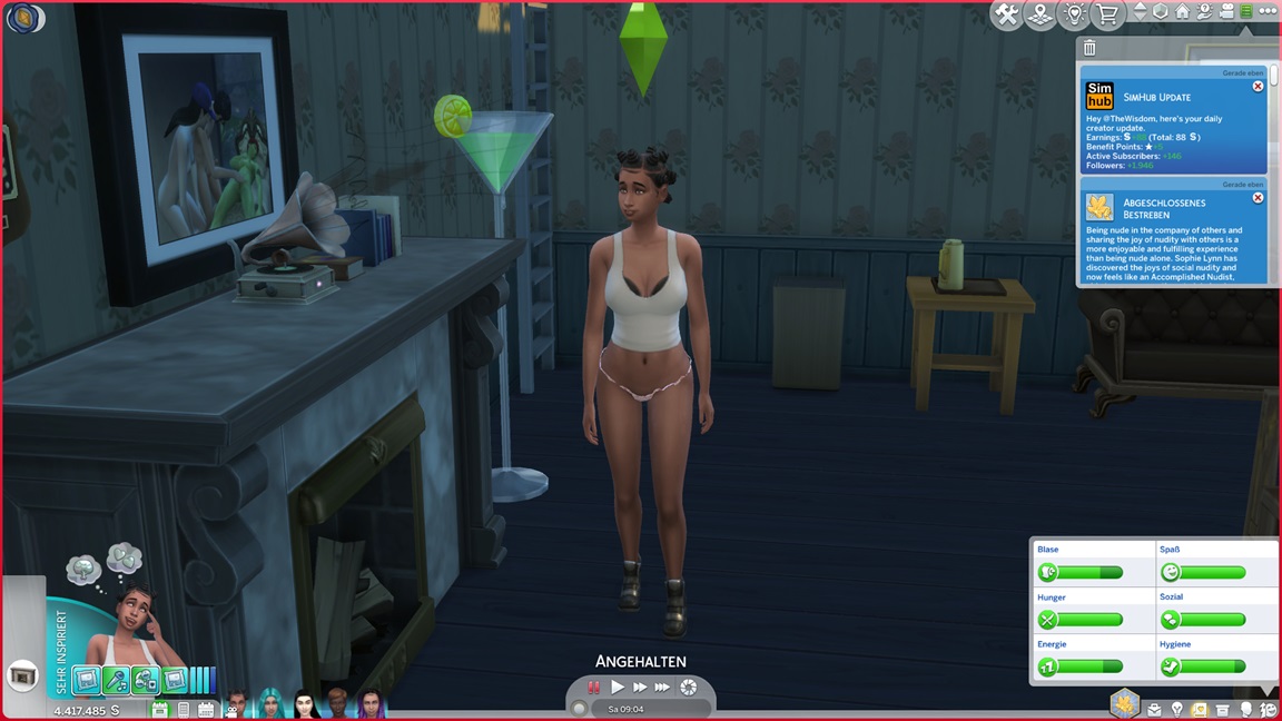 Vegetarierin und Entkleidungsbestreben. Sie befindet sich damit ebenfalls weiterhin mit auf Kurs.