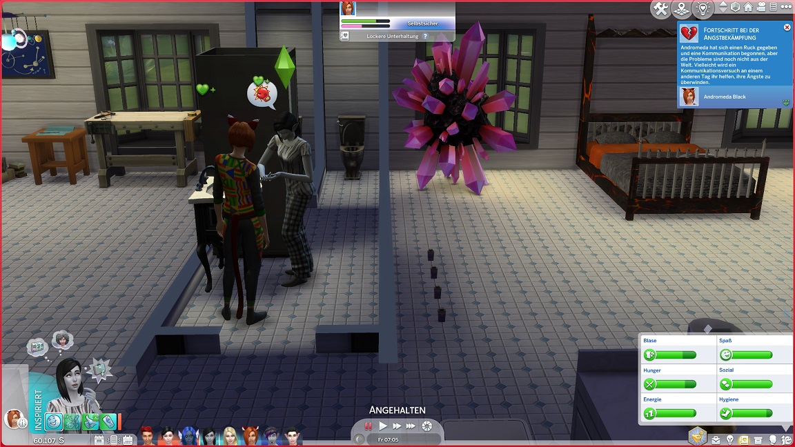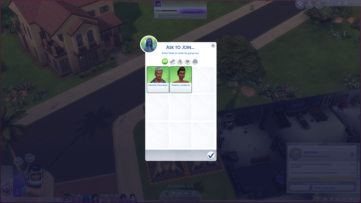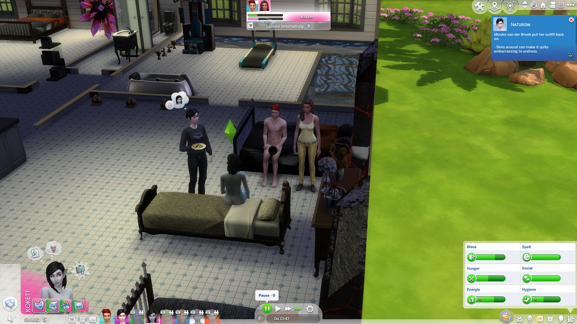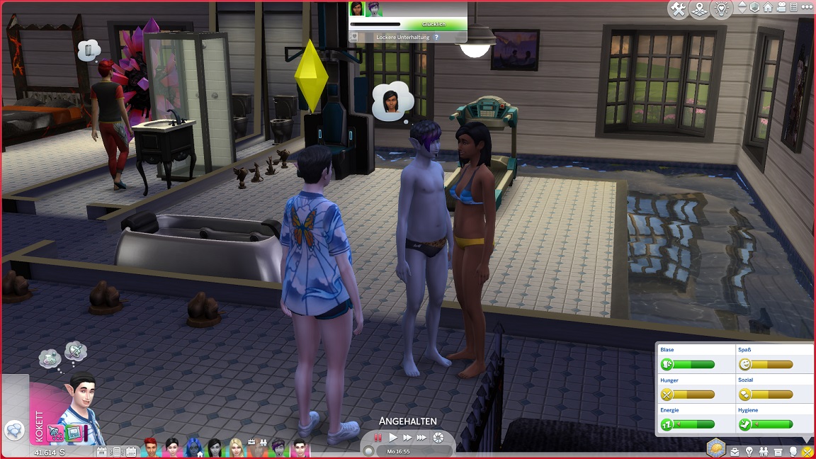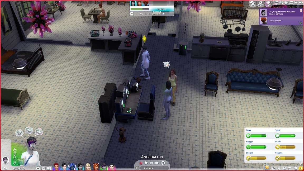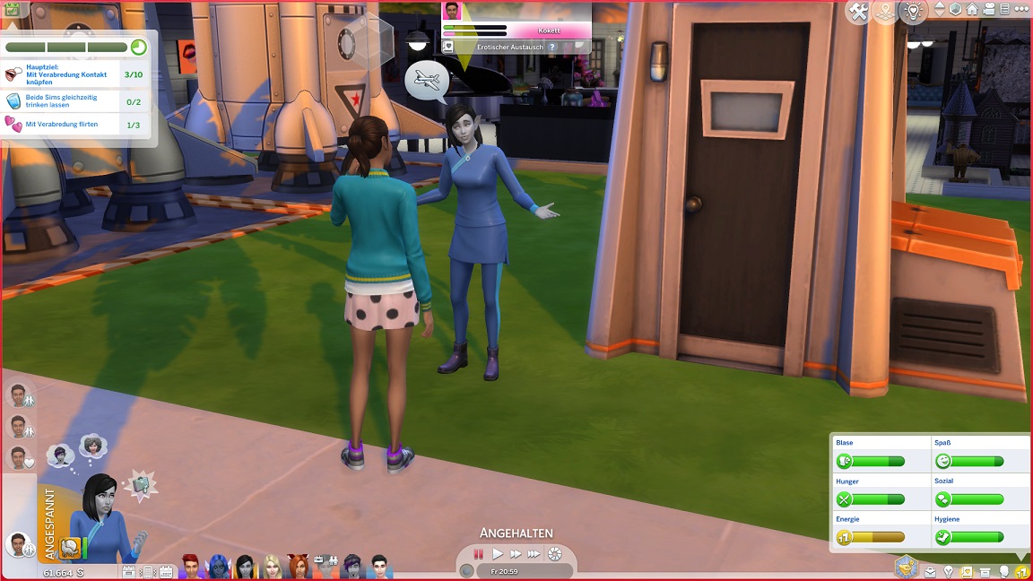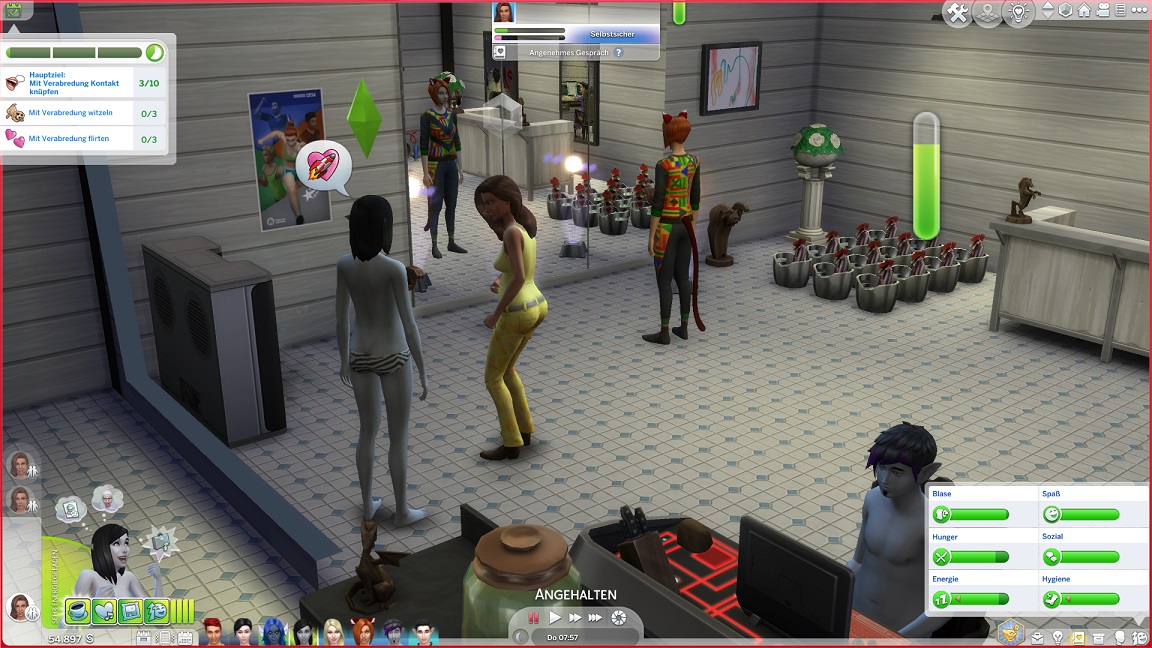 Danach versucht Telys weiter, von der Nachbarin ein Ja zu bekommen, kommt allerdings nicht weiter. Sie lädt zwei weitere Nachbarn ein - weil ihre Denkblasen vorgeben, mit einem zu flirten und mit dem anderen Schluss zu machen.