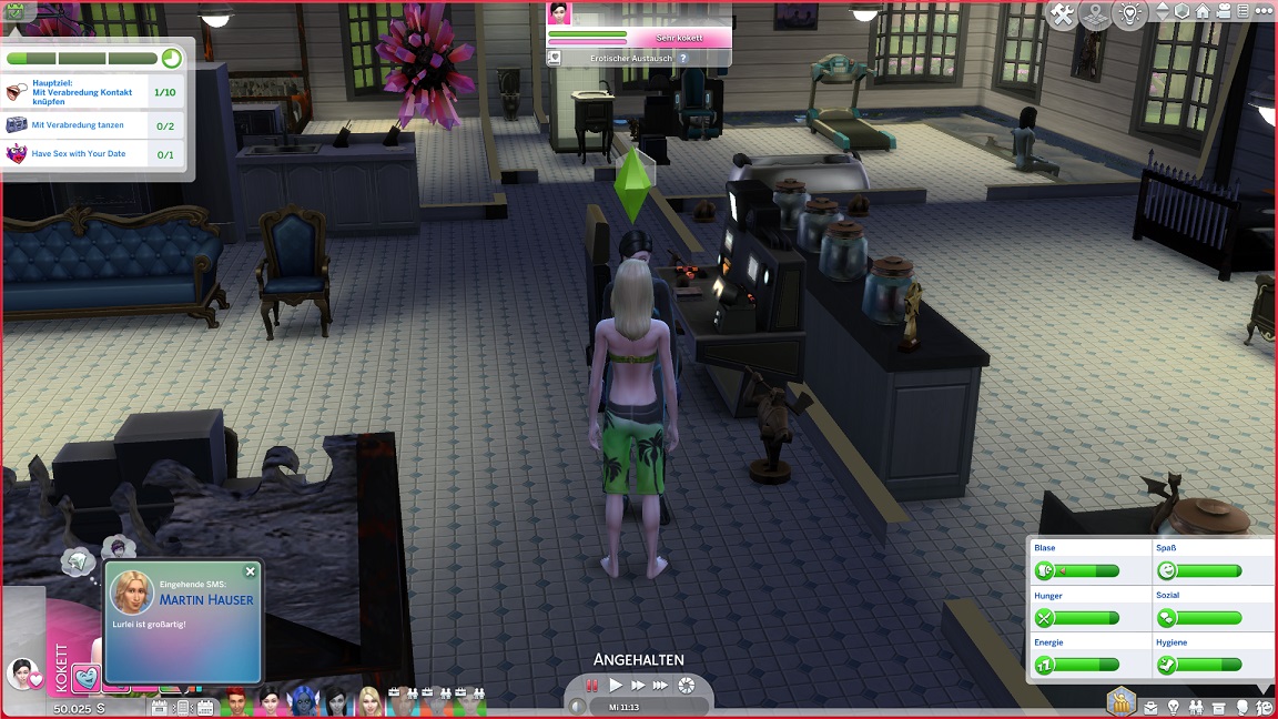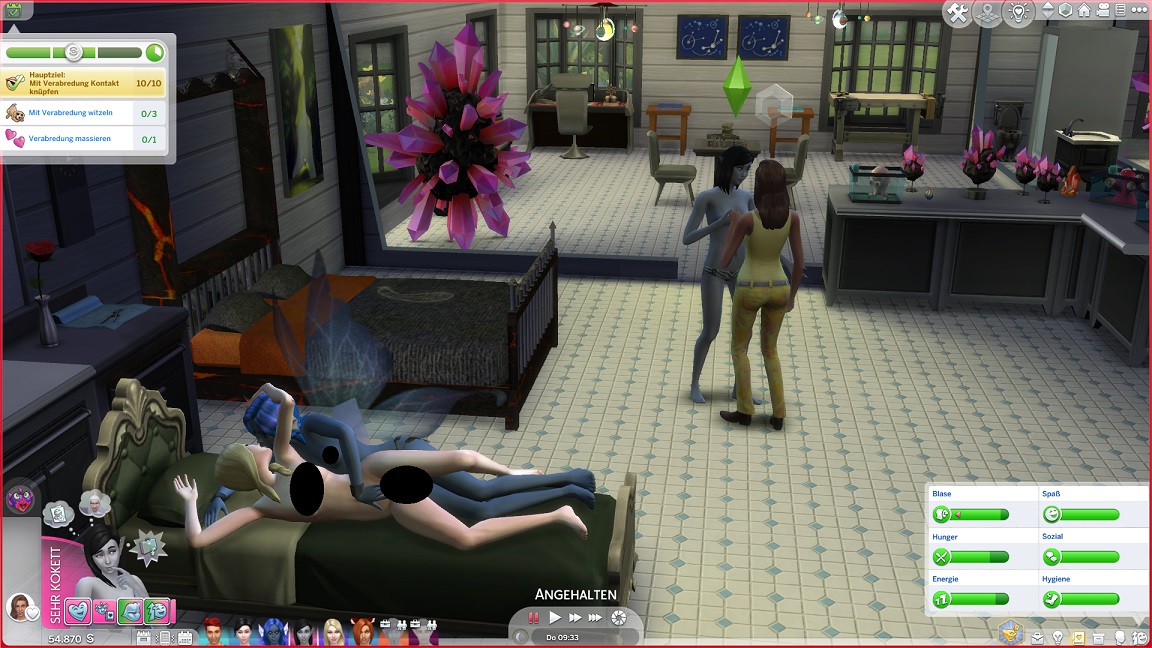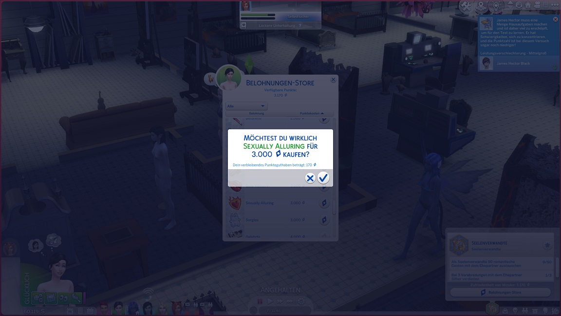 Telys lädt eine weitere Nachbarin ein - und empfängt sie nach dem Baden, was ja auch etwas aussagt. Andromeda nutzt derweil ihre momentan reichlich vorhandene Freizeit (da ihre Ambitionsfortschritte am Kind hängen), um Charisma zu pushen.