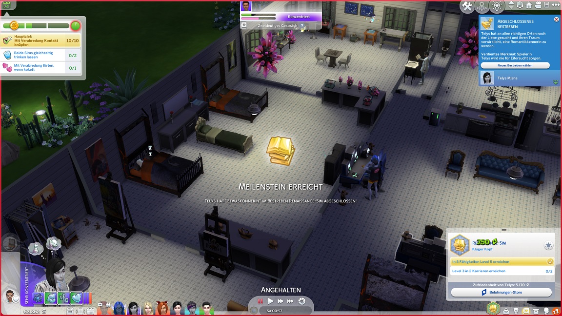 Nachdem Telys also ihr Handwerk meisterte und den Ruf eines Maschinengremlins hinter sich ließ, indem sie erst einem Gatten und anschließend der restlichen Nachbarschaft Liebe schenkte, möchte sie sich noch breiter aufstellen - und wendet sich dem Renaissance-Sim zu.