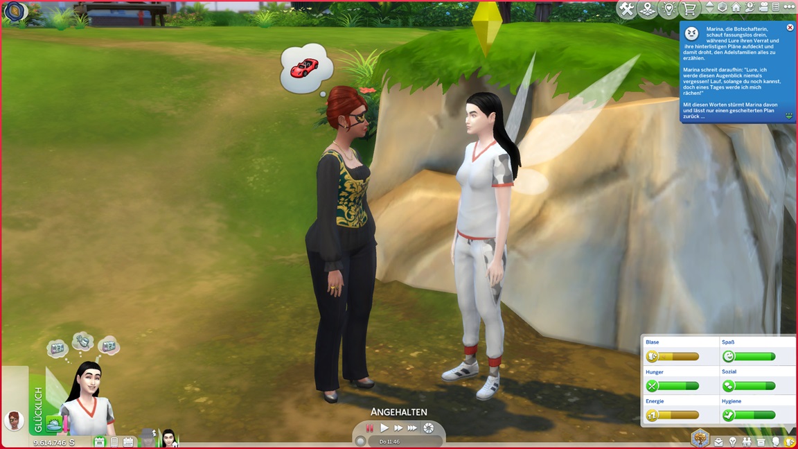 Sie steht vor einer letzten Entscheidung: Soll sie die Botschafterin melden oder nicht?`Sie verpfeift sie, in der Hoffnung, nicht auch noch von einem dritten unsterblichen Sim umlagert zu werden. Das findet diese natürlich nicht nett.