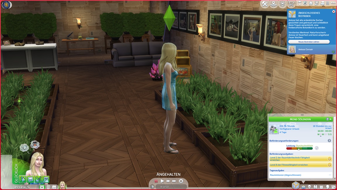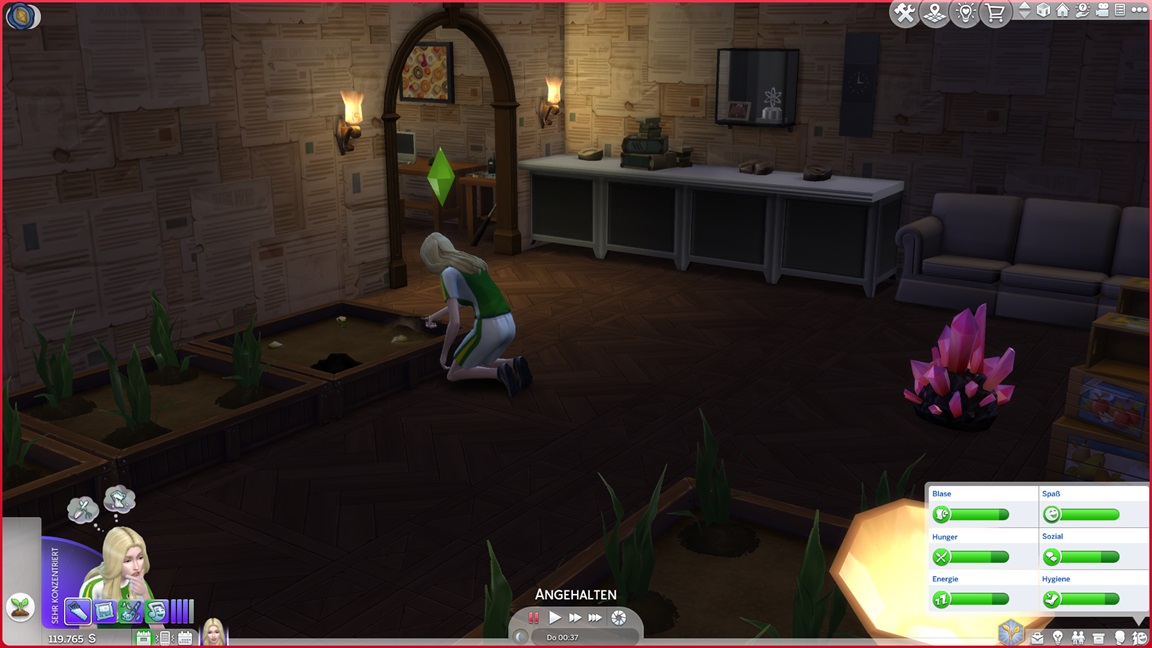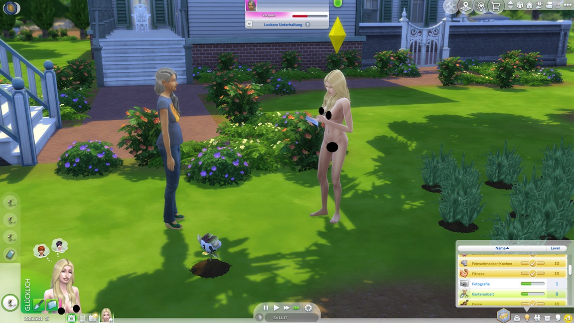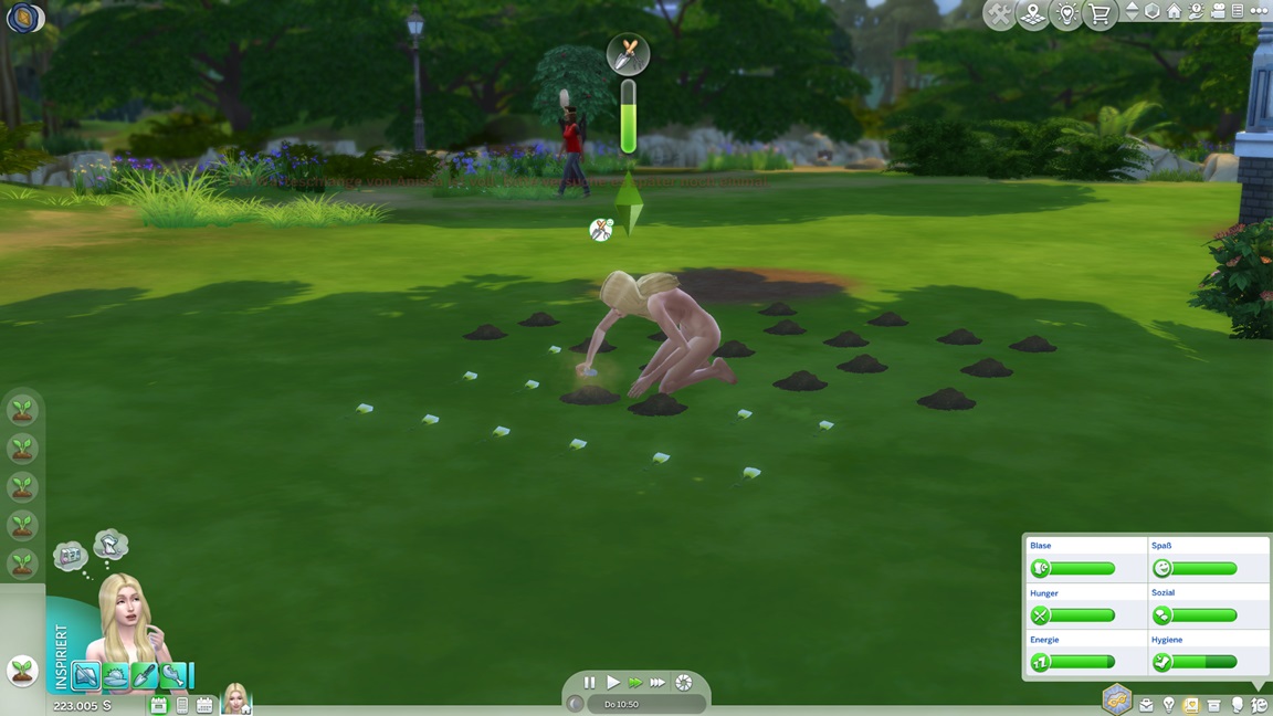 Sie schließt auch die Gartenarbeit-Fertigkeit ab und erkennt, dass ihre Gärtner-Großtaten auf fremdem Boden nicht für ihr Bestreben zählen. Sabine bietet ihr noch eine weitere Möglichkeit.