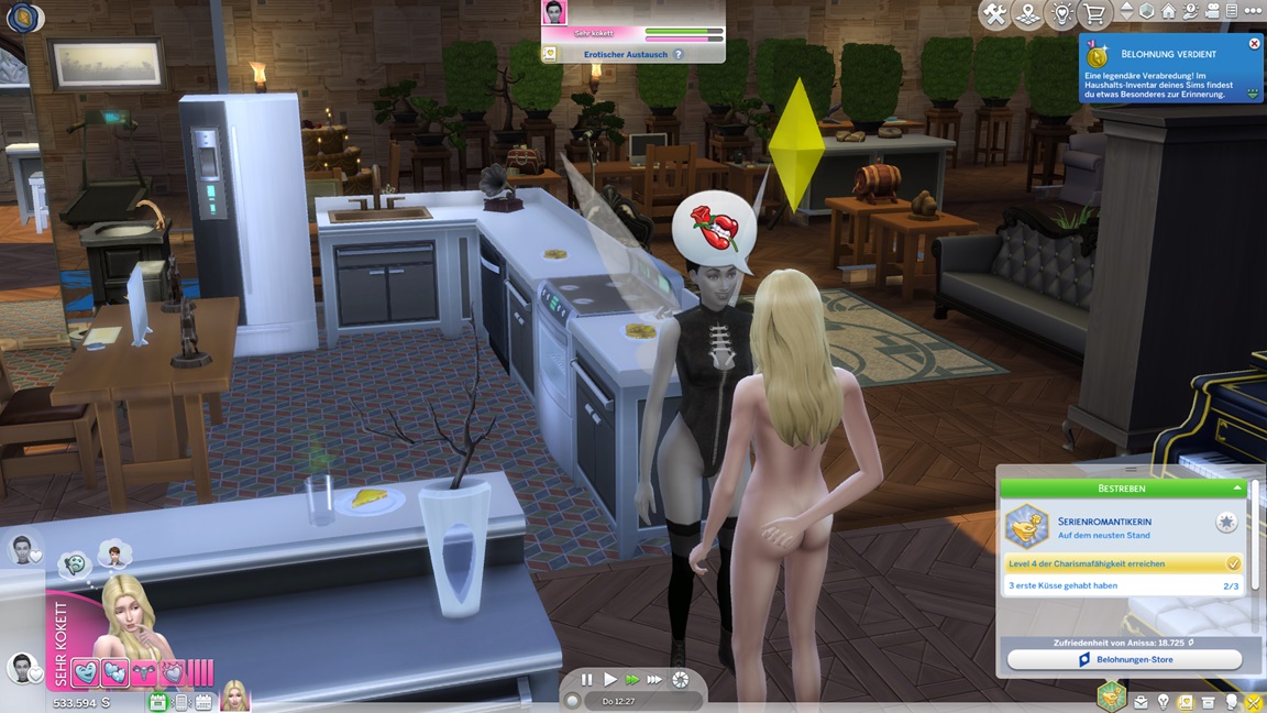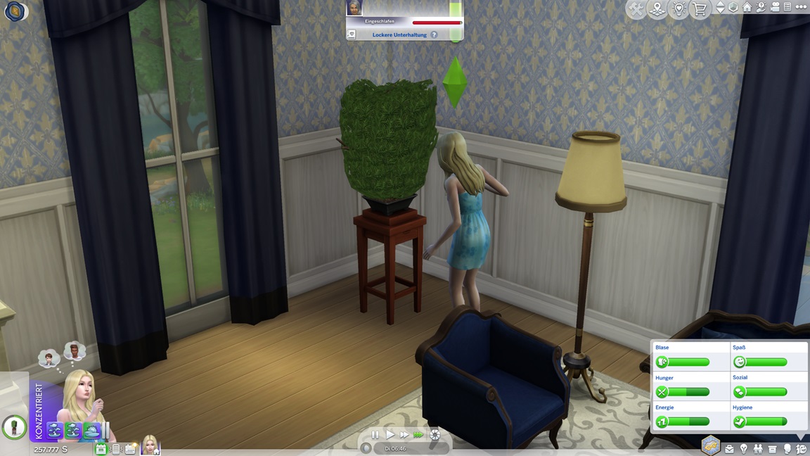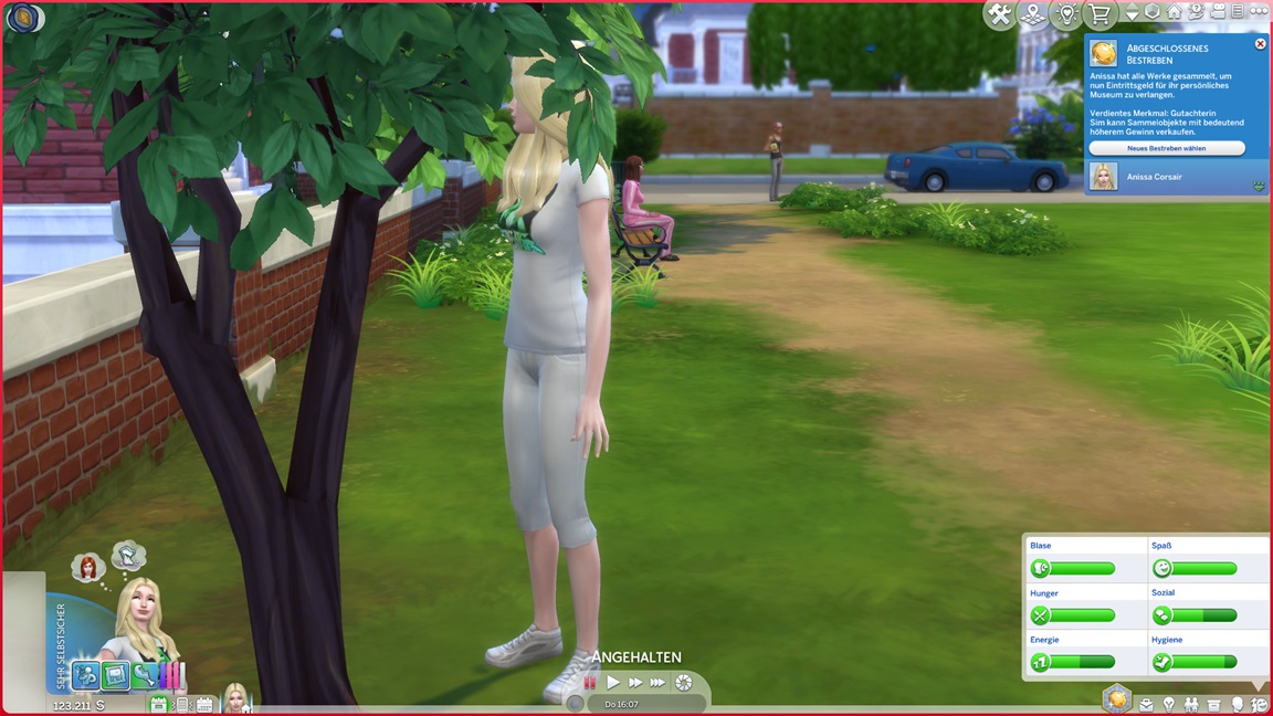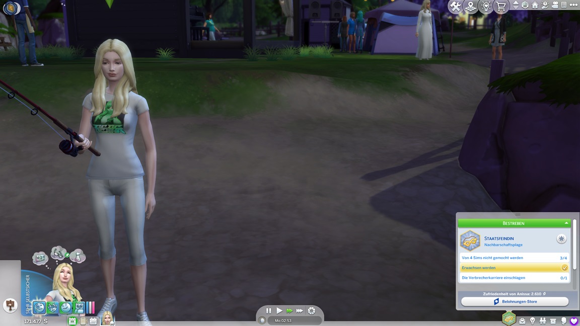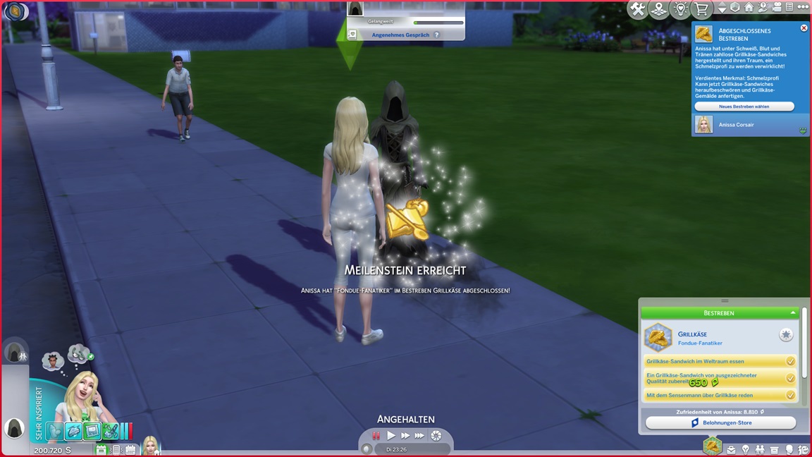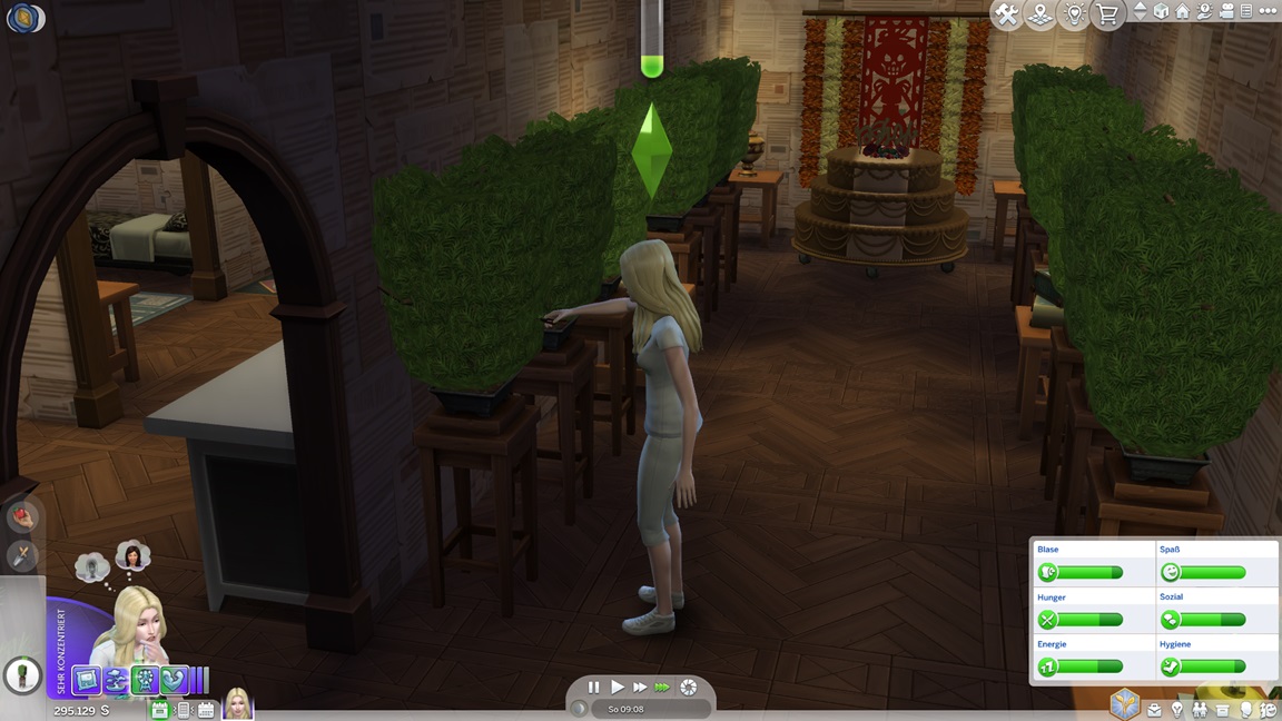 Die eine der beiden Unheil-Bestrebungen verlangt von Anissa, an drei fremden Orten Abflüsse zu verstopfen, was sich leicht mitnehmen lässt. Die andere fällt schwerer: Sie muss miterleben, wie ein Sim stirbt. Da das Spiel seine NPCs schützt, sieht Alissa nur einen Weg: Sie quartiert sich bei einer alleinstehenden Rentnerin ein und hofft auf das Ende ihrer Lebensuhr. Dies ist Sabine Schmidt, und sie lebt in einer Villa.