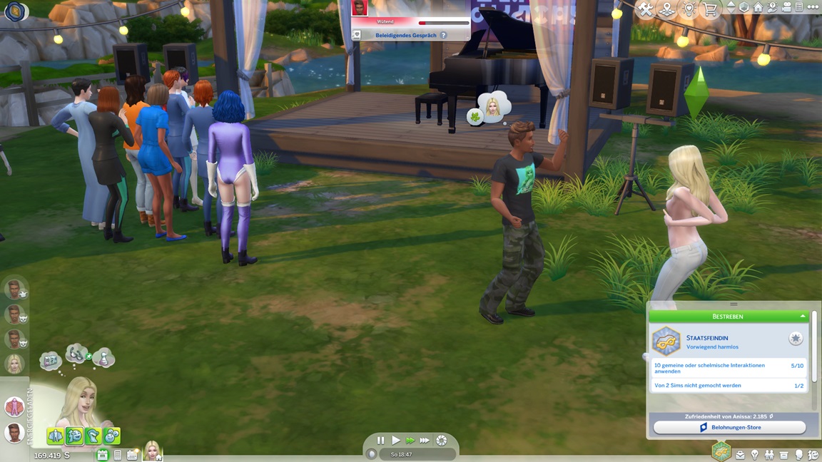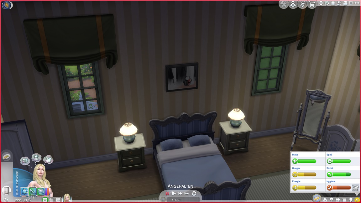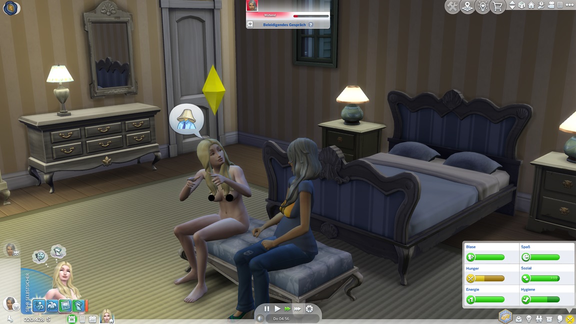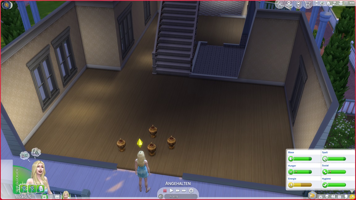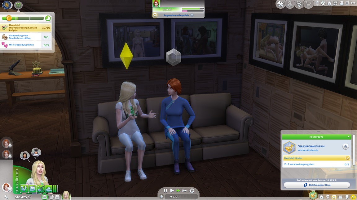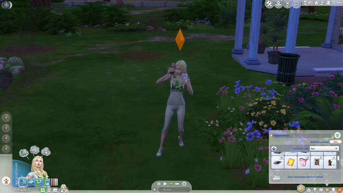 Die eine der beiden Unheil-Bestrebungen verlangt von Anissa, an drei fremden Orten Abflüsse zu verstopfen, was sich leicht mitnehmen lässt. Die andere fällt schwerer: Sie muss miterleben, wie ein Sim stirbt. Da das Spiel seine NPCs schützt, sieht Alissa nur einen Weg: Sie quartiert sich bei einer alleinstehenden Rentnerin ein und hofft auf das Ende ihrer Lebensuhr. Dies ist Sabine Schmidt, und sie lebt in einer Villa.