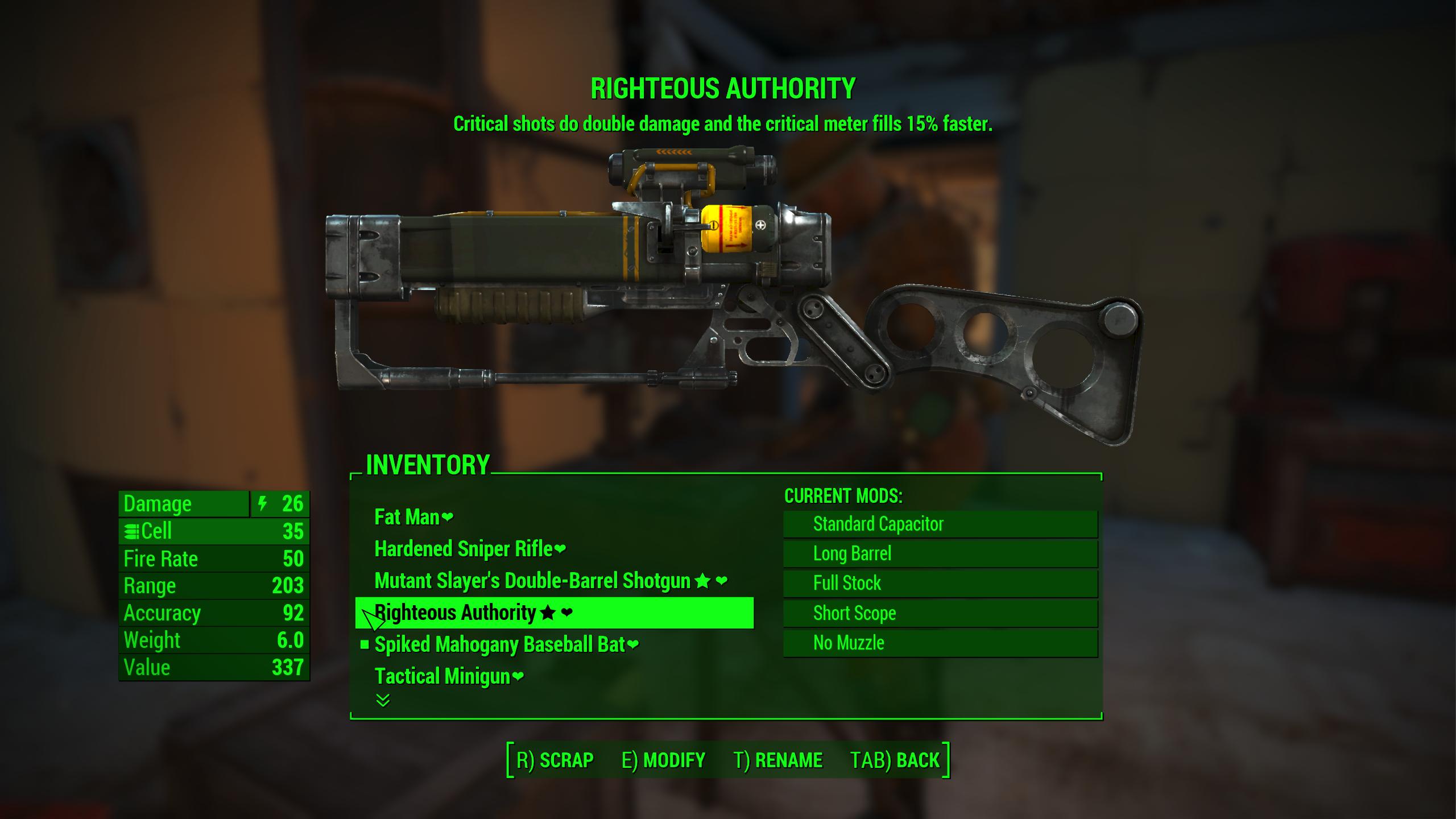 Power Armor, diese ist ziemlich mächtig und lässt sich auch ausbauen und erweitern. Verbraucht aber relativ schnell den benötigten Fusionskern, deswegen bleibt Sie meistens zu Hause.