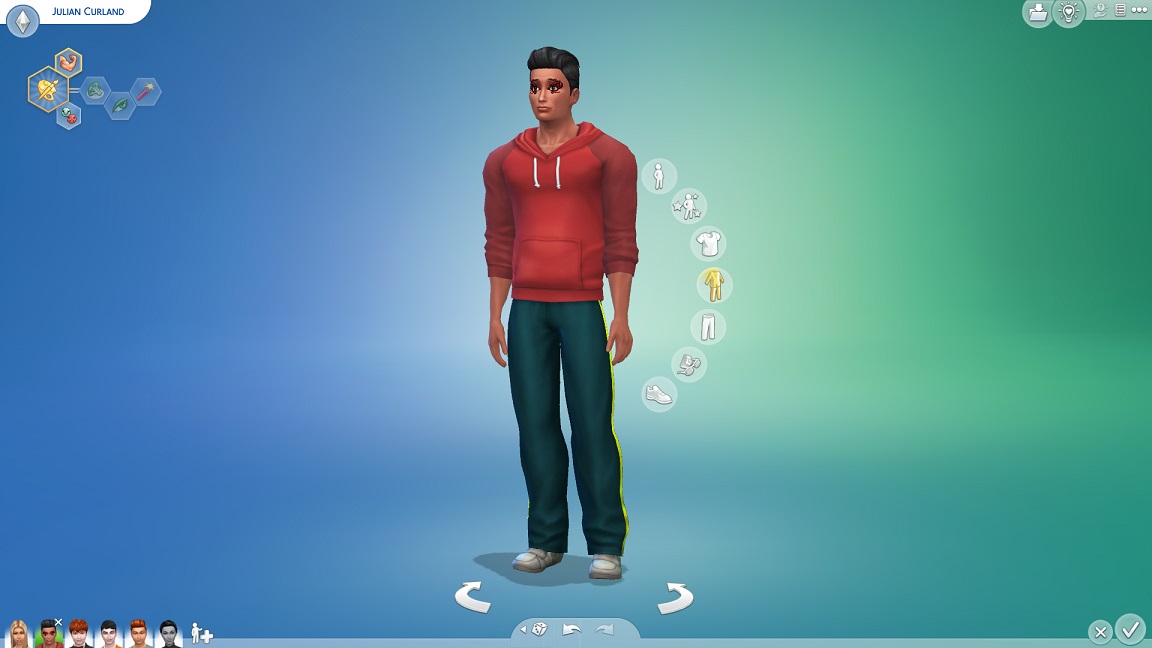 Bei Julian Curland, Sohn Mizukos und Carolins, jenem Großfamilienträumer, Sportler, angehendem Maler und Menschen mit panischer Angst vor Pflanzen, geht die Verhandlung in die nächste Runde. Er erklärt nach der Forderung trotzig, sich einen Bereich jenseits Malerei und Sicherheitsabteilung zu suchen, dass er dann eben als Kellner in Vier Vorne anheuern könne – und zu seiner Überraschung nicken seine Mutter und deren Gattin sowie Chefin das ab. Er ist vegetarisch, eifersüchtig und hitzköpfig, mag Videospiele und Goth-Musik, erweist sich als bisexuell und schweigt sich über den Sinn seiner Augentätowierung aus. Er kellnert.