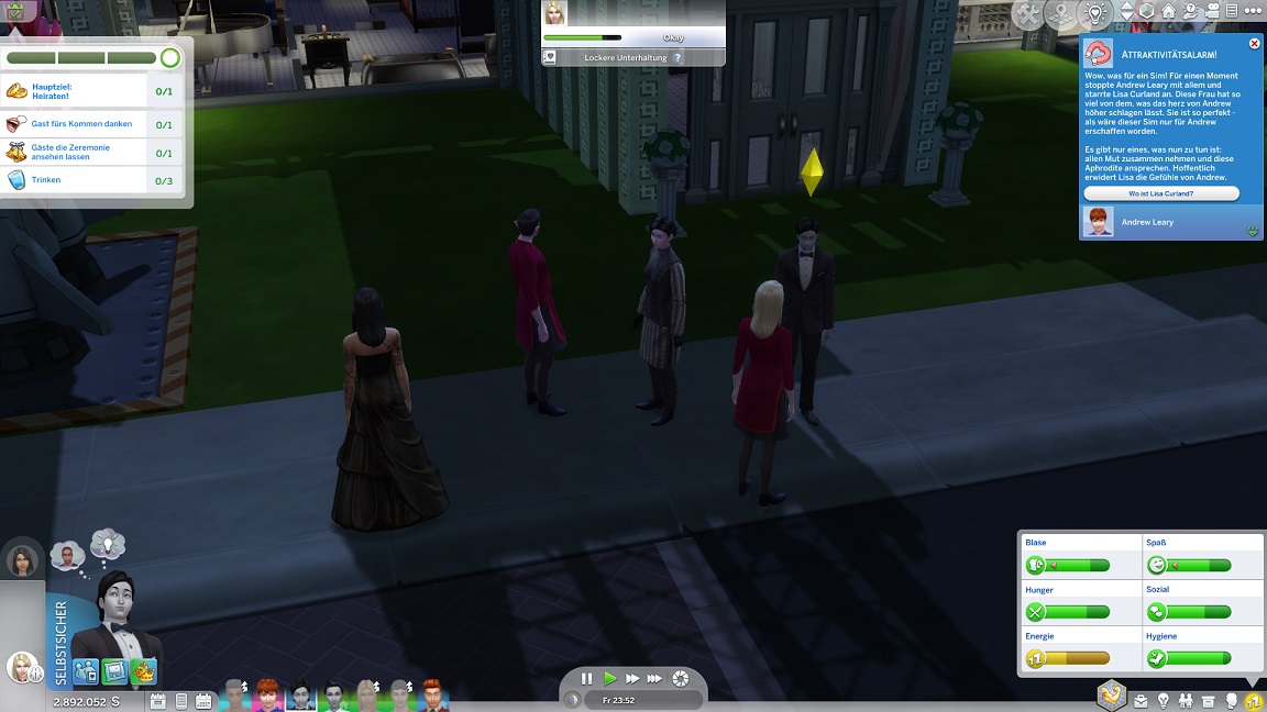 Es werden keine Ziele angezeigt, doch Andrew handelt, wie man es bei einem Date erwarten würde.