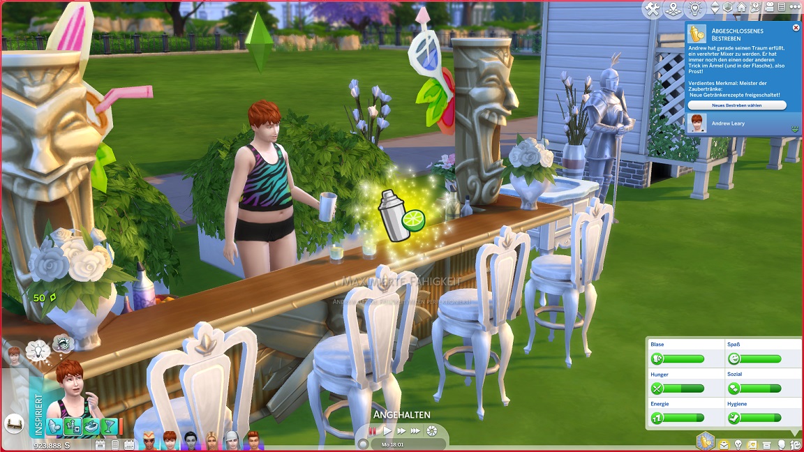 Die drei Getränke wurden mitgenommen. Genau wie Luna muss Axel damit nur noch Fähigkeit pumpen.
