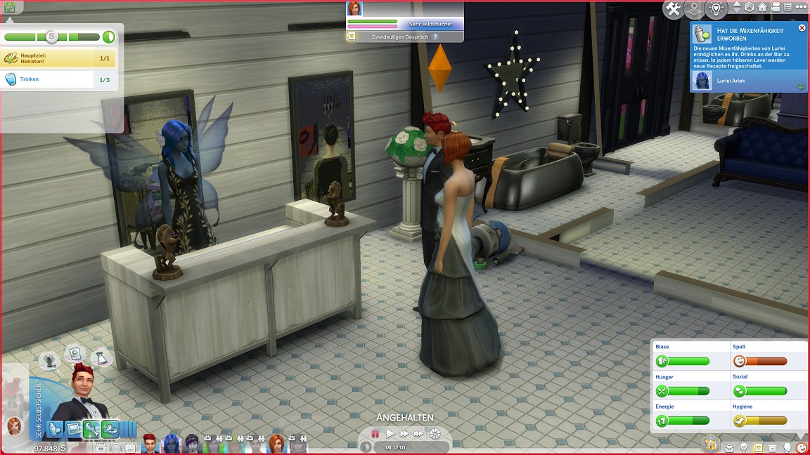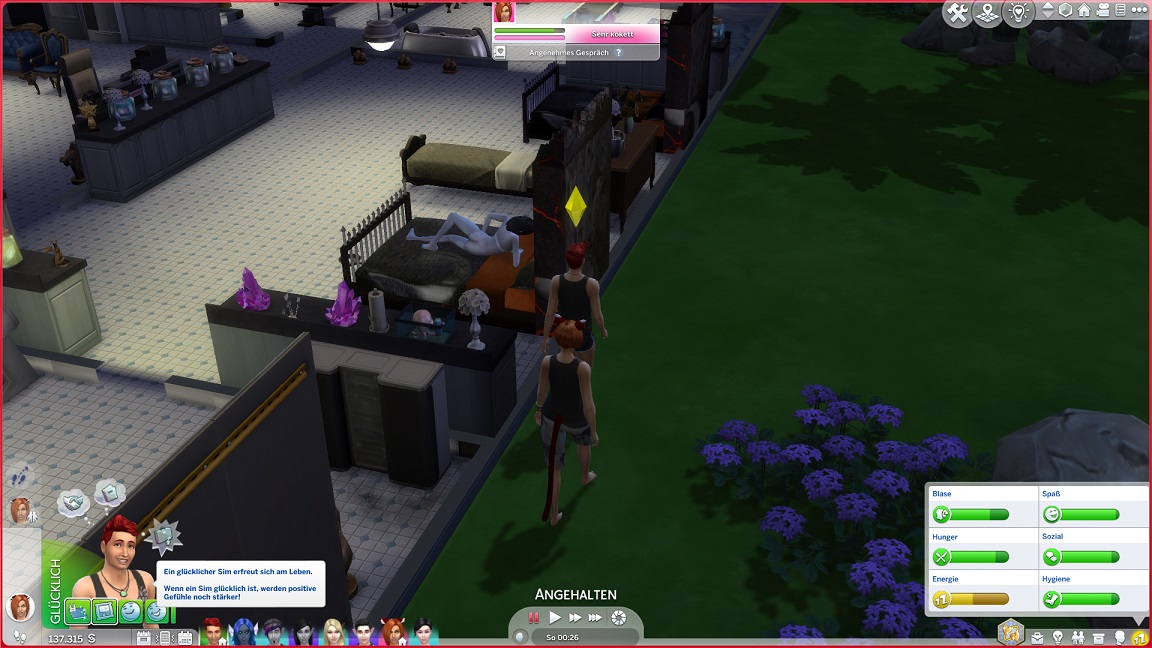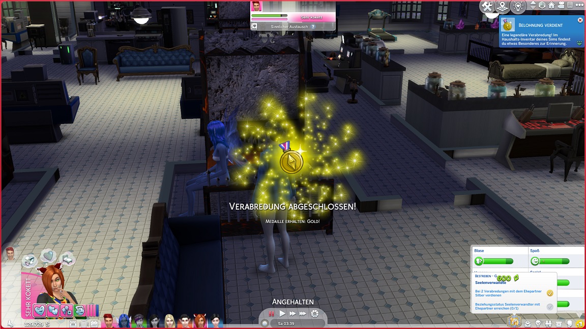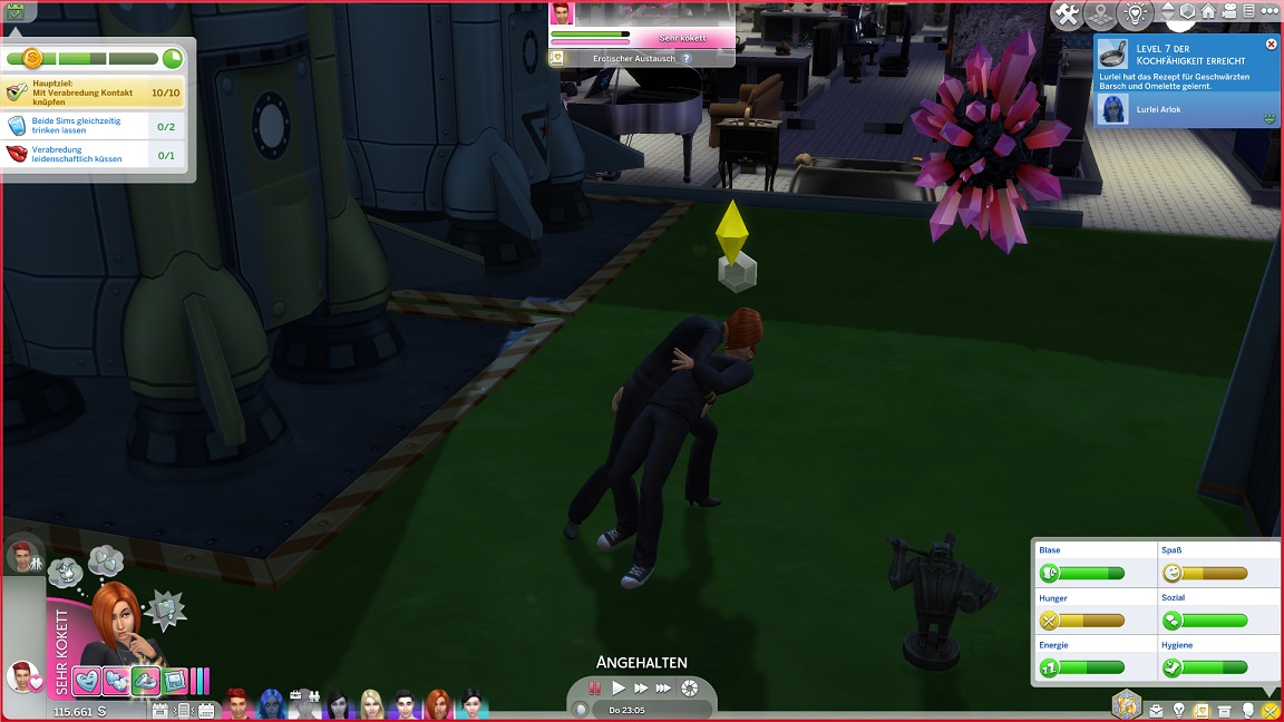 Während Jack und Andromeda ihre Rückkehr feiern, Lisa ihre Abneigung für romantische Musik entdeckt und Lurlei und James auch etwas Liebe leben, offenbart sich ein Hürde: Beide Paare müssen einander auf Seelenverwandter-Status bekommen - und auch wenn ich mich intensiv bemühen werde, ihre Beziehungen zu maximieren, wird es mir in dieser Session nicht gelingen.