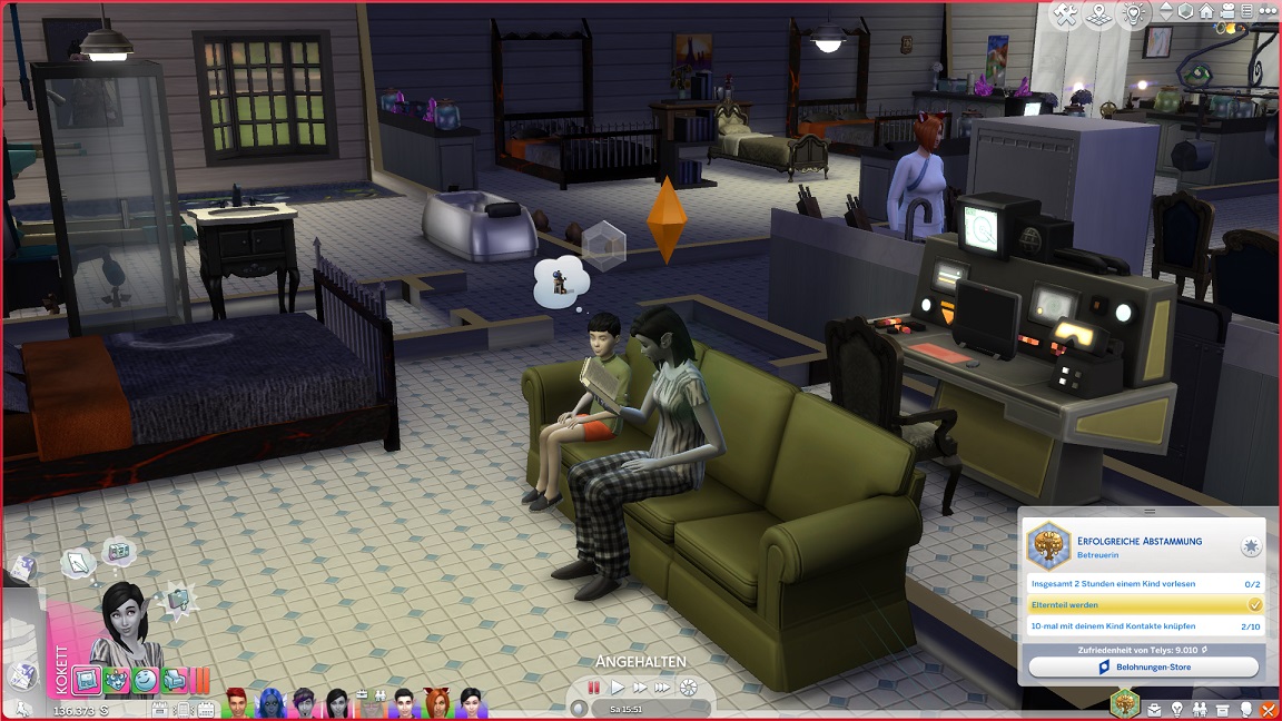 Telys muss für die gegenwärtige (zweite) Stufe zwei Dinge erreichen: zehn Interaktionen mit einem eigenen Kind (einfach) - und einem Kind etwas vorlesen.