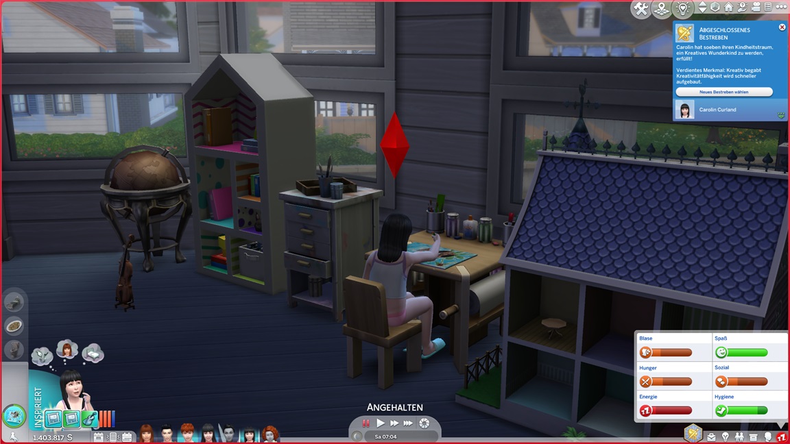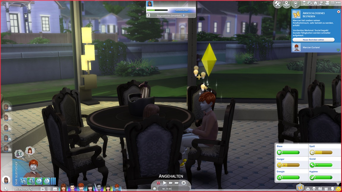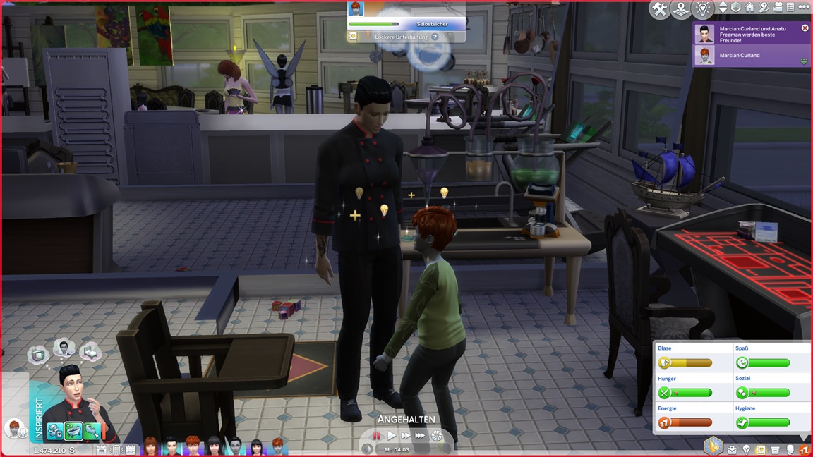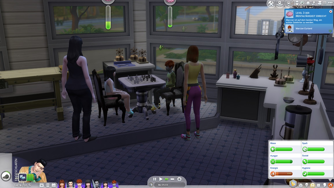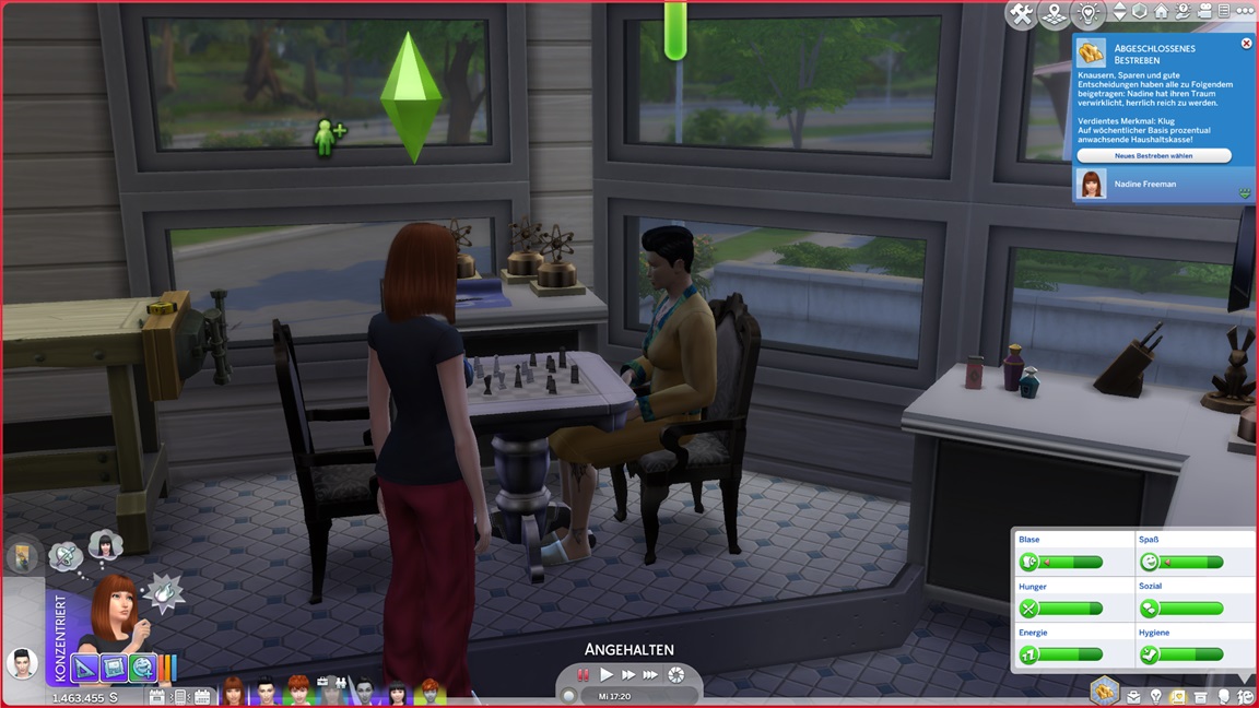 Die Entscheidung des nächsten Bestrebens ließ ich offen. Etwas Soziales würde sich anbieten, doch das Micromanagement von drei Sozialcharakteren erweist sich aktuell bereits als zuviel.