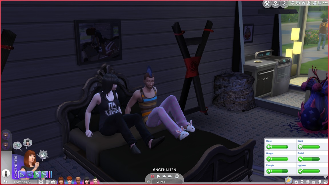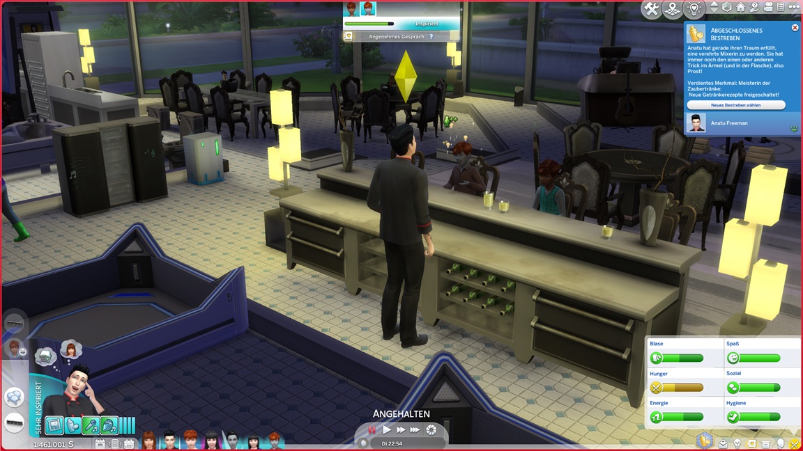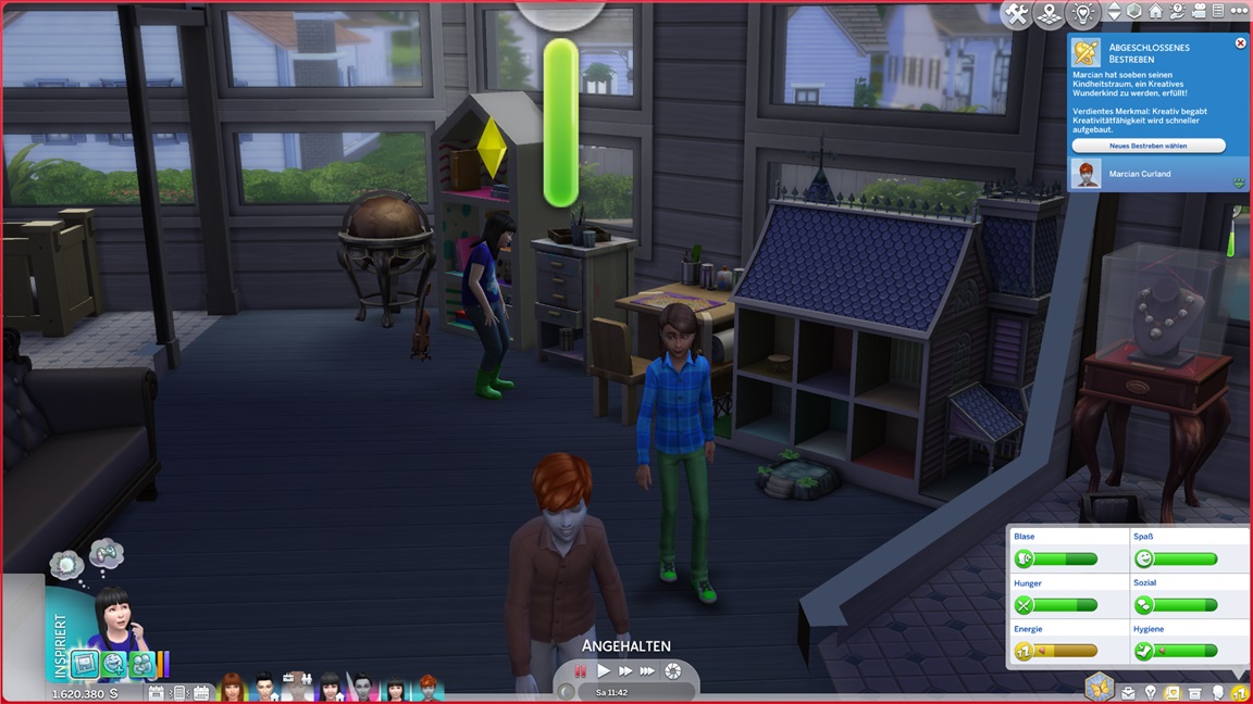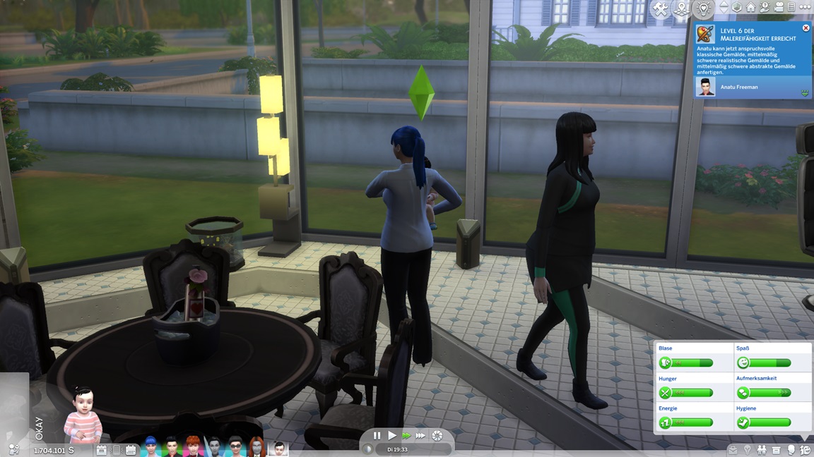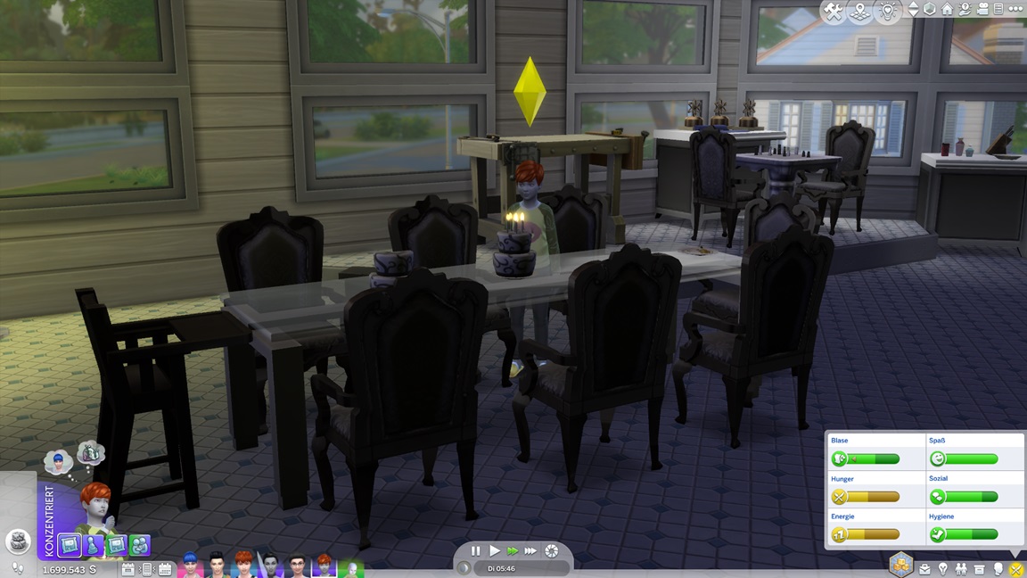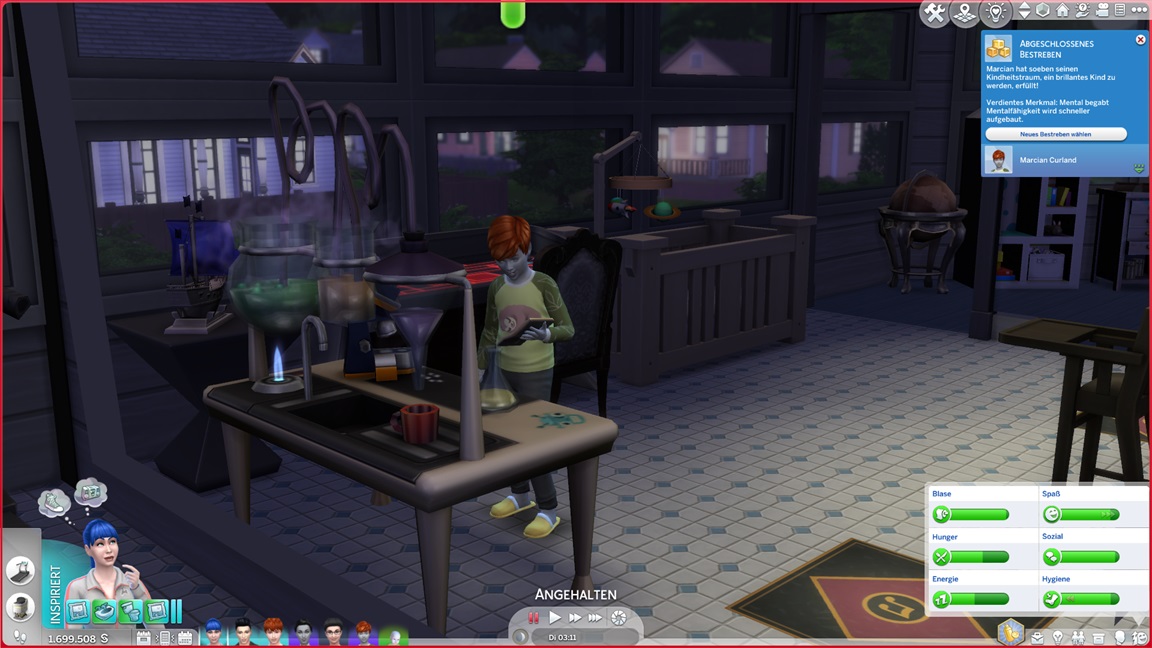 Die Entscheidung des nächsten Bestrebens ließ ich offen. Etwas Soziales würde sich anbieten, doch das Micromanagement von drei Sozialcharakteren erweist sich aktuell bereits als zuviel.