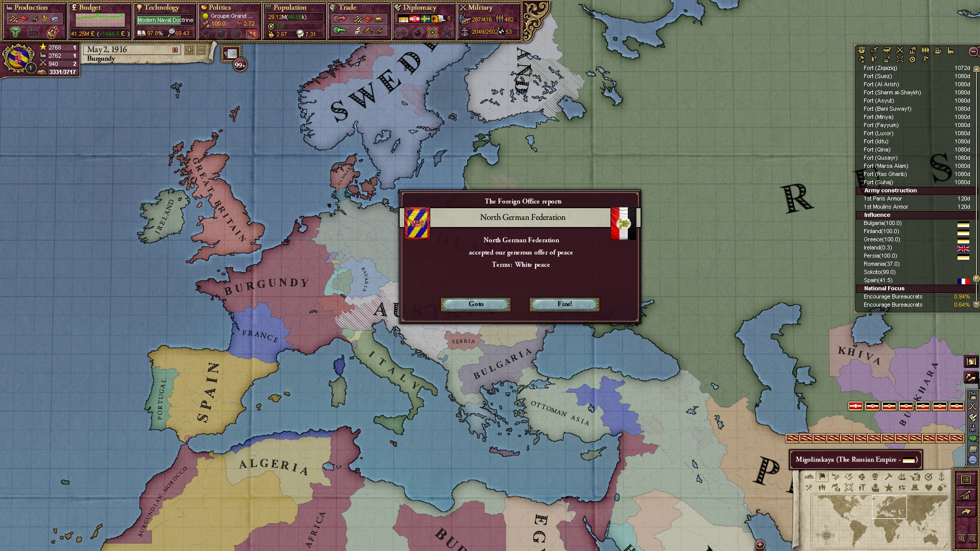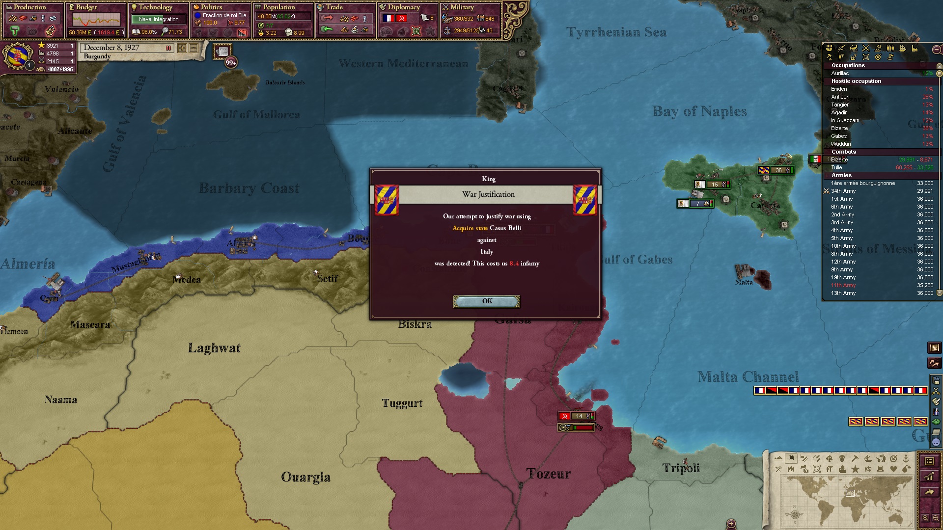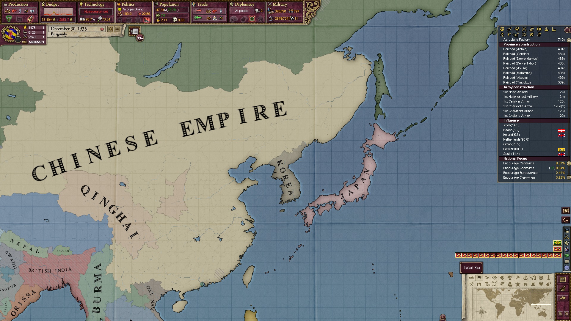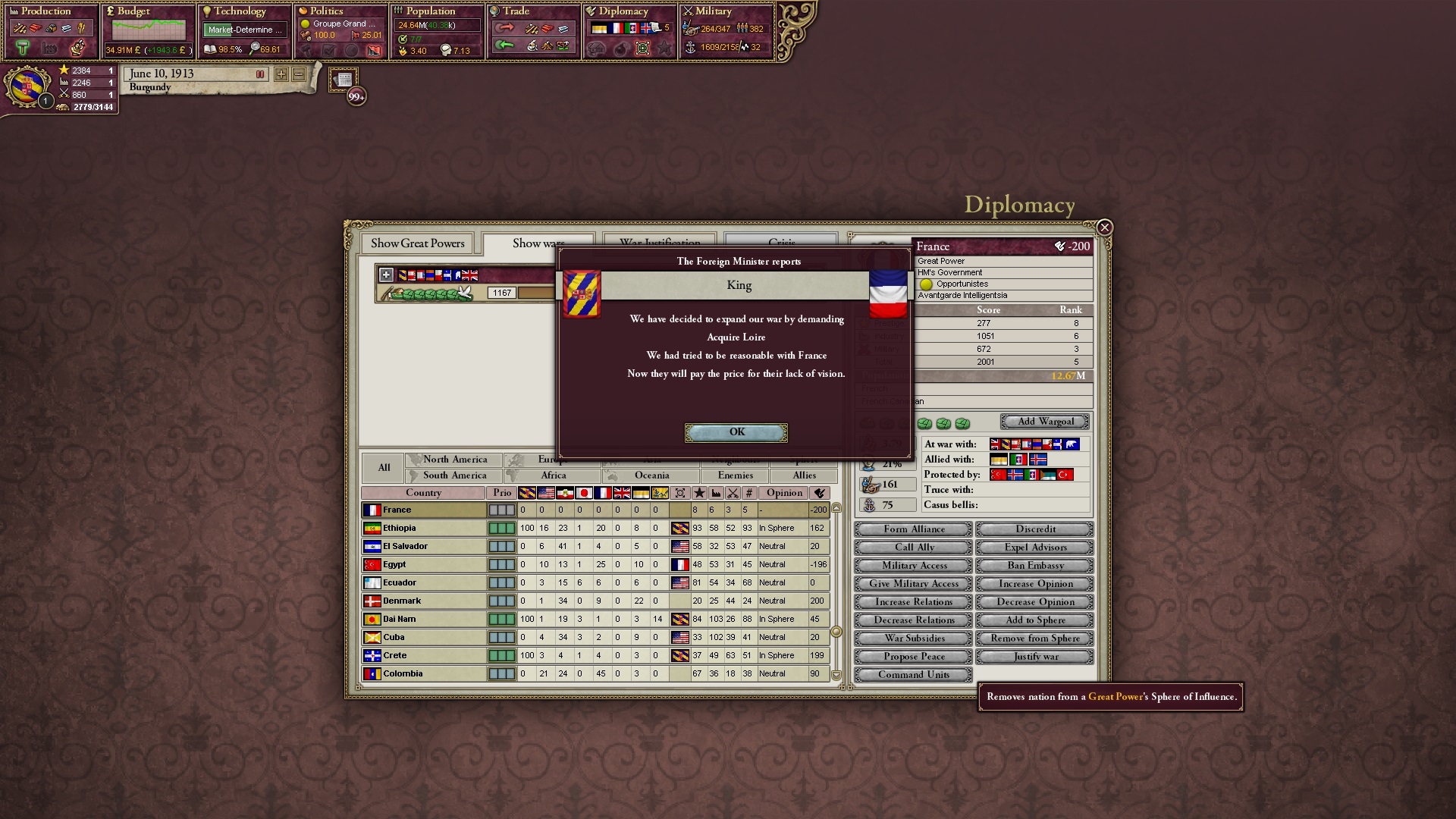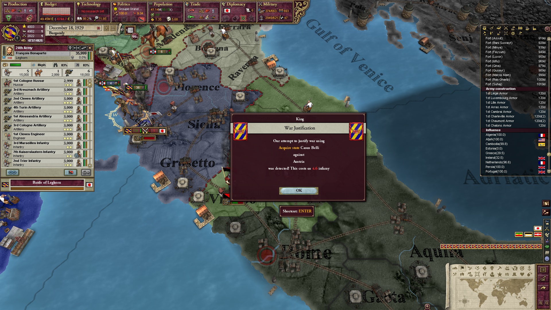 Ich beginne derweil damit, einen Kriegsgrund gegen Äthiopien zu fingieren, da diese immer noch als unzivilisiert zählen, und nehme zwei Drittel der maximal möglichen Infamie hin.