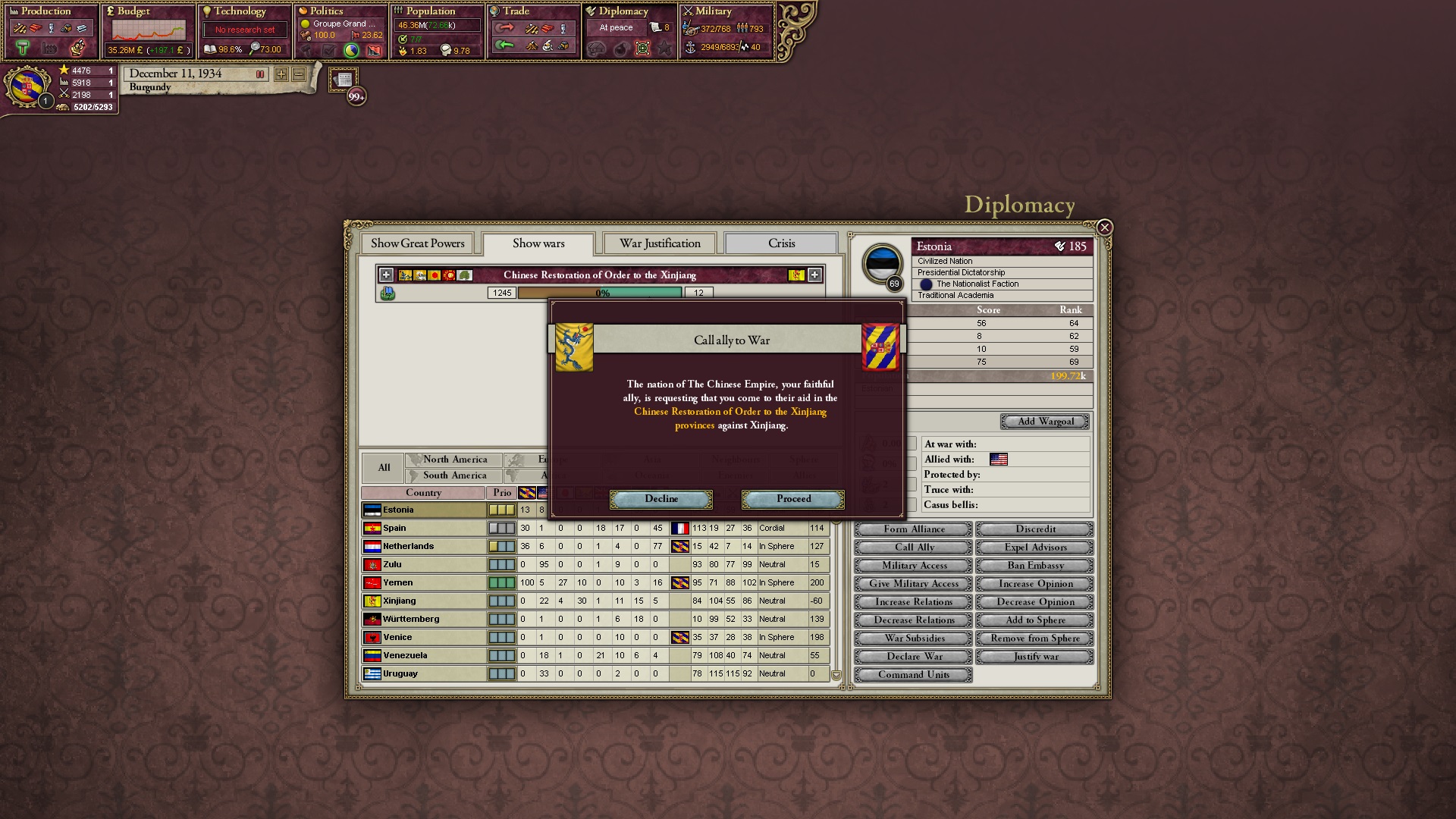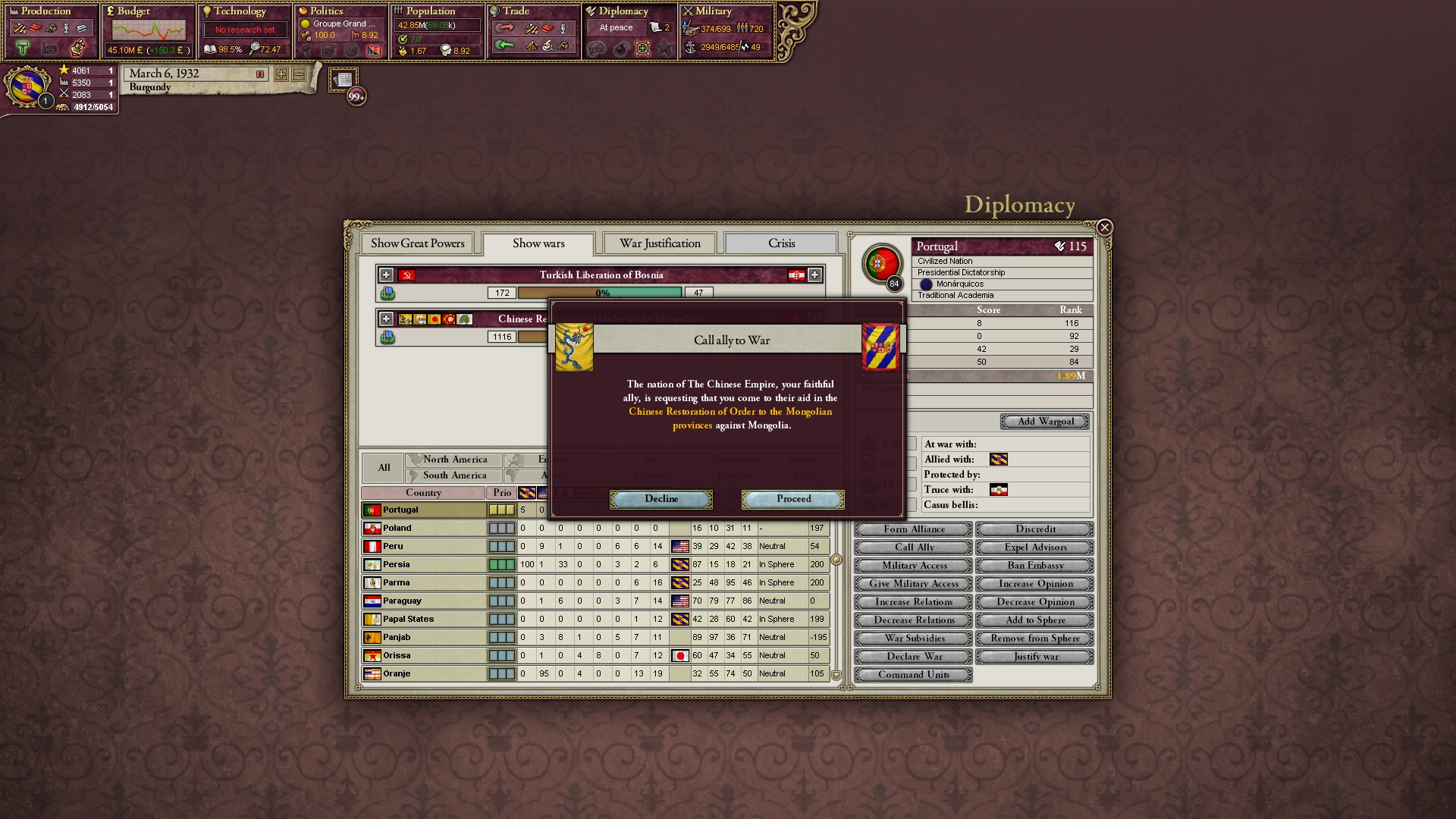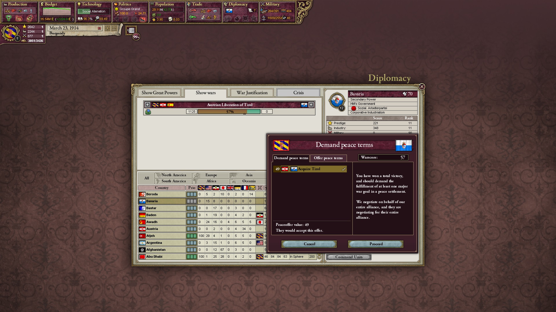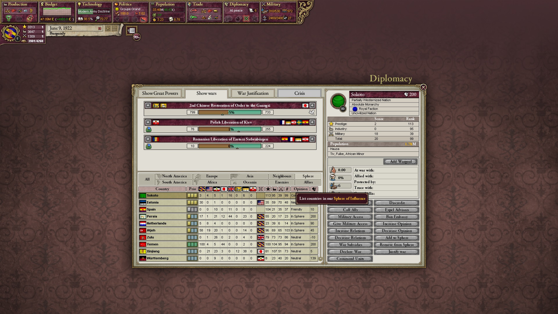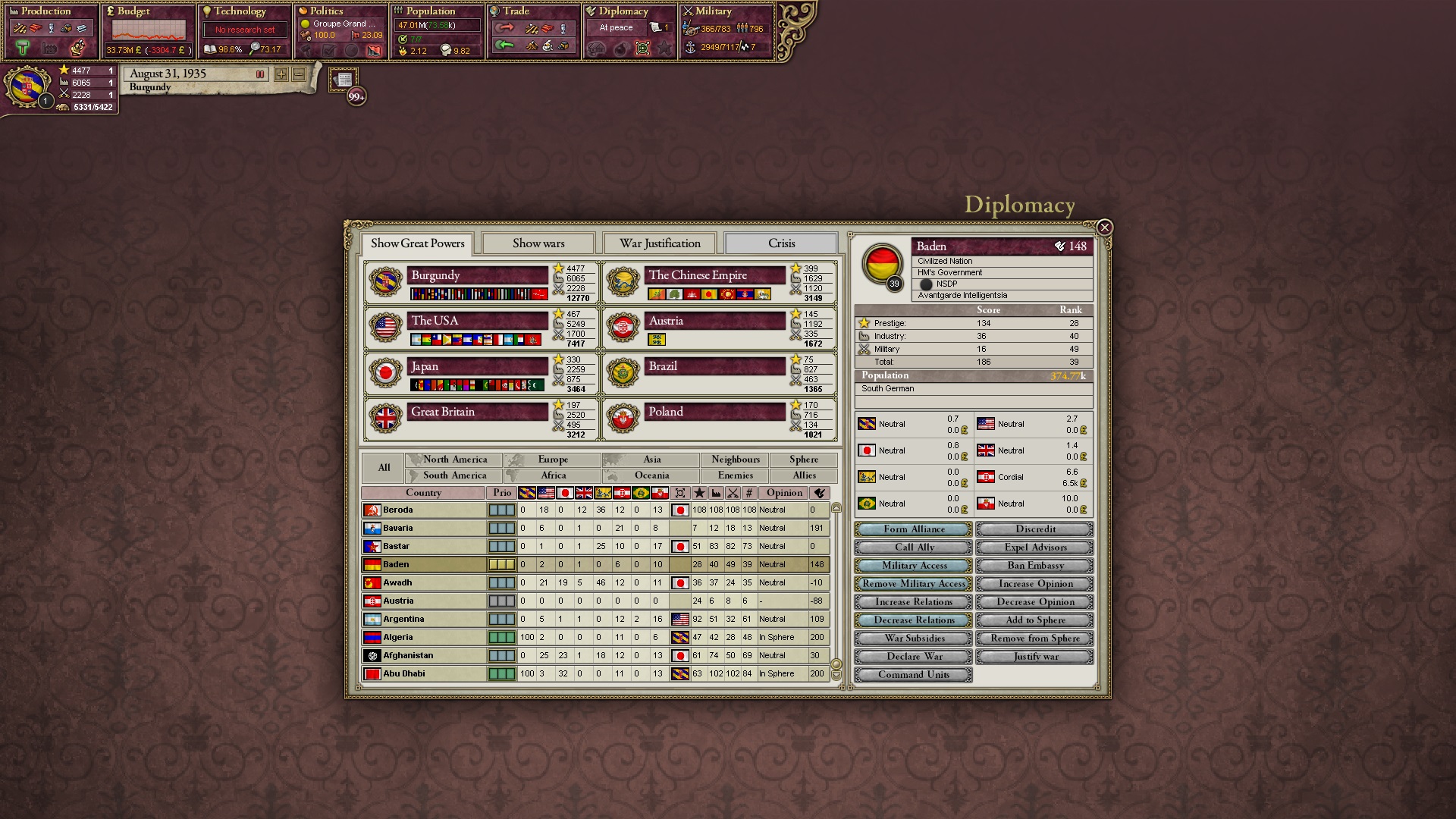 Ich beginne derweil damit, einen Kriegsgrund gegen Äthiopien zu fingieren, da diese immer noch als unzivilisiert zählen, und nehme zwei Drittel der maximal möglichen Infamie hin.