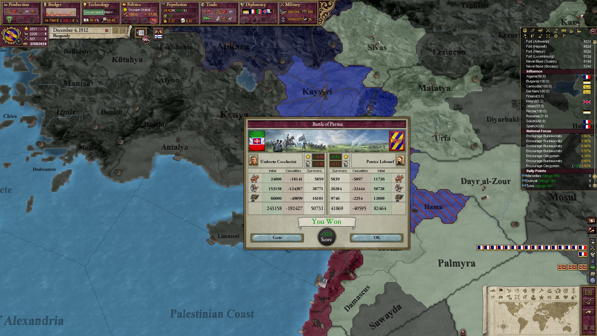 In Europa setze ich mich zusammen mit meinen Verbündeten durch, im Nahen Osten erlebe ich derweil den Schock der Vernichtung zweier meiner Armeen.