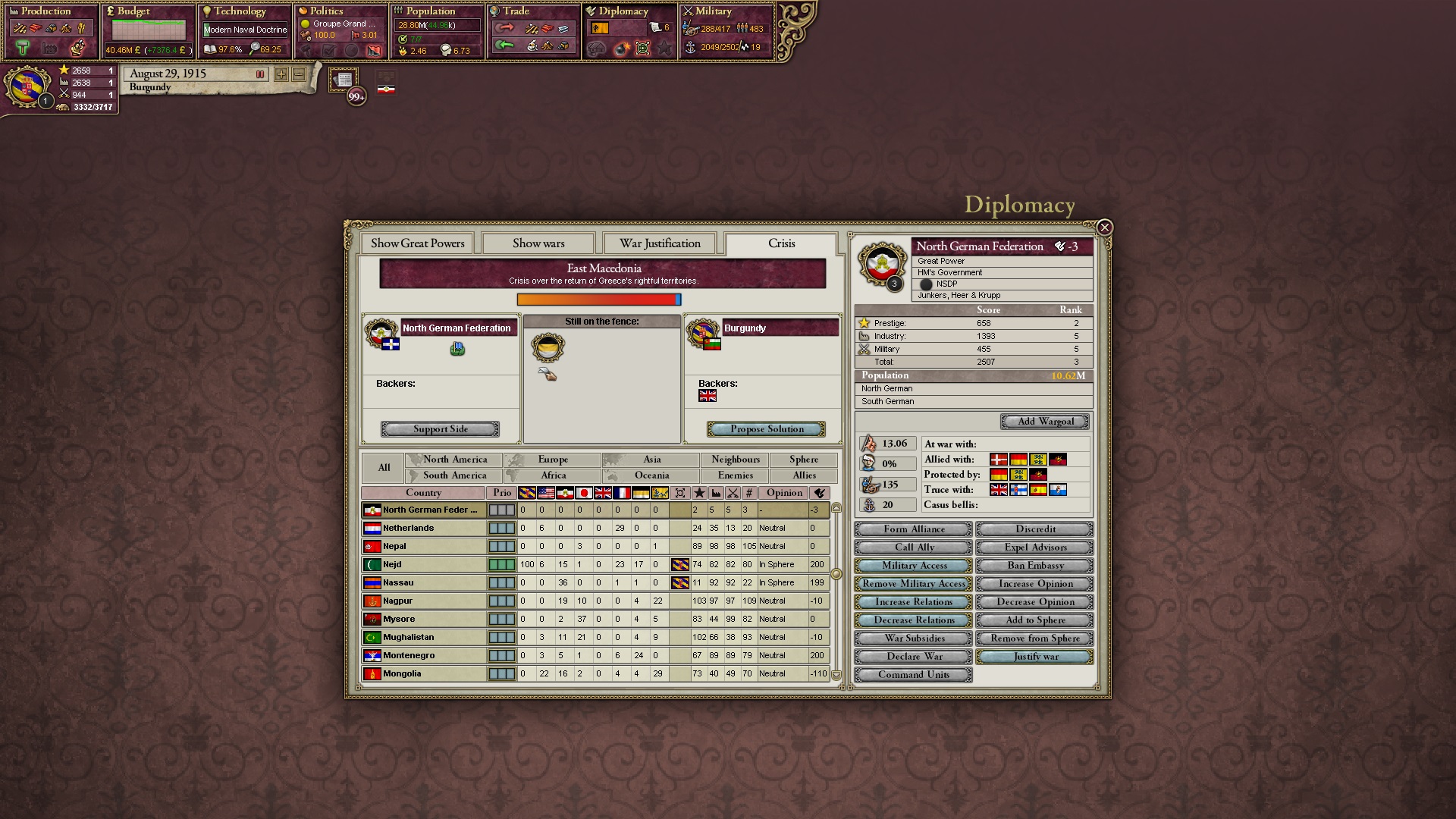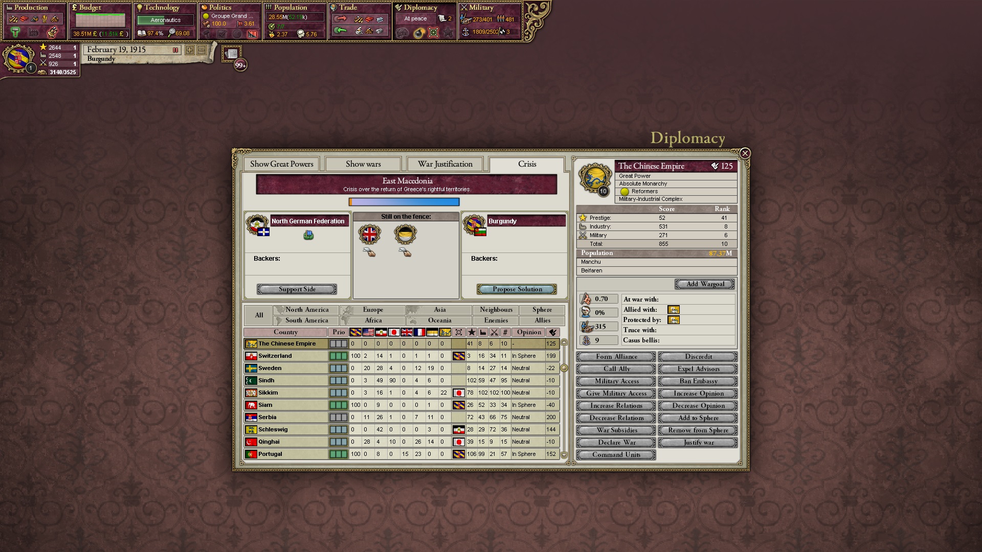Es beginnt eine Krise um Makedonien. Natürlich übernehme ich die Verteidigerposition, wenn auch gegen meinen anderen Verbündeten.