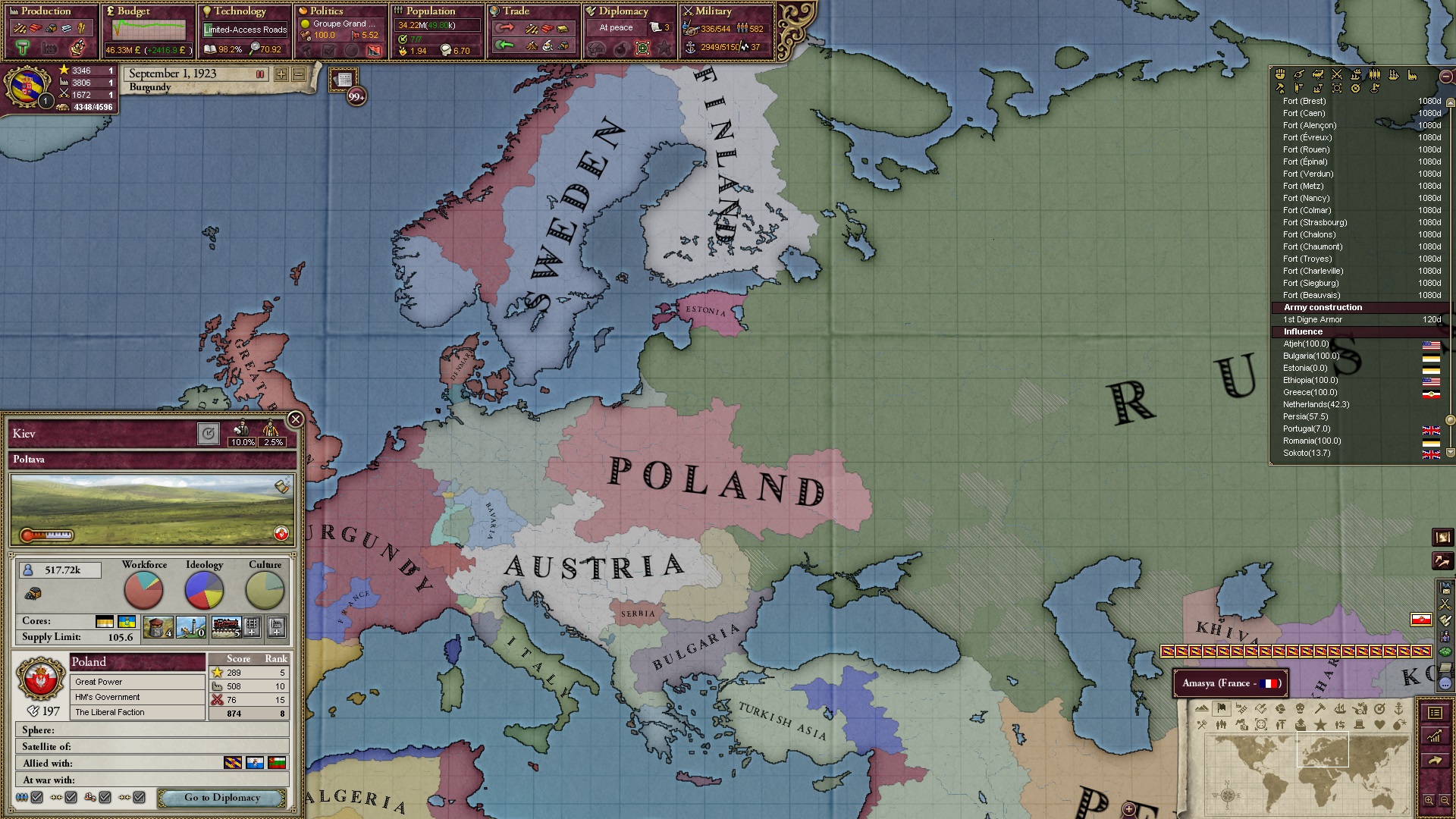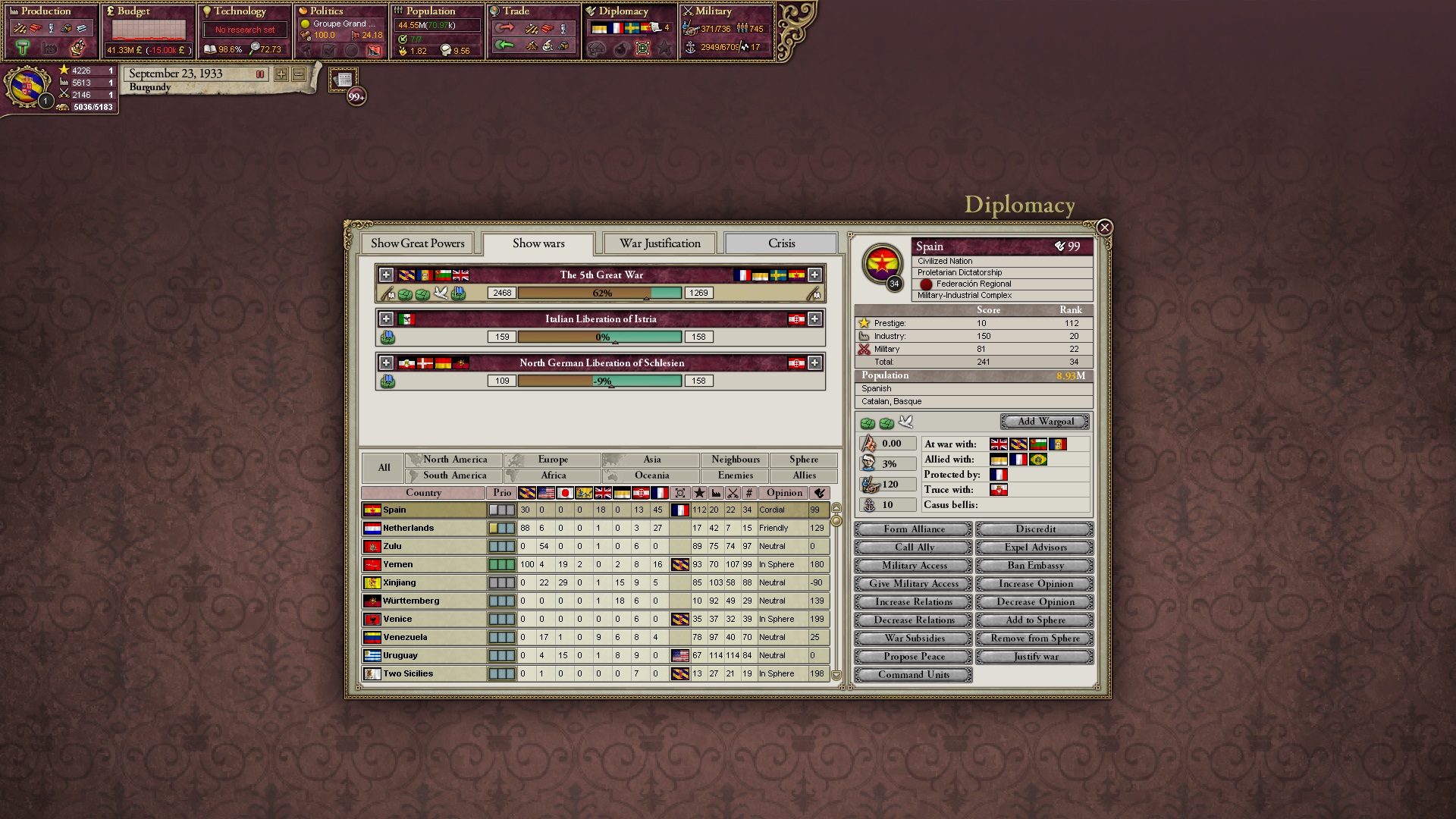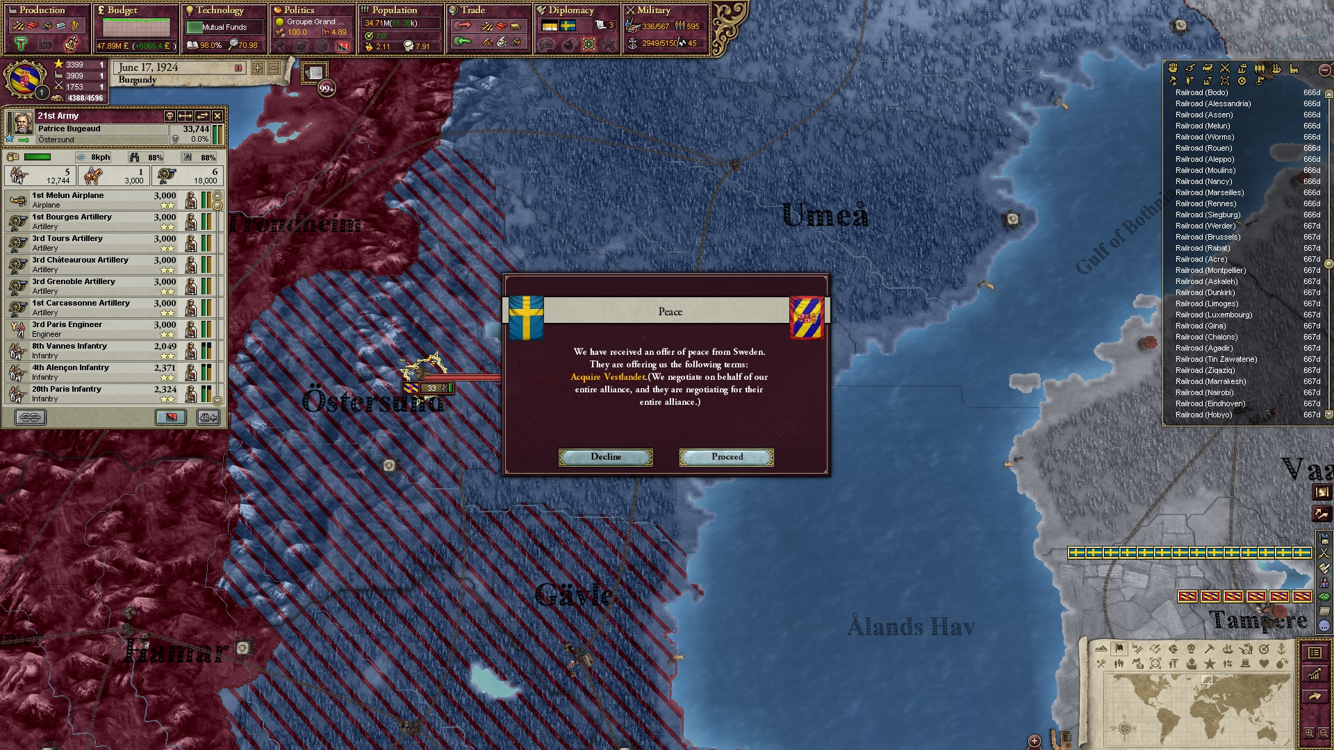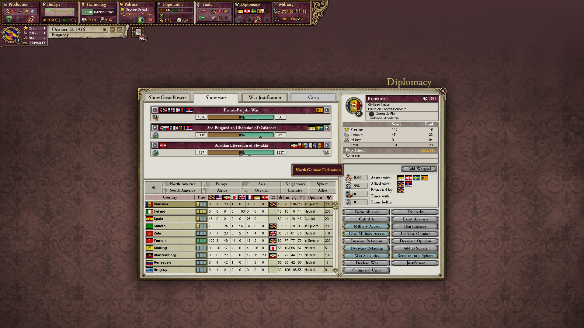 Der folgt... und auch viele meiner Verbündeten mit Russlandgrenze lassen sich weiß herauskaufen. Ich gehe nun klassisch vor, indem ich russische Gebiete besetze und deren Armeen zerschlage.