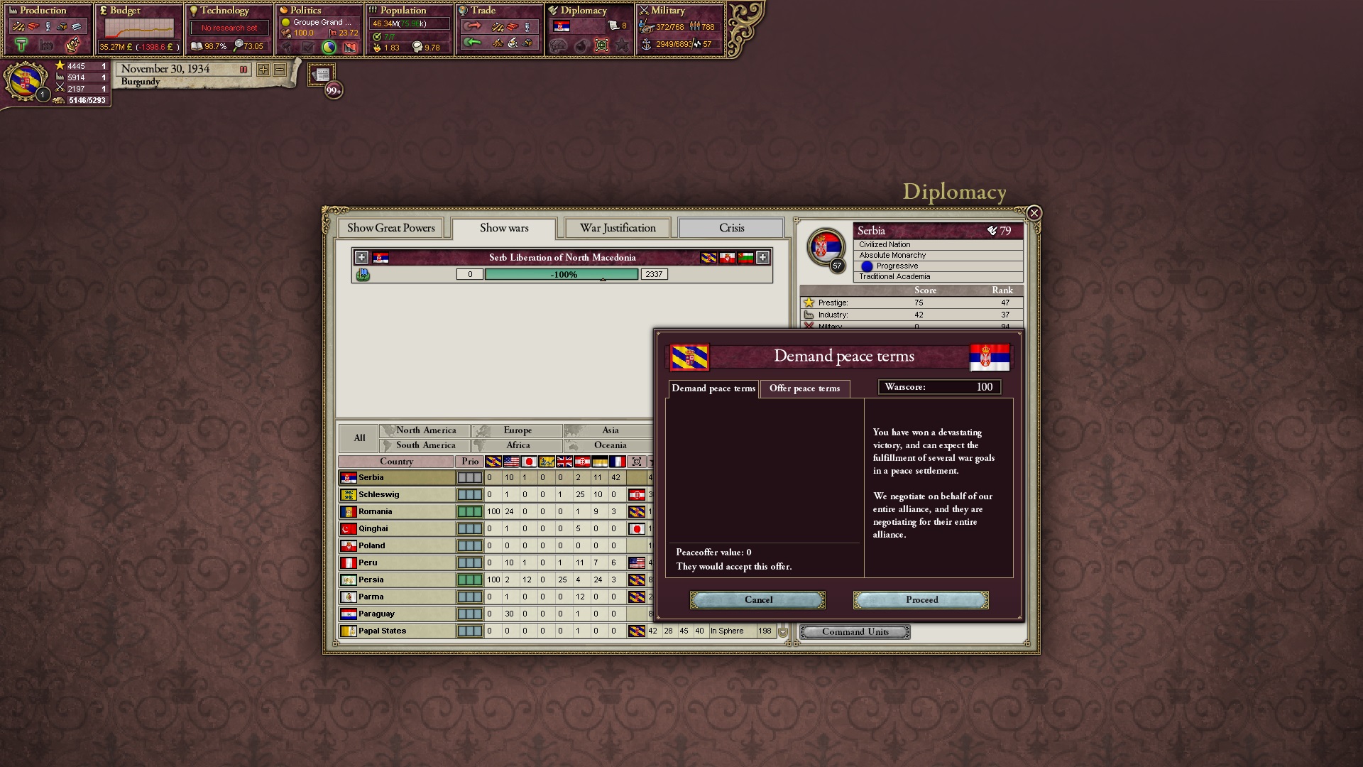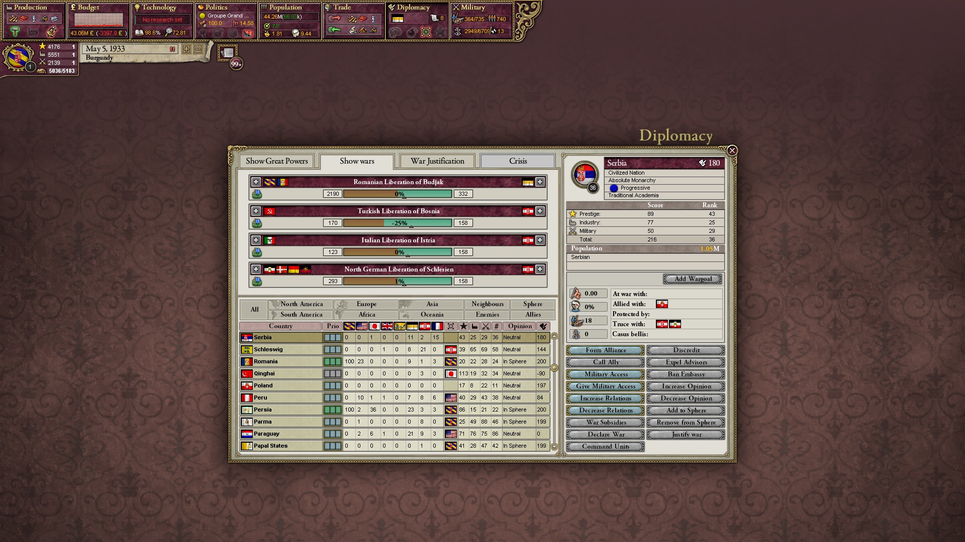 Der Serbien-Krieg verläuft unspannend. Ich lasse Bulgarien sogar etwas Zeit, einen Anspruch zu erheben, ehe ich ihn abschließe.