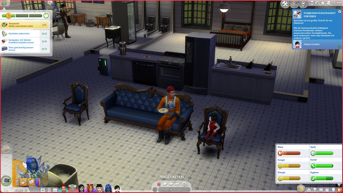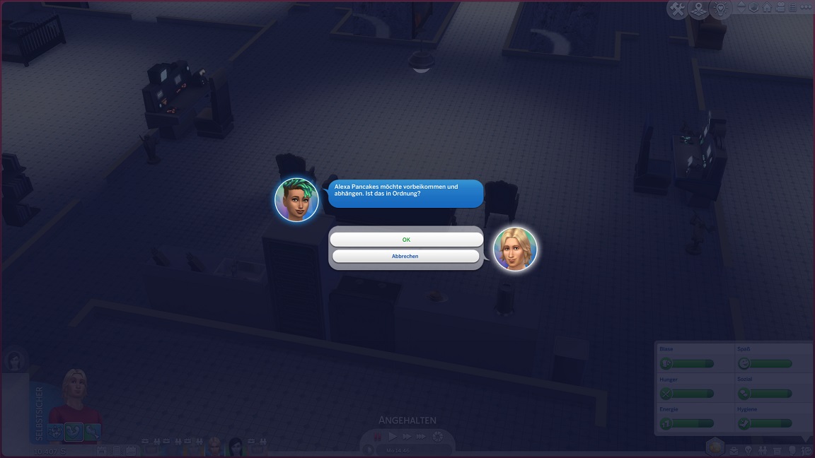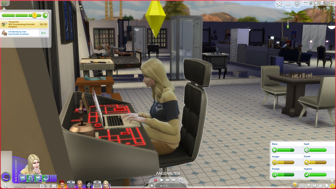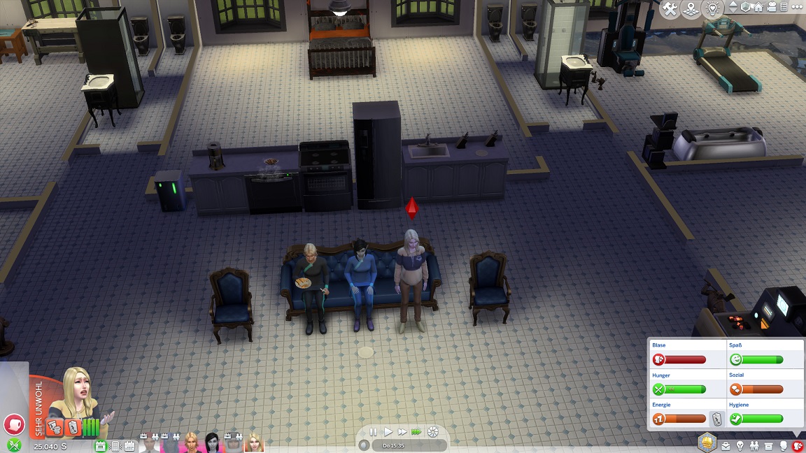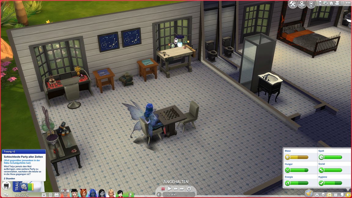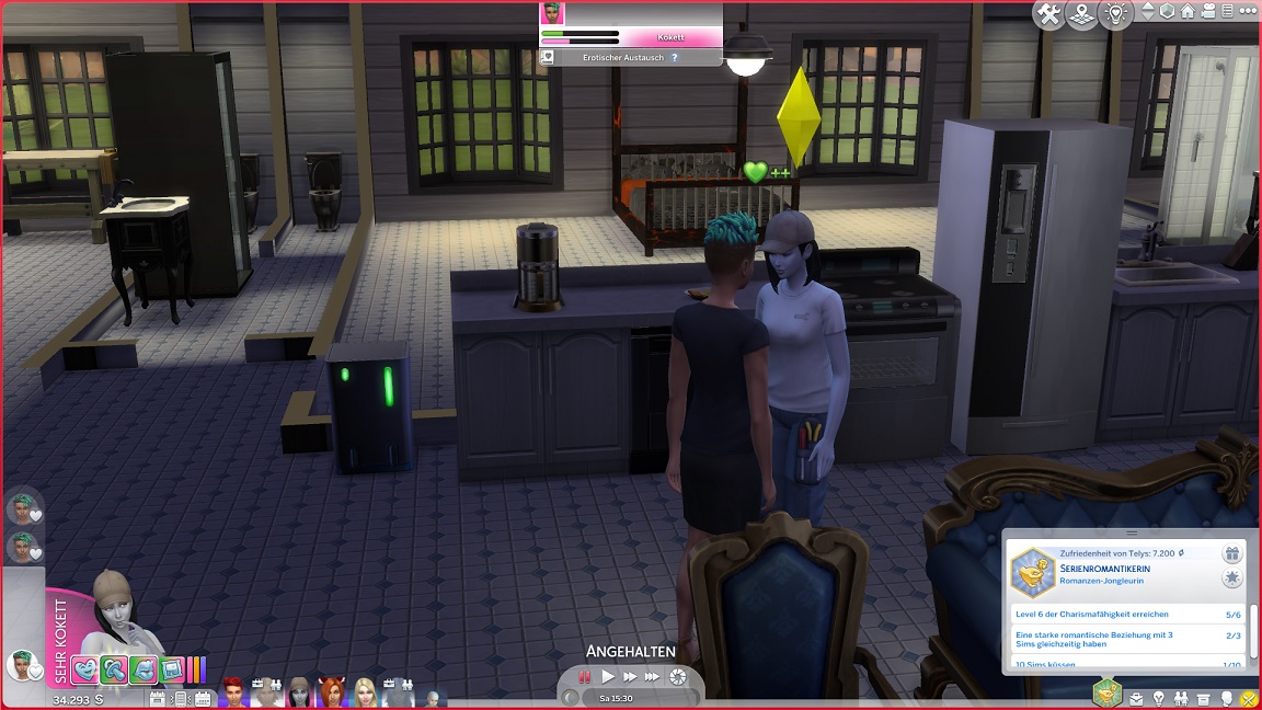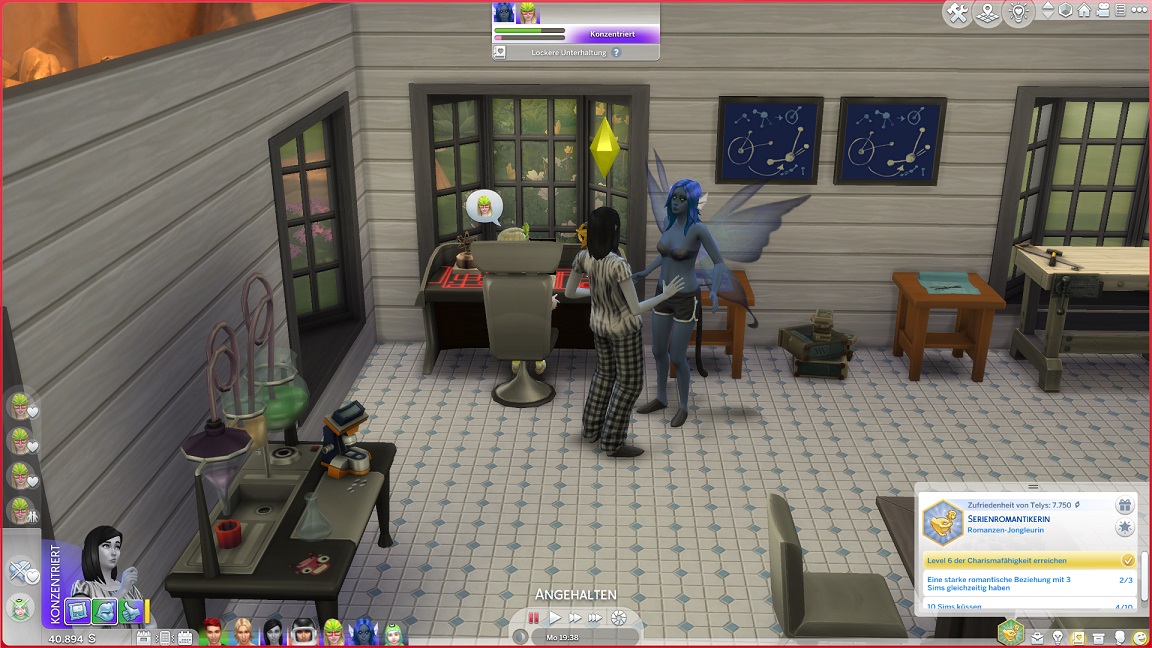 Montags, beim Frühstück, als die Reste des Mitternachtssnacks nicht mehr für alle reichten. Aktuell herrscht eine markante Zweiteilung in der Mannschaft vor: die einen arbeiten hart daran, für ihre Bestrebungen Dinge herzustellen und Fähigkeiten zu leveln (Lisa, Lurlei und Jack), während die andere Hälfte vor allem vor sozialen Herausforderungen steht (Andromeda, Telys und Martin), bis bisweilen Auszeiten erlauben.