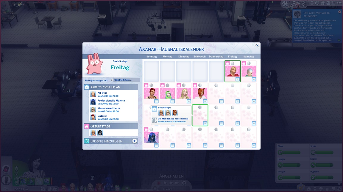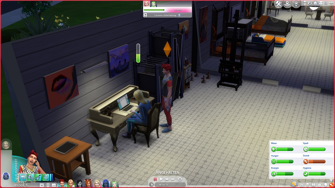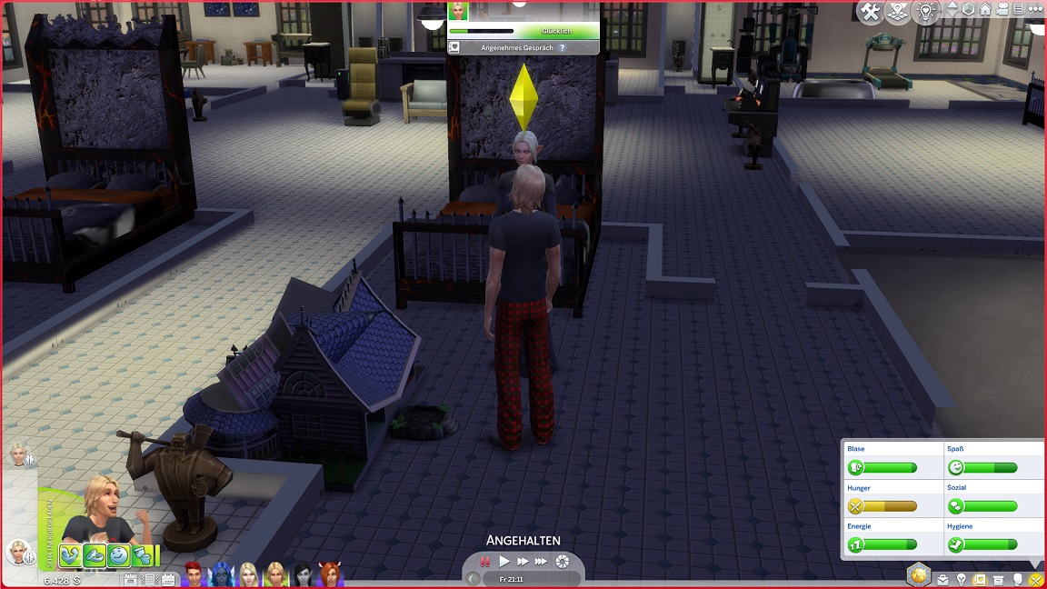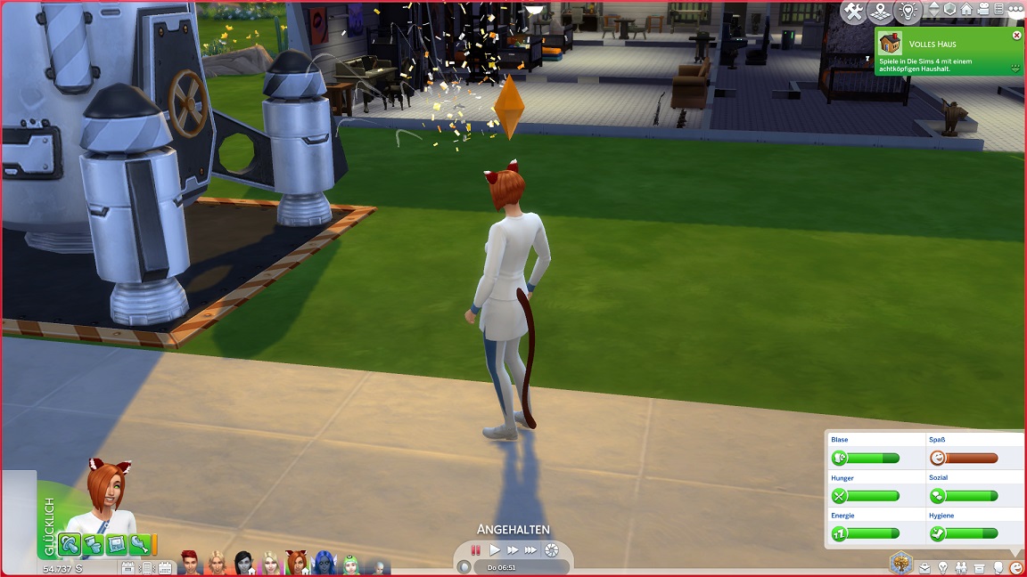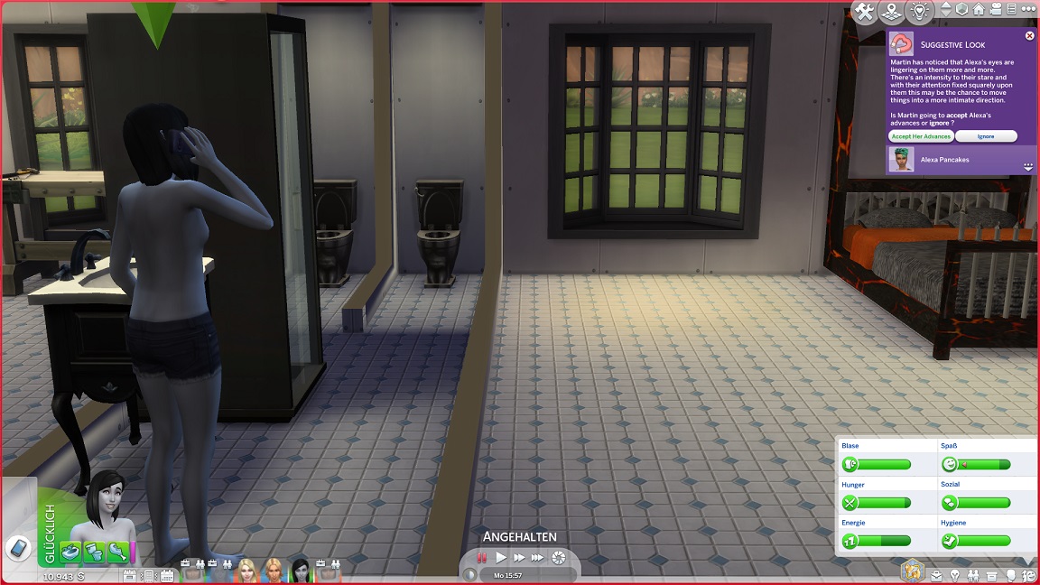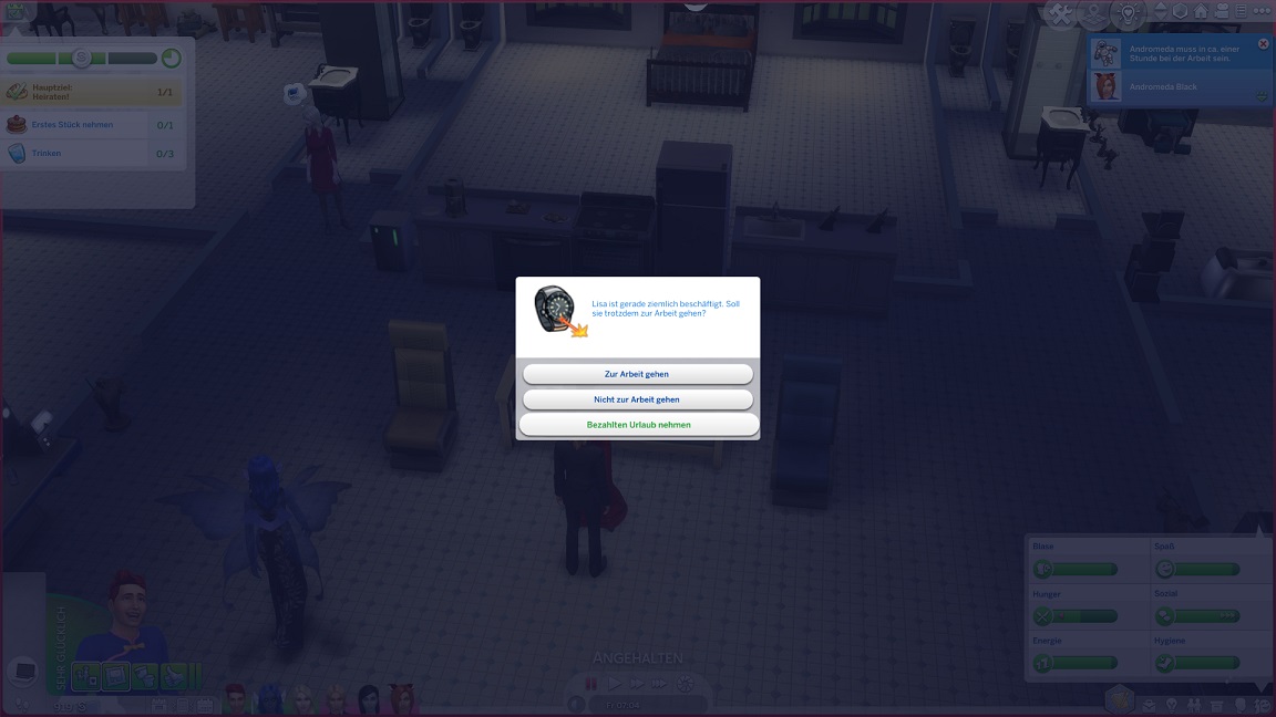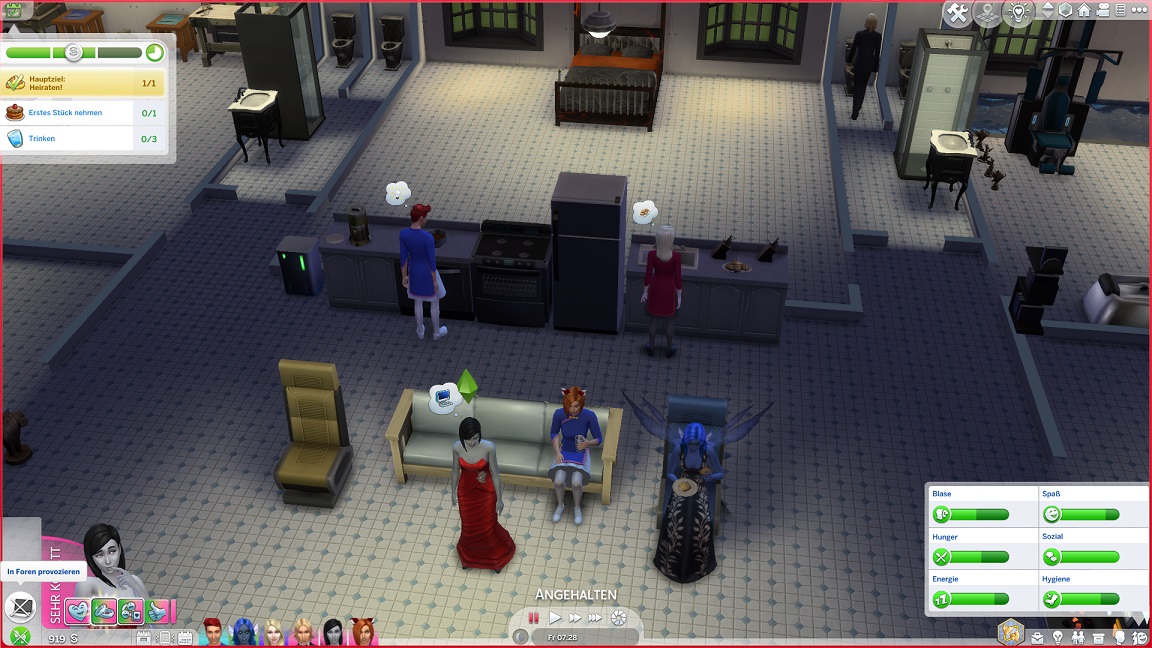 Montags, beim Frühstück, als die Reste des Mitternachtssnacks nicht mehr für alle reichten. Aktuell herrscht eine markante Zweiteilung in der Mannschaft vor: die einen arbeiten hart daran, für ihre Bestrebungen Dinge herzustellen und Fähigkeiten zu leveln (Lisa, Lurlei und Jack), während die andere Hälfte vor allem vor sozialen Herausforderungen steht (Andromeda, Telys und Martin), bis bisweilen Auszeiten erlauben.