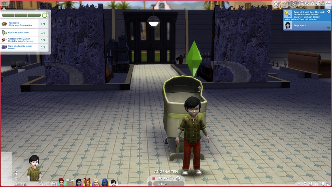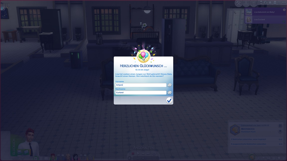 Jacks Torte wird von Telys verziert und angeschnitten. Das Trinken bereitet mir Probleme, weil ich nicht verstehe, wann es zählt.