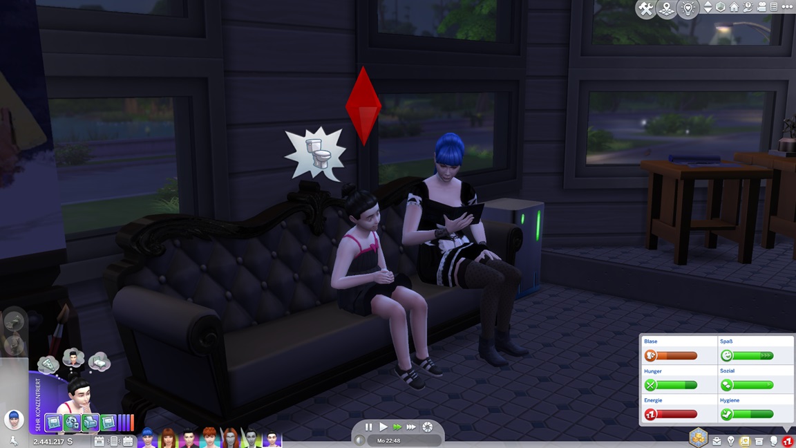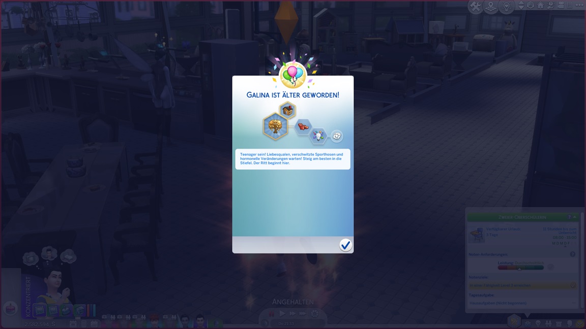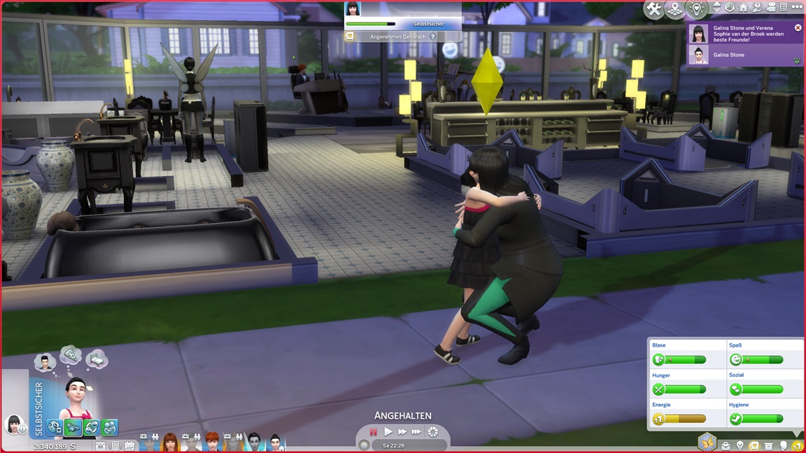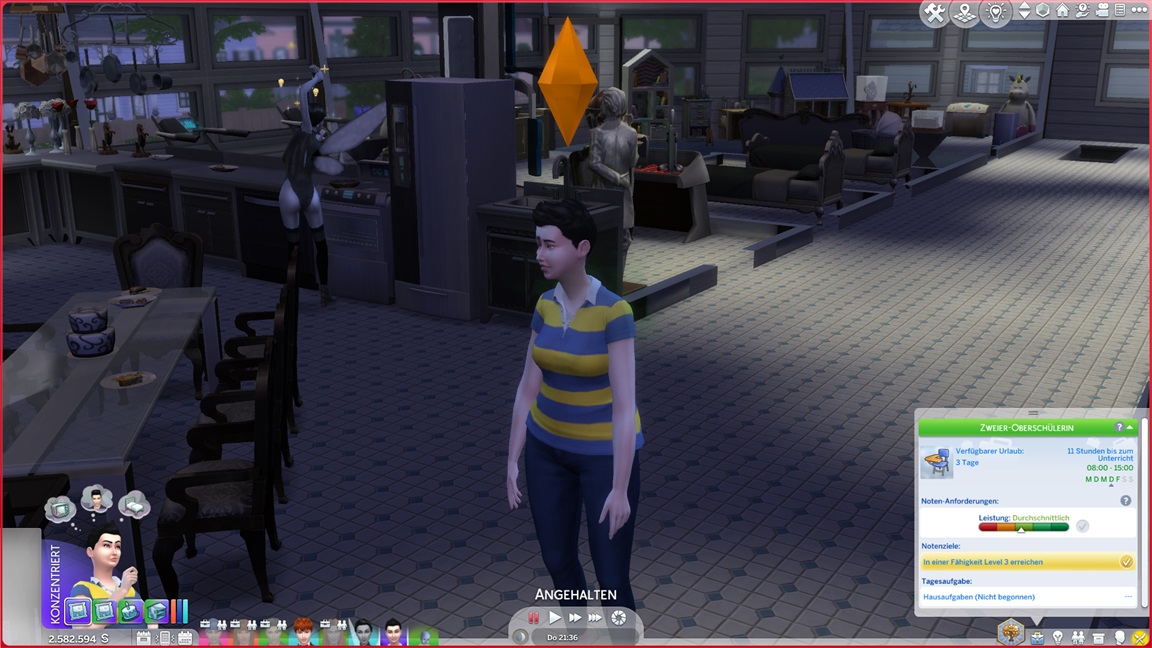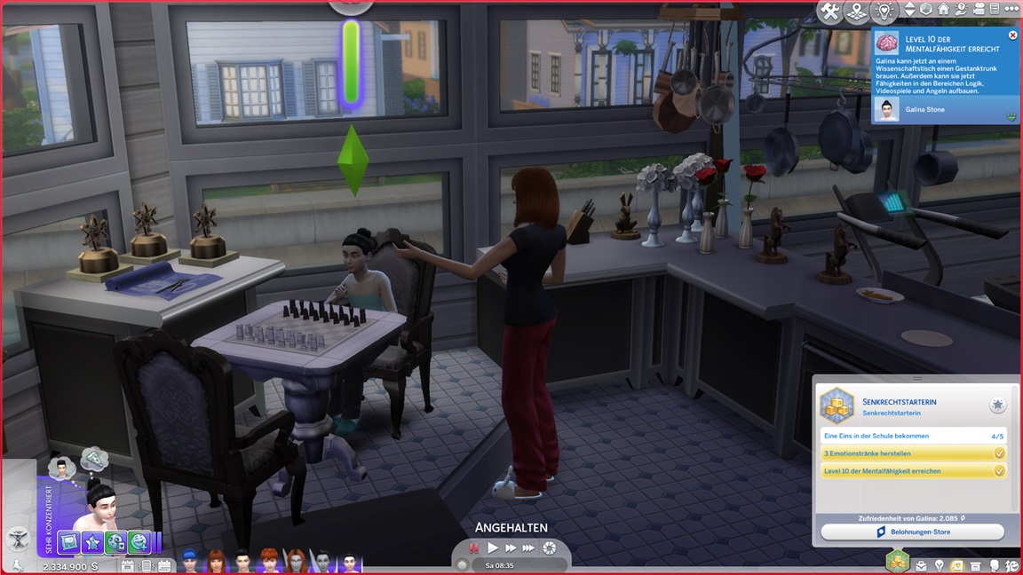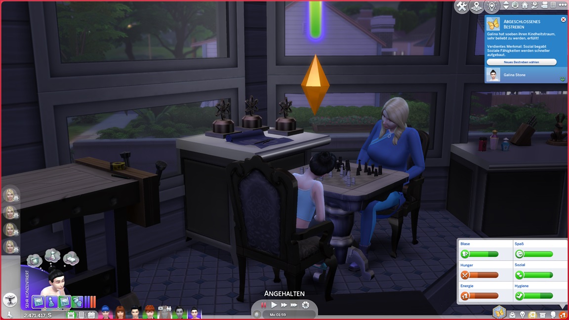 Galina entwickelt (wie die anderen) keine (zweite) Bonus-Eigenschaft und erweist sich als "faul". Außerdem strebt sie nach Motorik. Das Bett wechselt, der Platz bleibt.