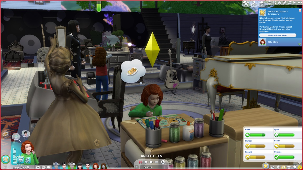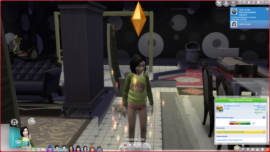 Alltag mit Fähigkeitenpumperei und Unterricht. Da Milena ebenfalls auf die Noten wartet, schiebt sie Kreativität ein.