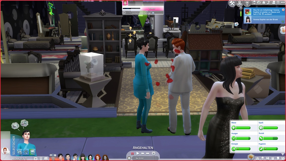 Sie verführt Verena und erhält im Anschluss Konsolenhilfe, um nicht erneut Solo-Abenteuer in geheimen Höhlen zu erleben. Sie lässt die Kommando-Qualifikation Renaissance-Sim folgen, schließt diese direkt ab, und wendet sich Beratungen zu.