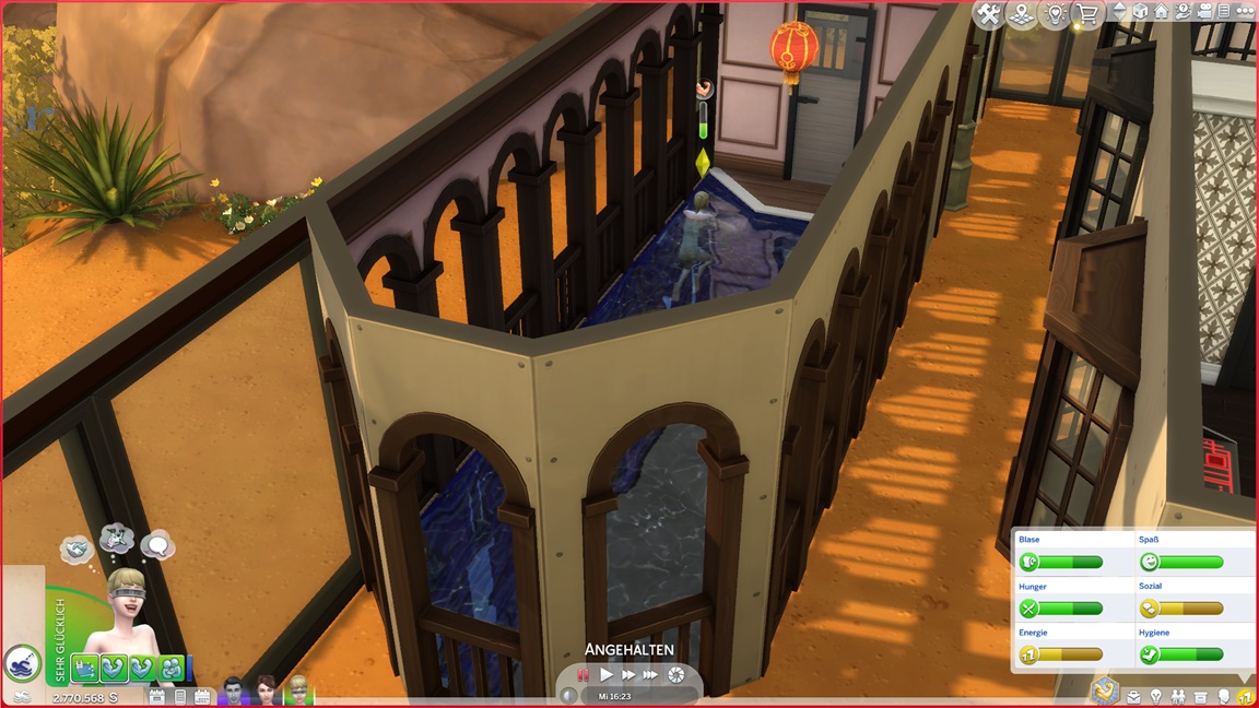 Salome findet, dass sich der Platz nutzen lassen kann, und bittet den Computer, das Schwimmbad zu verlängern.