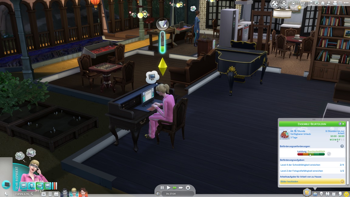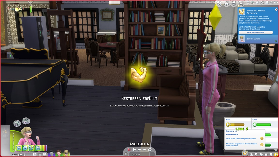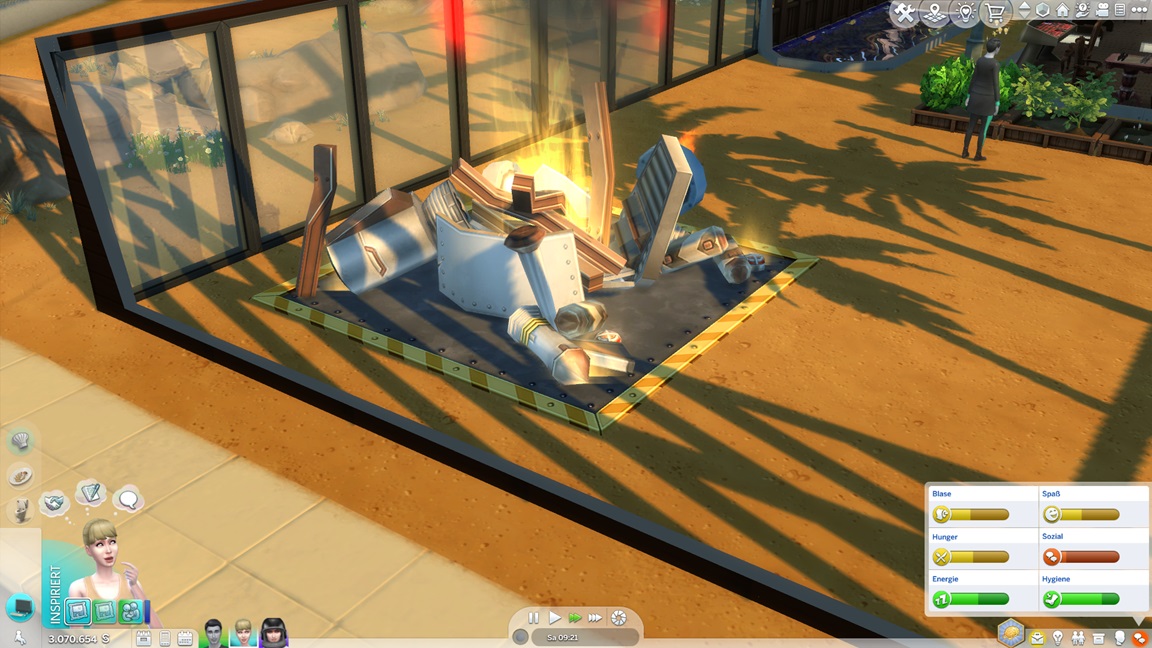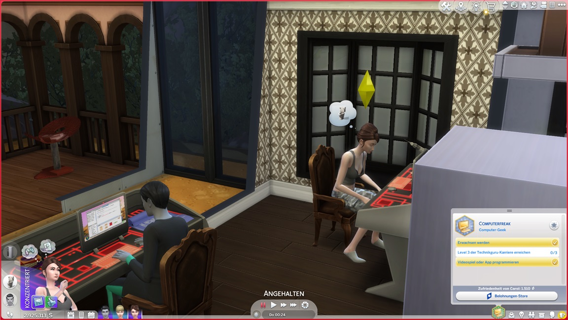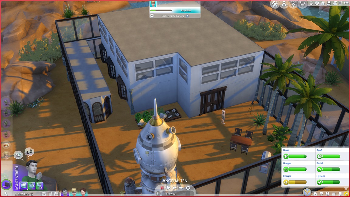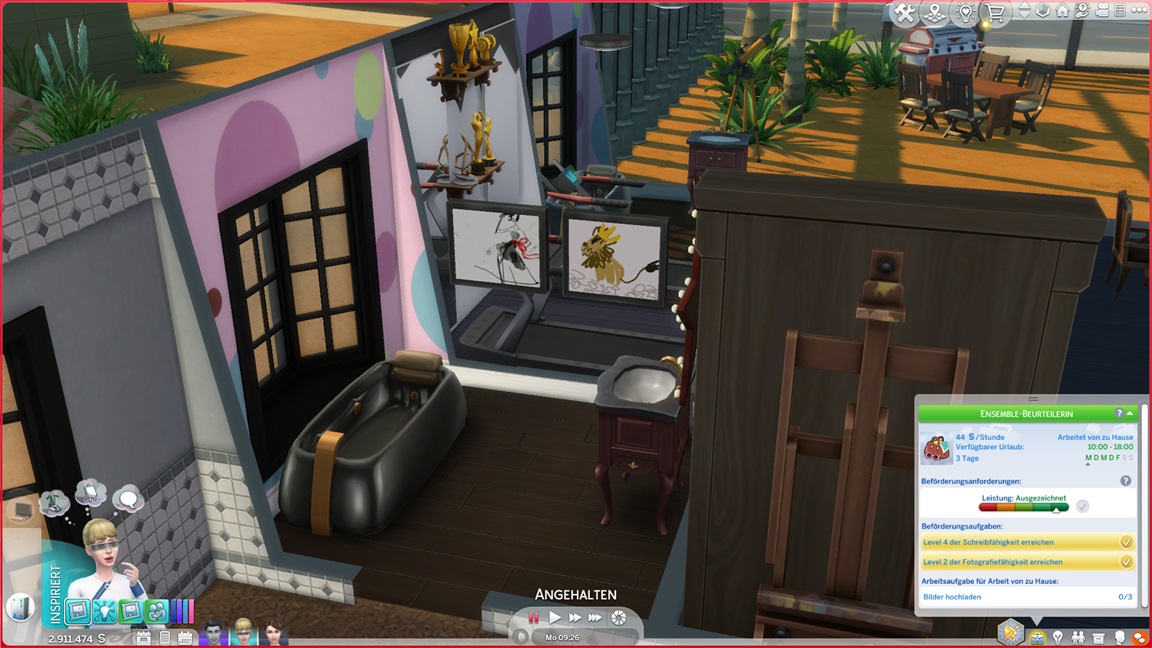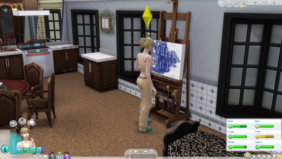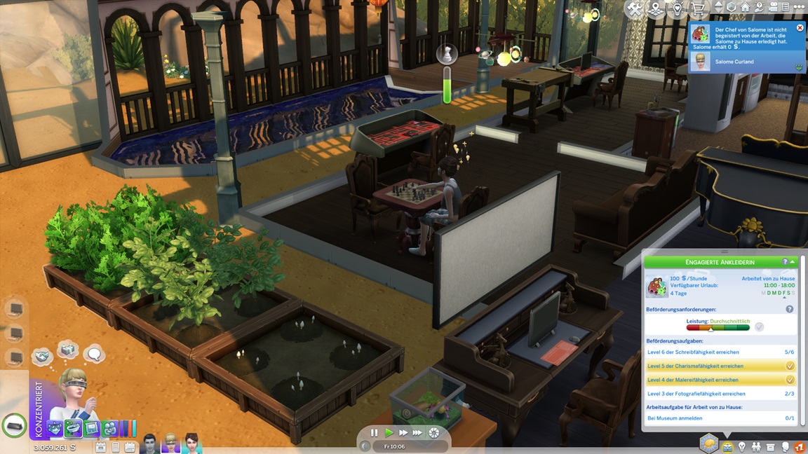 Salome stellt fest, dass sie Malen mag, und bittet den Computer um eine Erweiterung des Kunstraums, damit sie sich einen passenden Arbeitsplatz einrichten kann. Mit Spielbeginn treten nun auch wieder die Verfügbarkeitsbeschränkungen inkraft, was sich deutlich spüren lässt.