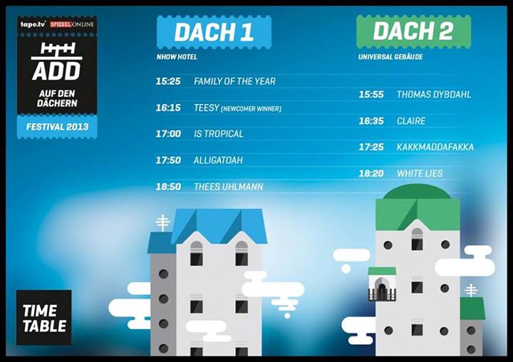 Heute findet das forengenerationenverbindende ADD-Festival von tape.tv und Spiegel statt. Dabei sind u.a. Thees Uhlmann (Brain :wink ), Alligatoah (gubbelz :wink ), Kakkmaddafakka (Jim, Messi? :wink) und Claire (xell :wink ).