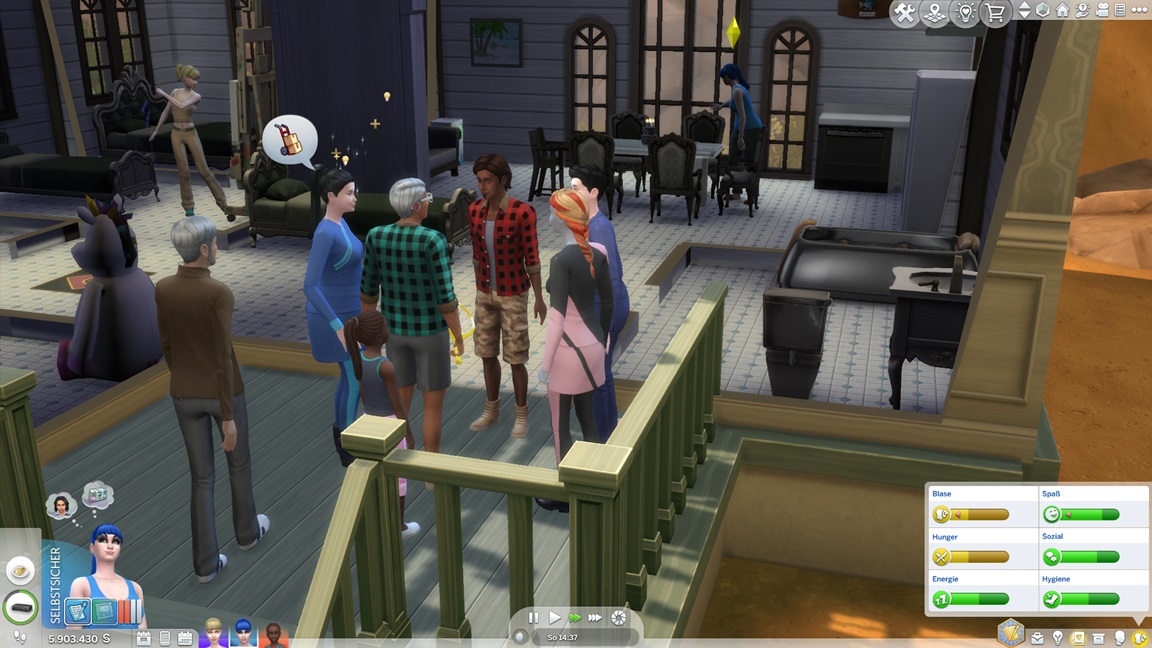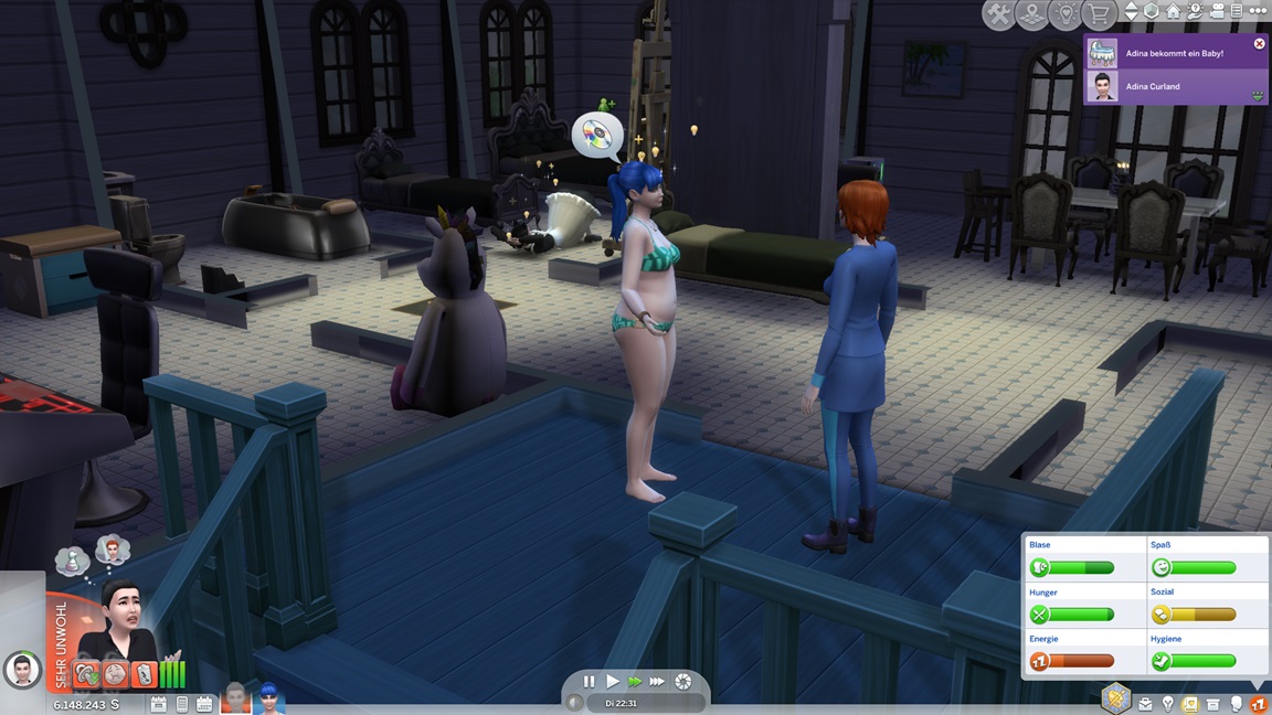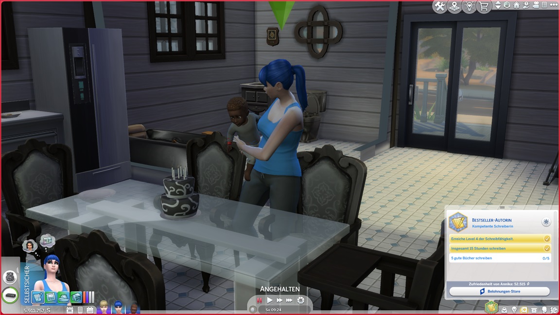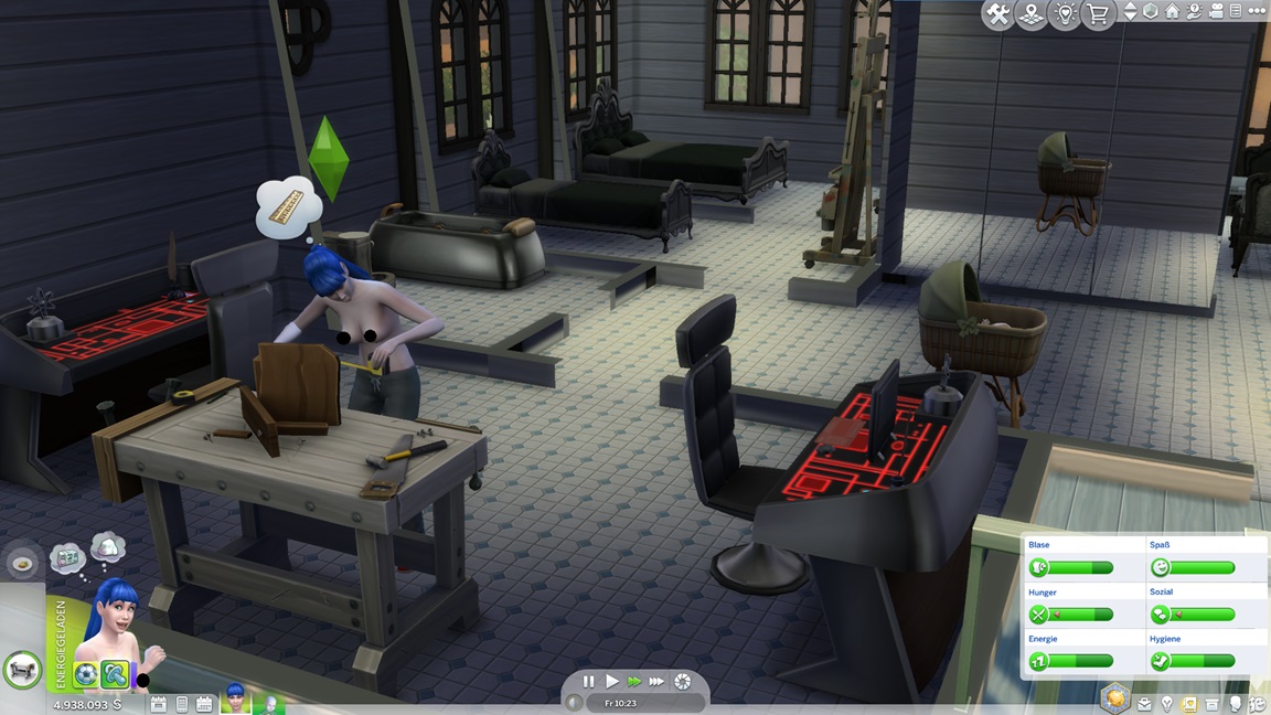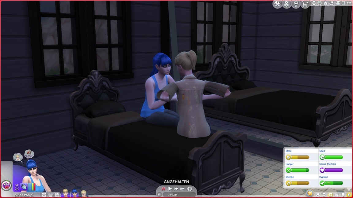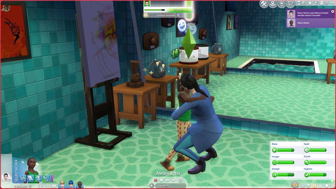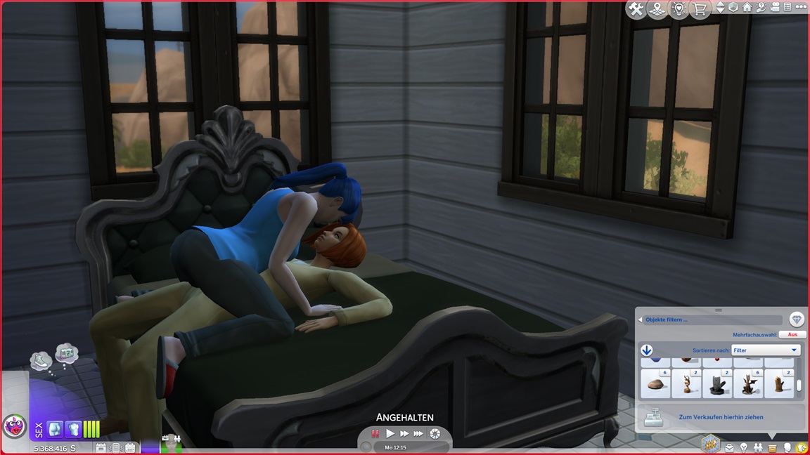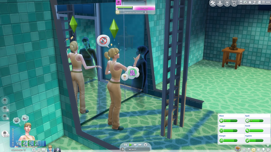 Dies könnte die Grundlage einer weiteren Episode darstellen, da ich dafür sonst ungenutzte Stimmungsräume einrichten würde (für Wut und Trauer). Sie könnte allerdings recht kurz ausfallen. Ich müsste auf einen relativ frischen Charakter zurückgreifen, da ich oft Scham und Stress mittels Belohnungen wegkaufe, und da ich den Sim auch in allerlei negative Stimmungen versetzen müsste, könnte sie recht düster ausfallen.