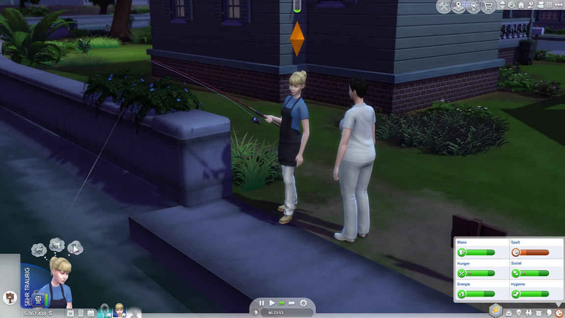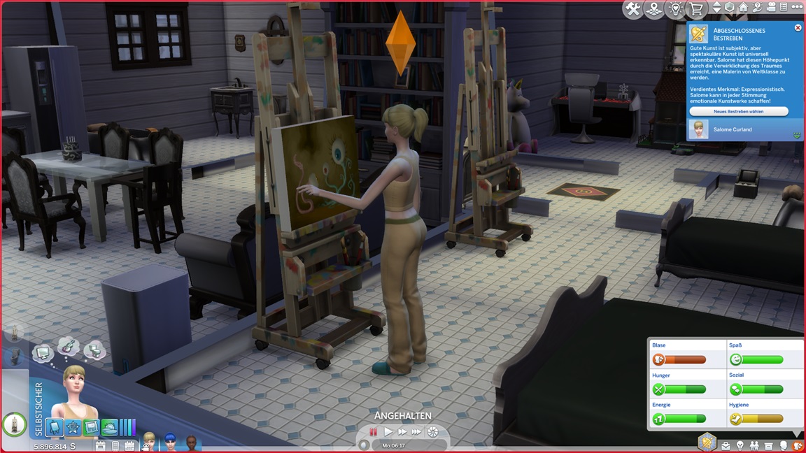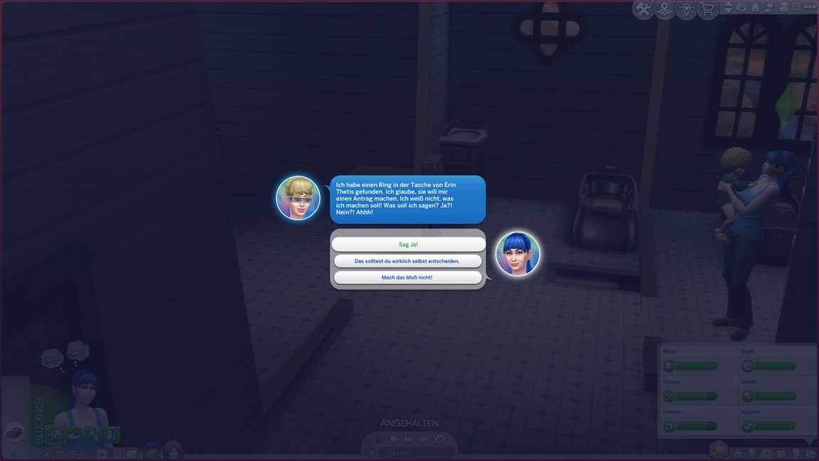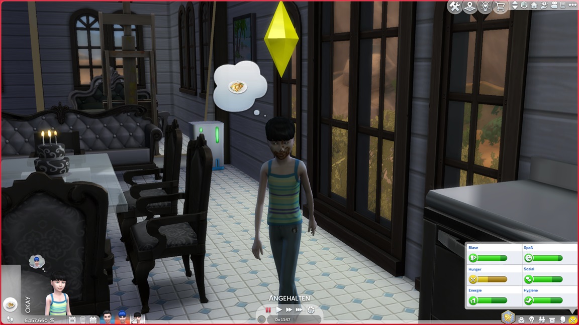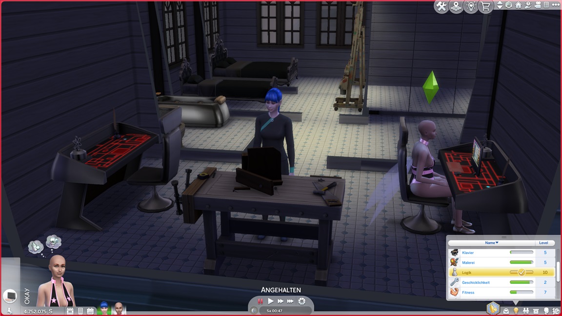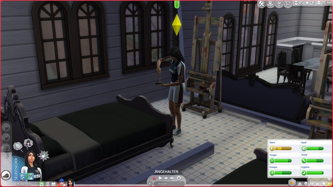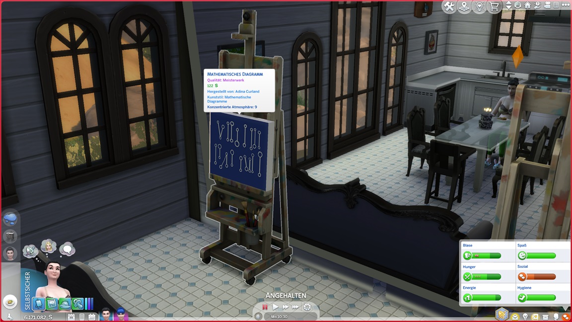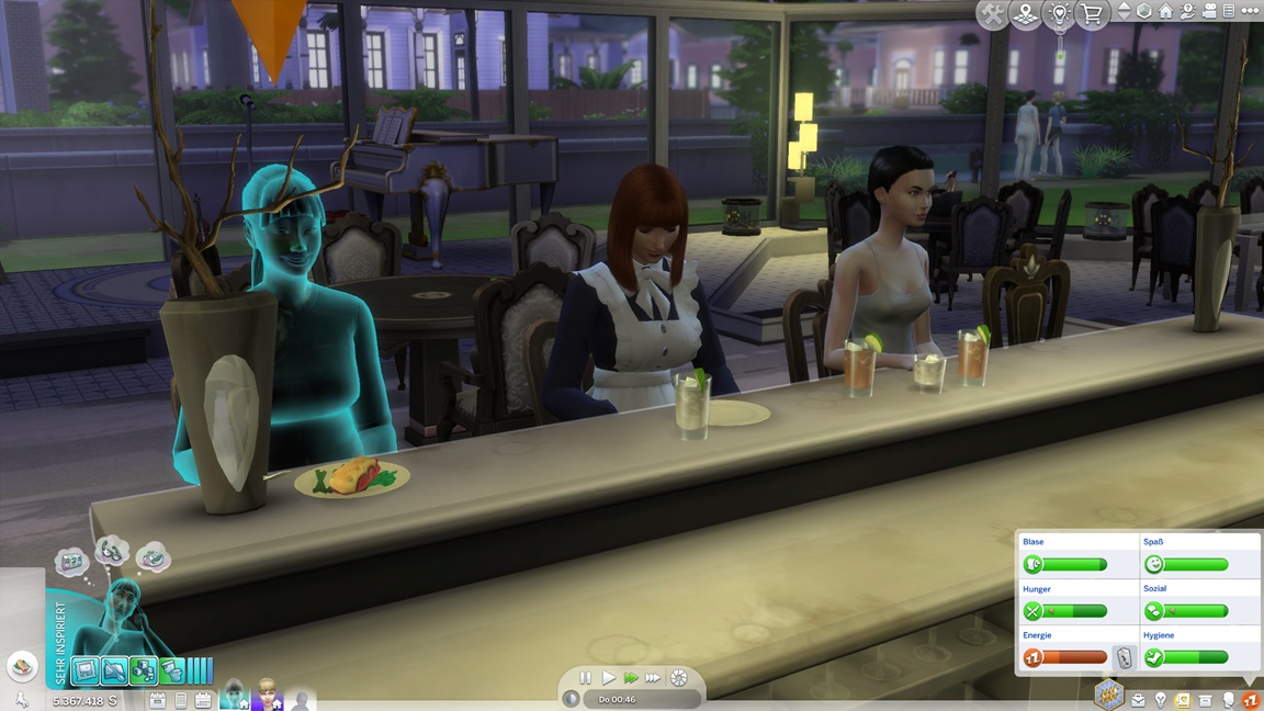 Dies könnte die Grundlage einer weiteren Episode darstellen, da ich dafür sonst ungenutzte Stimmungsräume einrichten würde (für Wut und Trauer). Sie könnte allerdings recht kurz ausfallen. Ich müsste auf einen relativ frischen Charakter zurückgreifen, da ich oft Scham und Stress mittels Belohnungen wegkaufe, und da ich den Sim auch in allerlei negative Stimmungen versetzen müsste, könnte sie recht düster ausfallen.