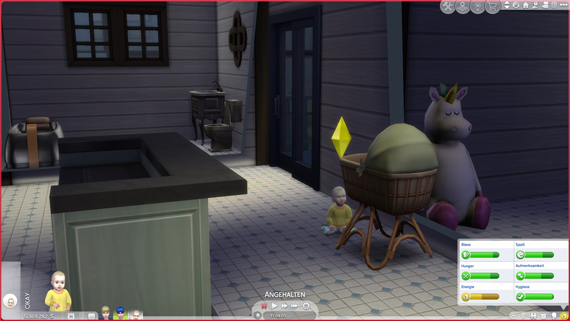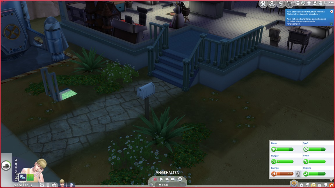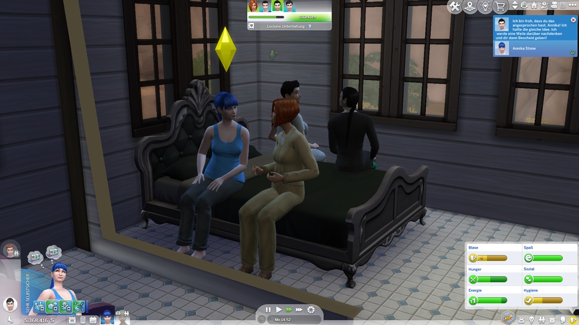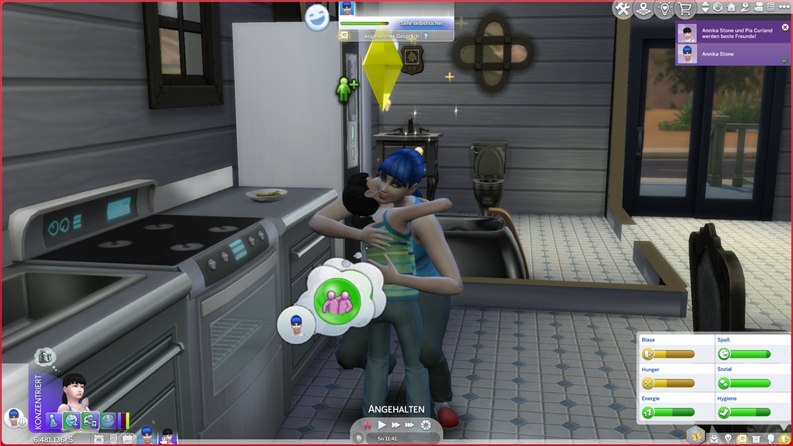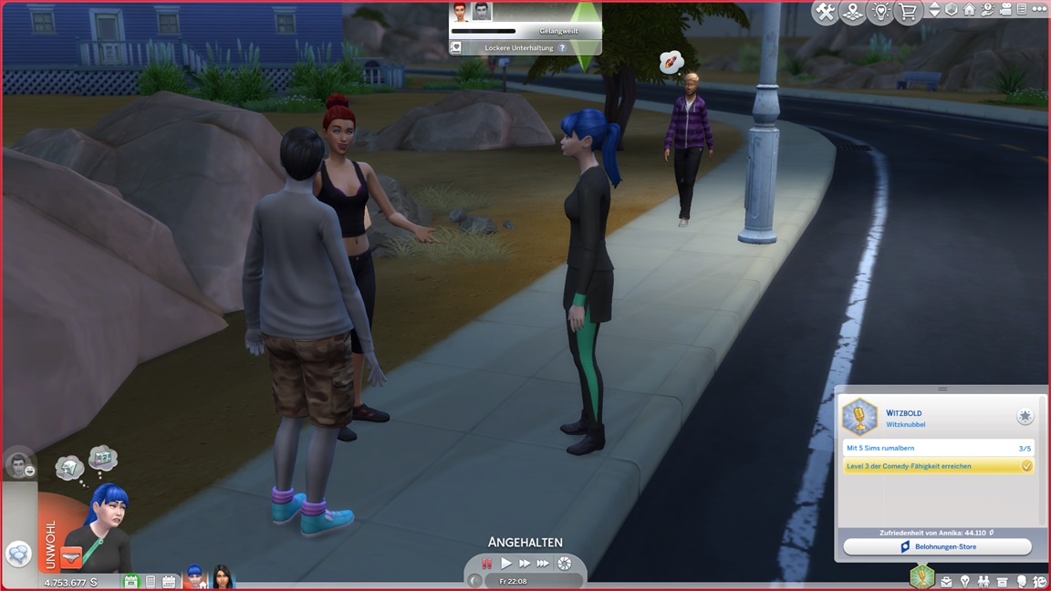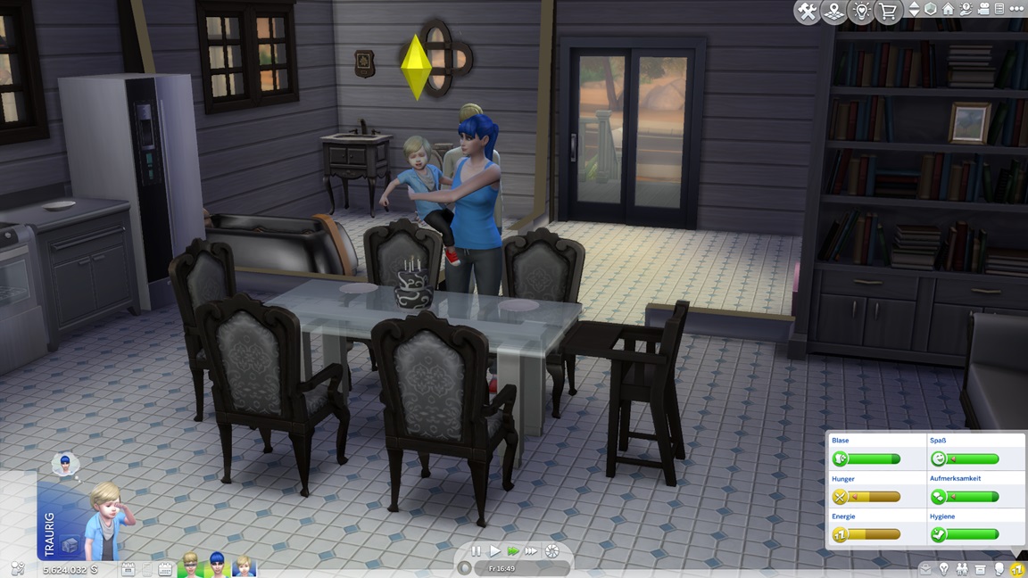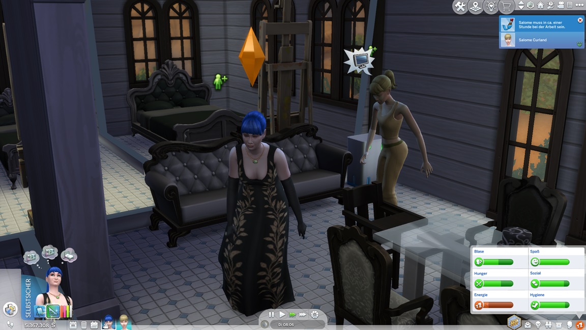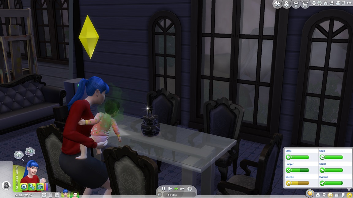 Dies könnte die Grundlage einer weiteren Episode darstellen, da ich dafür sonst ungenutzte Stimmungsräume einrichten würde (für Wut und Trauer). Sie könnte allerdings recht kurz ausfallen. Ich müsste auf einen relativ frischen Charakter zurückgreifen, da ich oft Scham und Stress mittels Belohnungen wegkaufe, und da ich den Sim auch in allerlei negative Stimmungen versetzen müsste, könnte sie recht düster ausfallen.