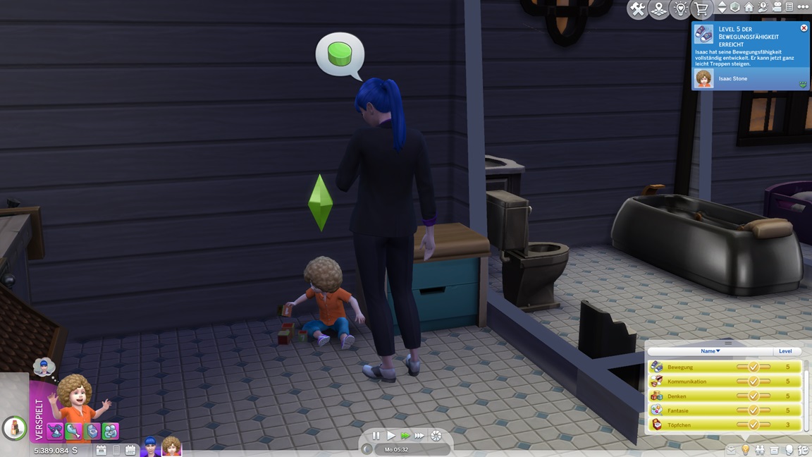 Pia erringt den vollen Säuglingsbonus, überspringt die Kleinkindzeit (bei vollem Bonus per Konsole)...