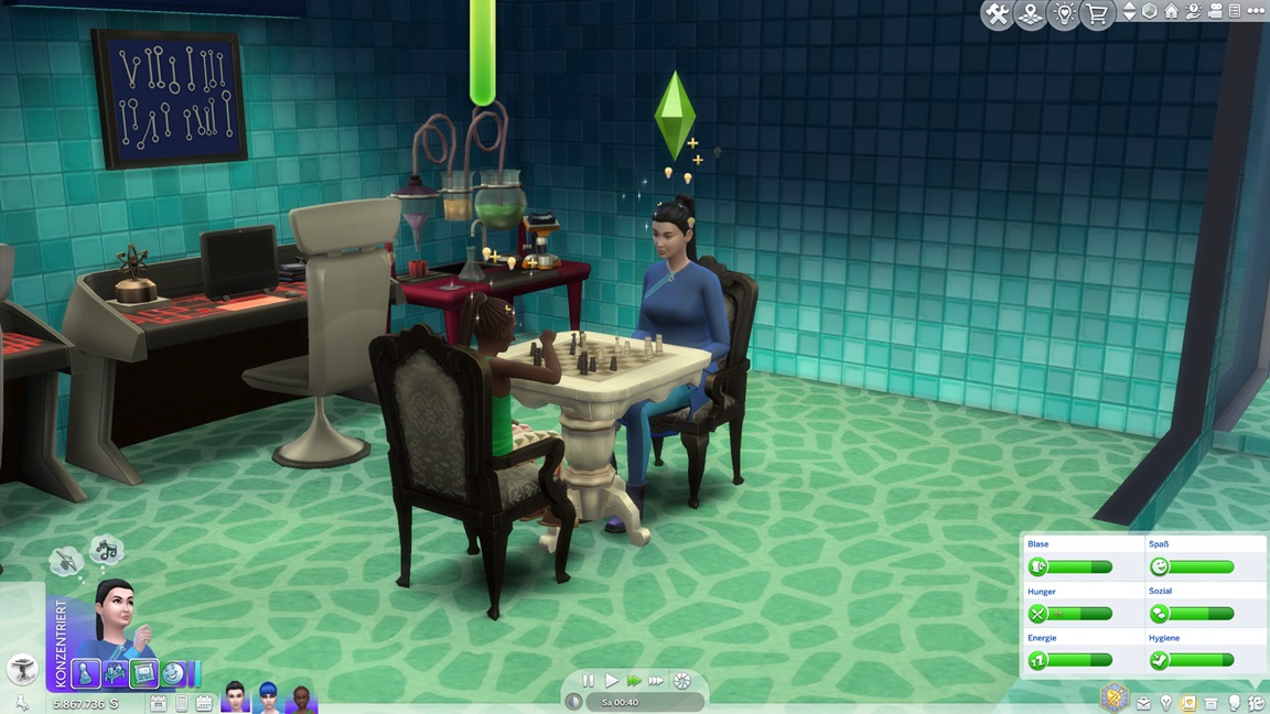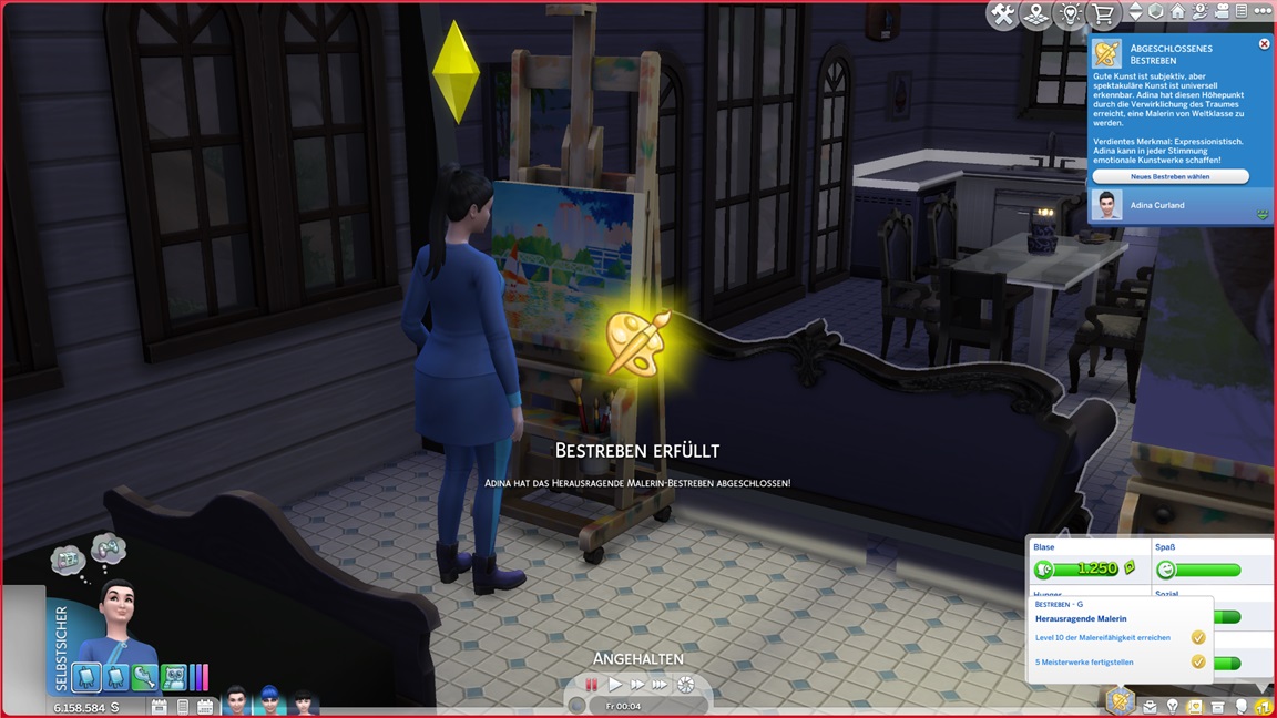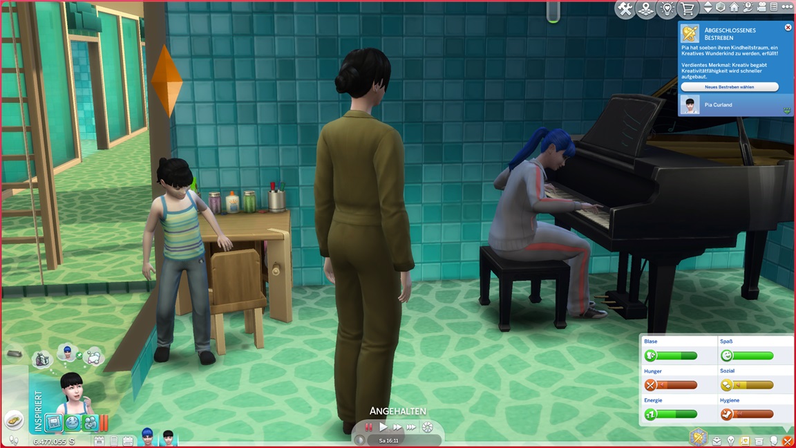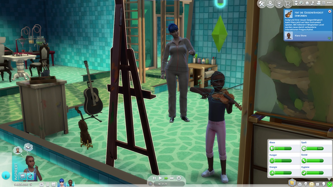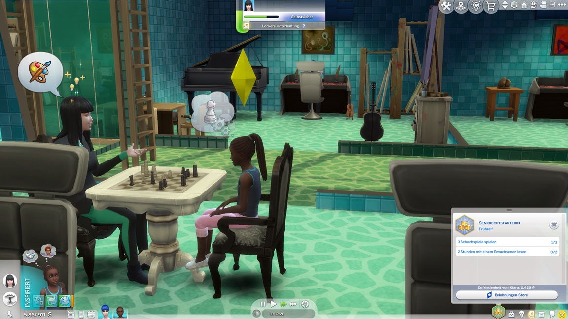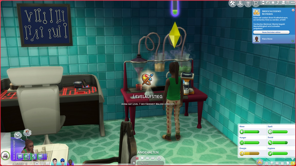 Da ich immer noch auf das Drillings-Achievement hoffe, rotiert Adina herein. Sie strebt nach Malerei, hilft aber erst einmal Klara aus.