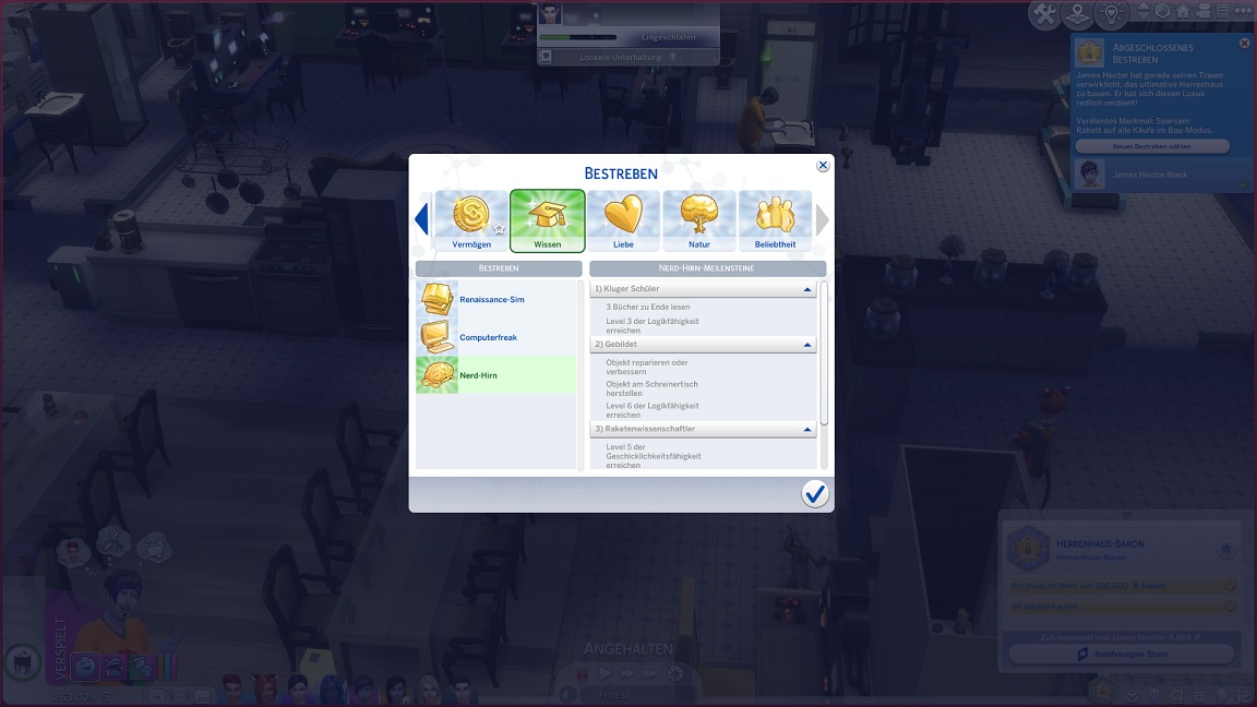 James sammelt das Herrenhaus ein und wählt dann schließlich die einzige Mannschafts-Fähigkeit, die eben keinen Jobwechsel verlangt.