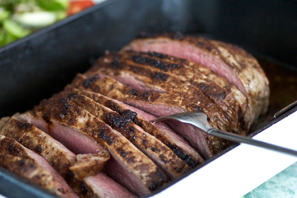 Gestern Abend gab es Steakhüfte am Stück nach Brains Langsamgarmethode. War sehr lecker.