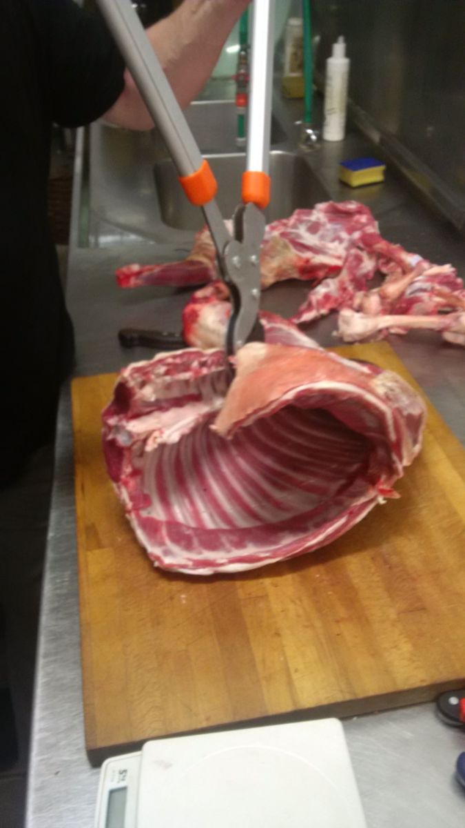Mein Schlachter hatte einfach ein gutes Messer, aber wenn es dazu kommt das wir das selber machen werd ich mich bestimmt an die Astschere erinnern.