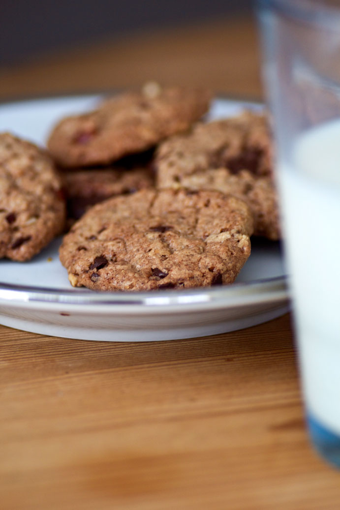 Lauwarme Chocolate Chip Cookies und Milch zum Frühstück für meine Kinder :D