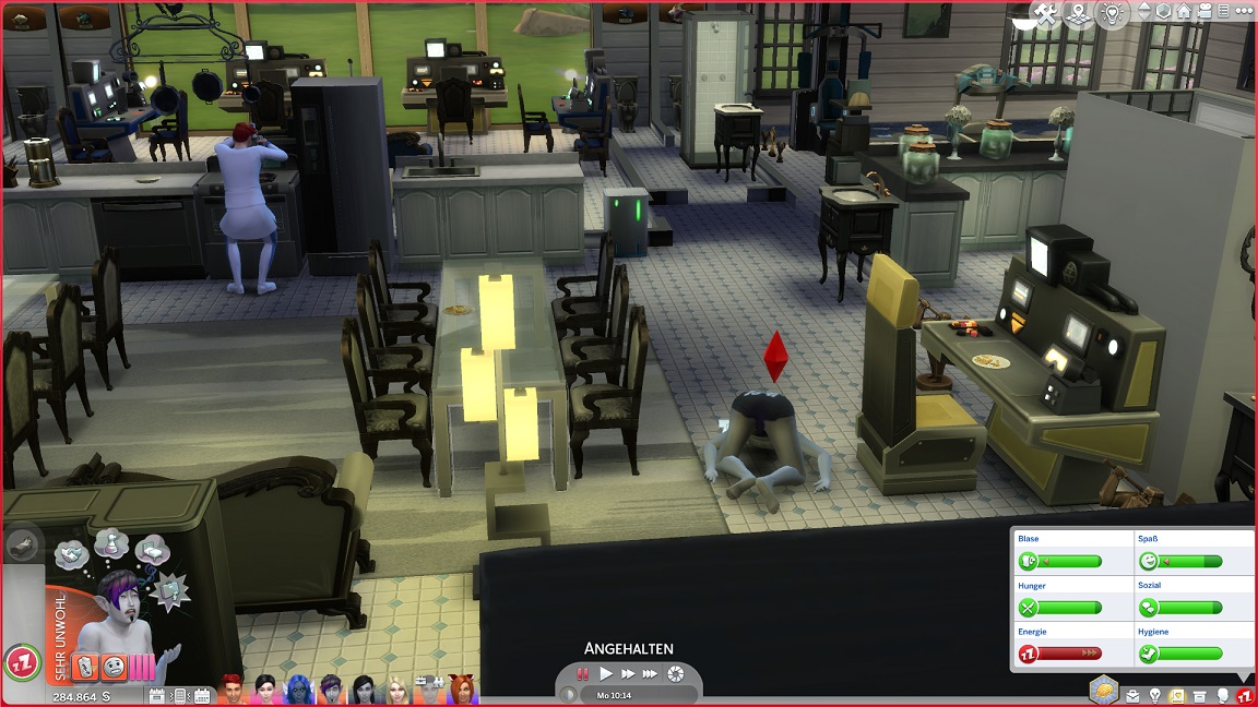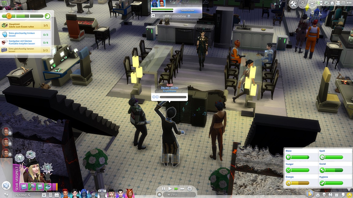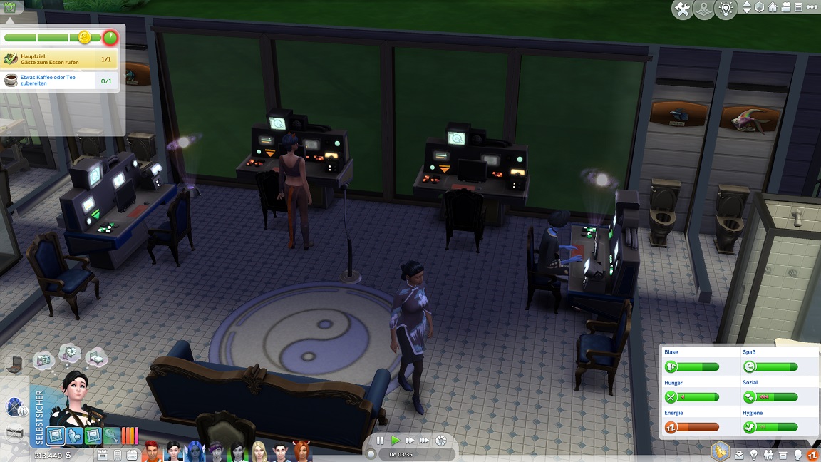 Da bemerke ich eine Besonderheit, die vielleicht die manchmal ausbleibenden Haken erklärt: Telys kehrt von der Arbeit zurück und übernimmt eine Gastgeberrolle. (Lisa bleibt hingegen ebenfalls Gastgeberin.)