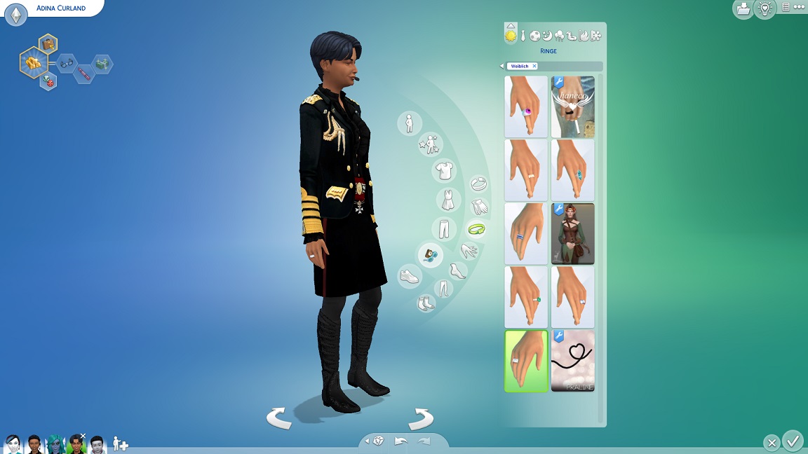 Daraufhin nehme ich Veränderungen vor: Adina übernimmt den Nachnamen ihres Ehemannes und trägt ihren Ehering bei passenden Gelegenheiten an der rechten Hand, wobei sie darunter die gewöhnliche Uniform sowie die Galauniform sieht.