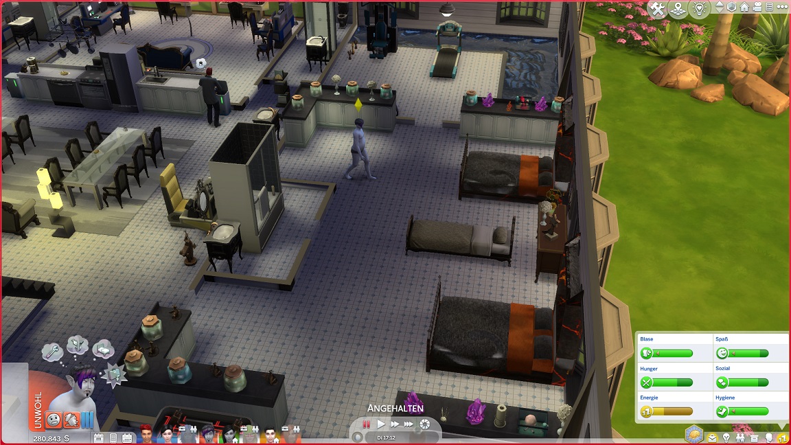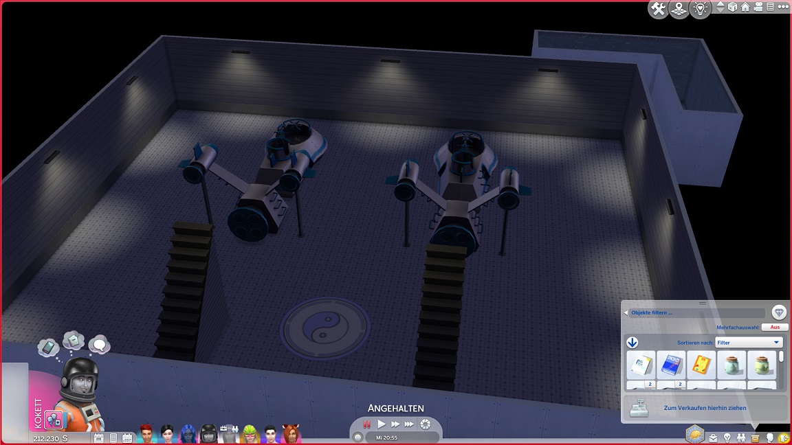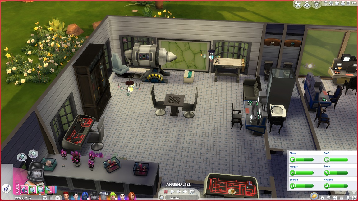 Das Bücherregal ergänzt den den Maschinenraum. Dafür weichen Beistelltisch (neben Artjoms Bett) und das Kinderlabor (neben die Spielkiste).