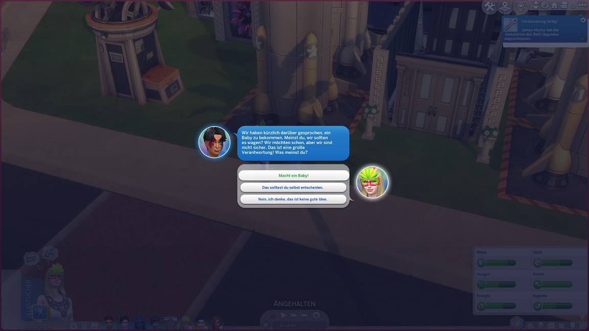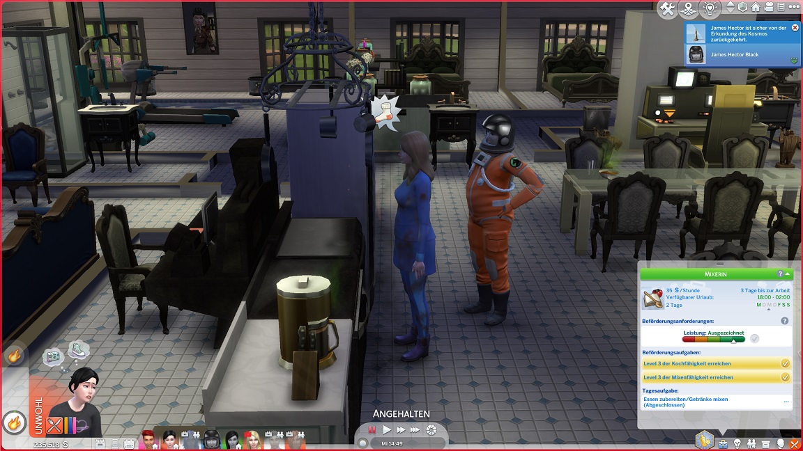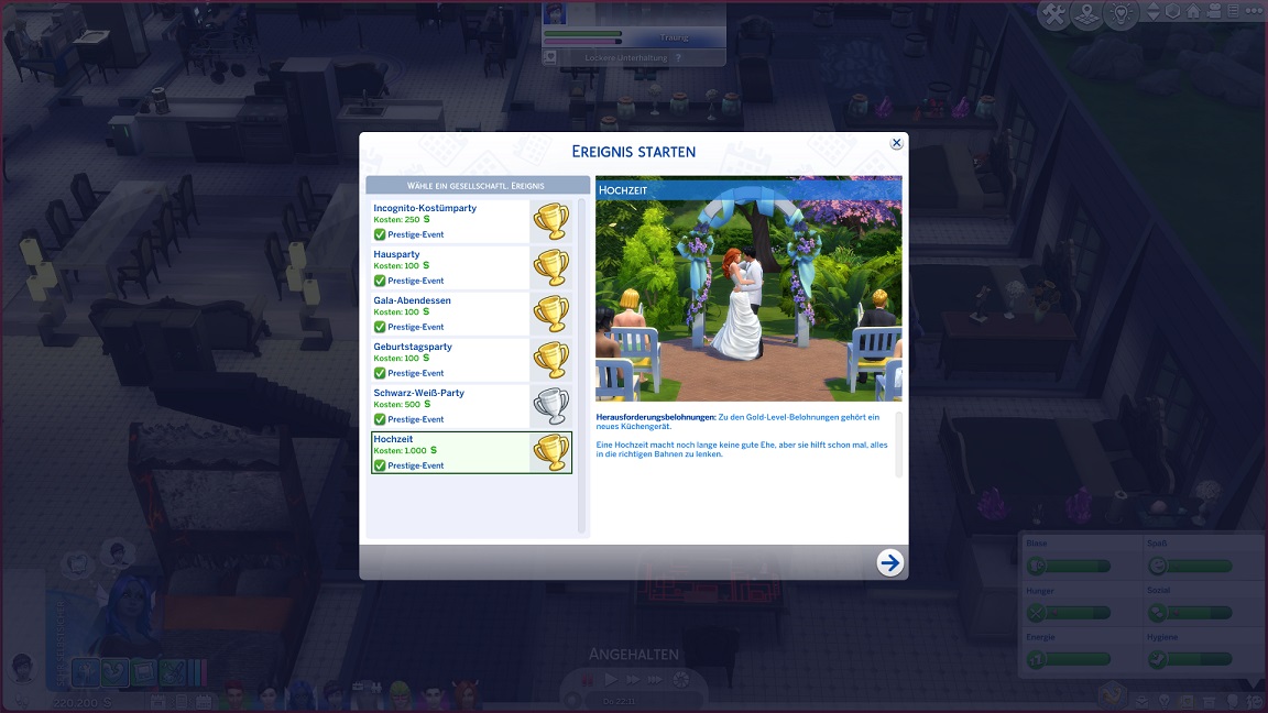... wobei ich Lisas neuen Zählerstand nicht verstehe. Eigentlich sollte ihr Party-Zähler nach der Hochzeit noch auf 1 stehen, und da stand er auch. Ich habe keine Ahnung, wo die anderen beiden Nummern herkommen sollen.