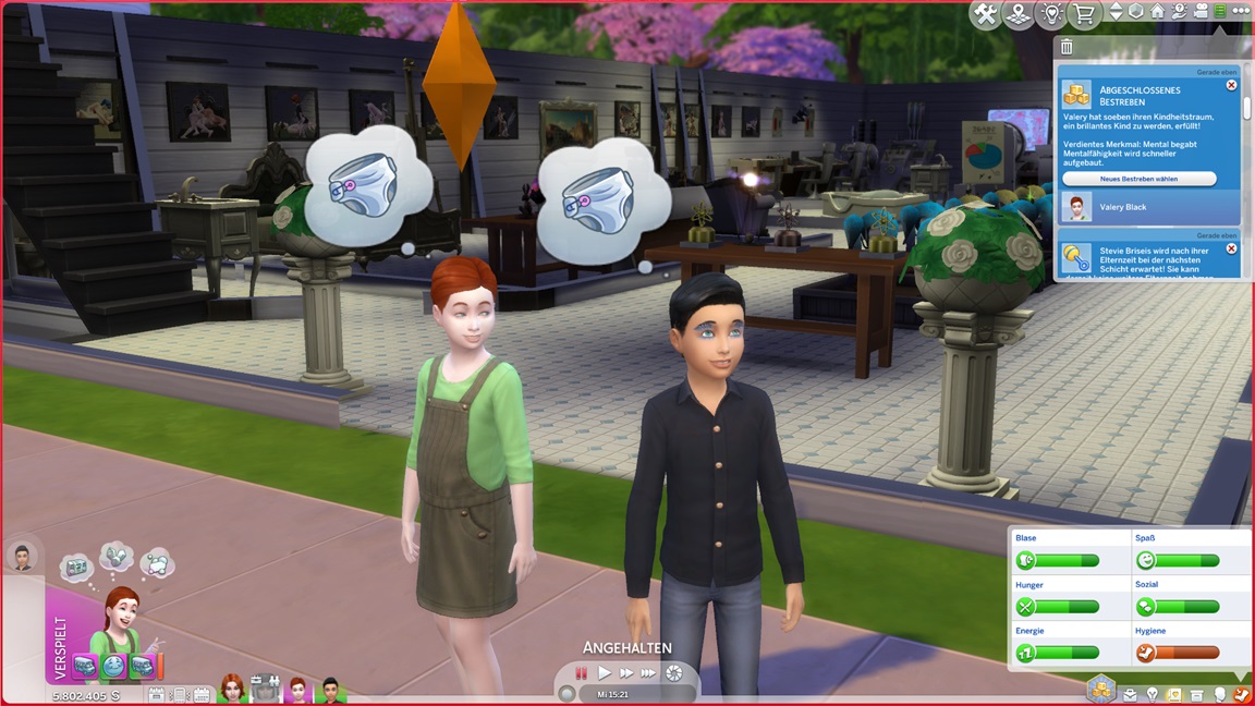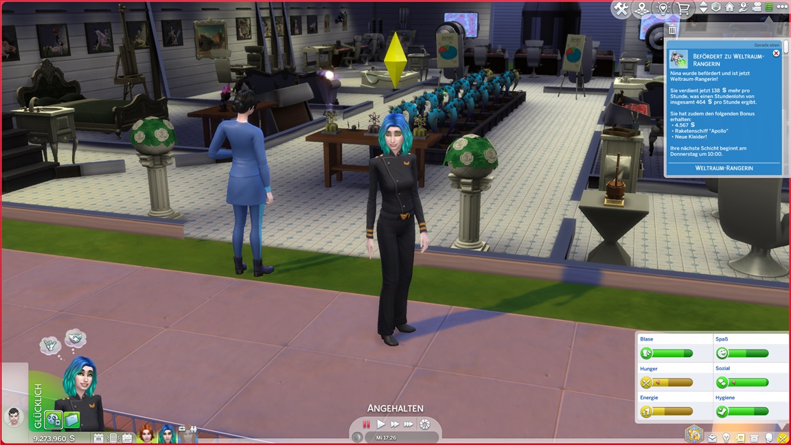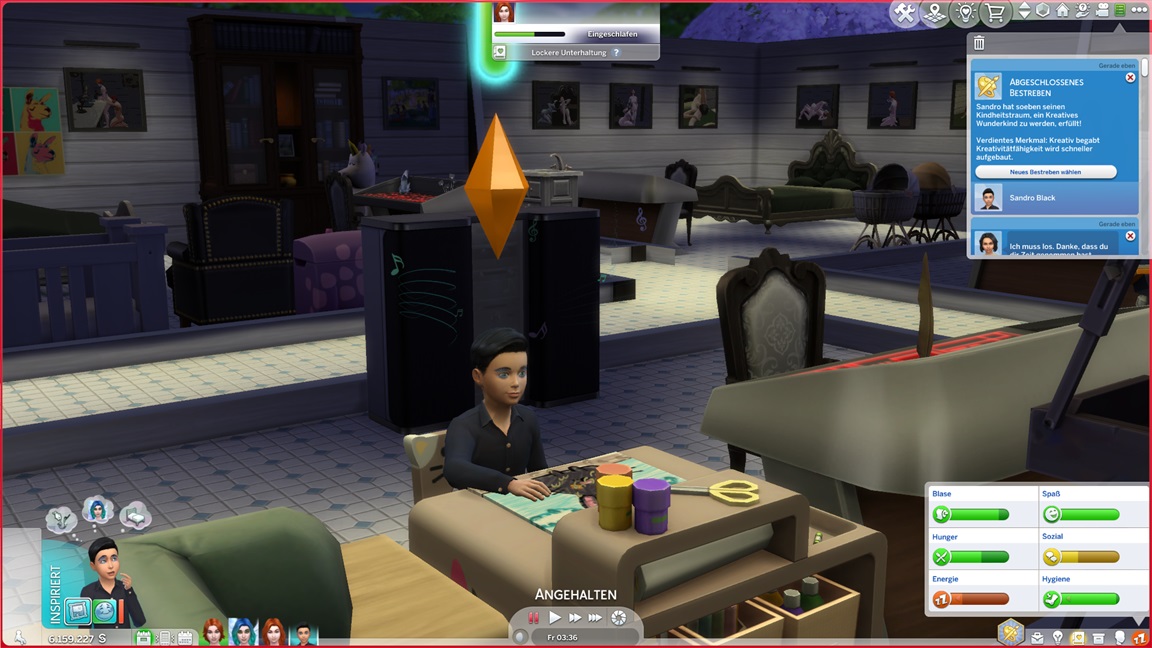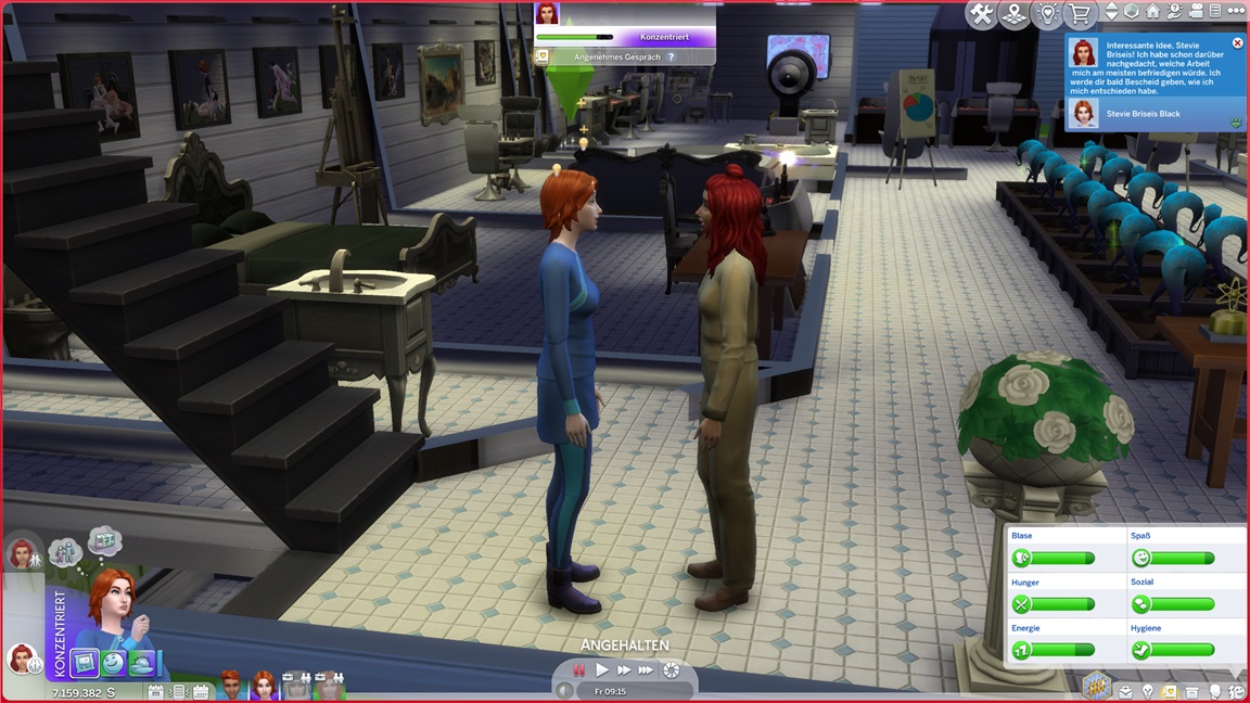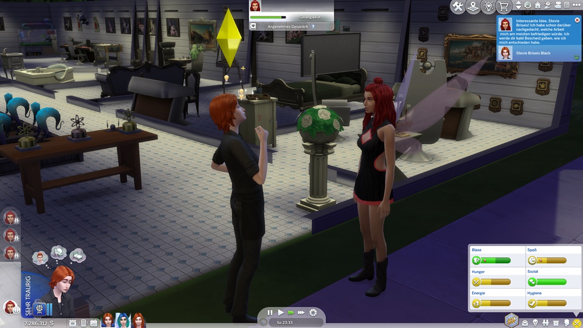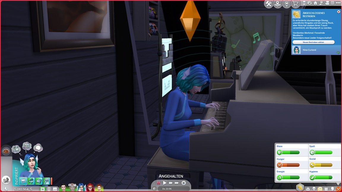 Nina gewinnt Stevie als beste Freundin. Andromeda benötigt noch einige auf Maximum gebrachte Fertigkeiten, darunter zwei Musikinstrumente.