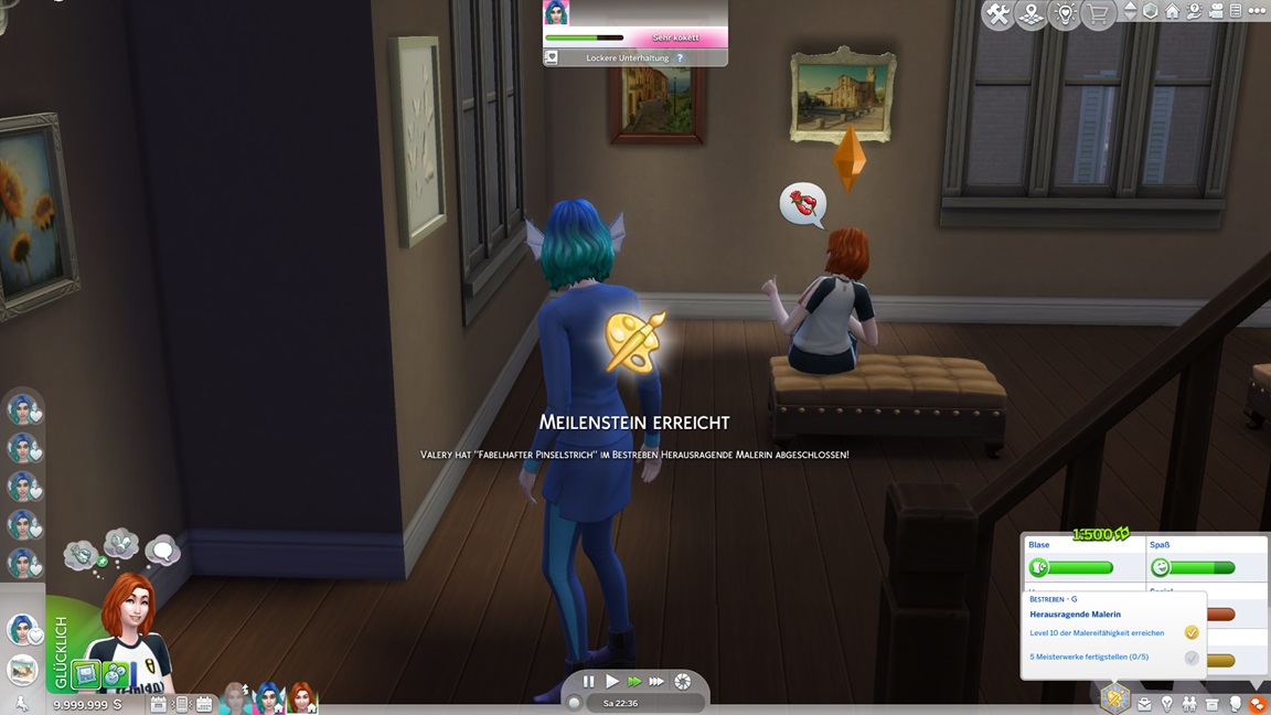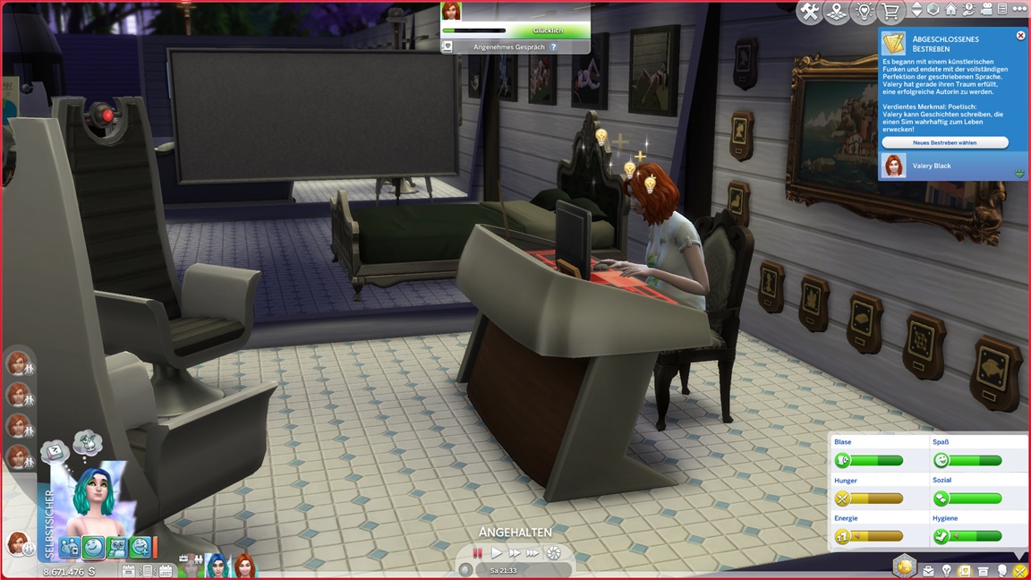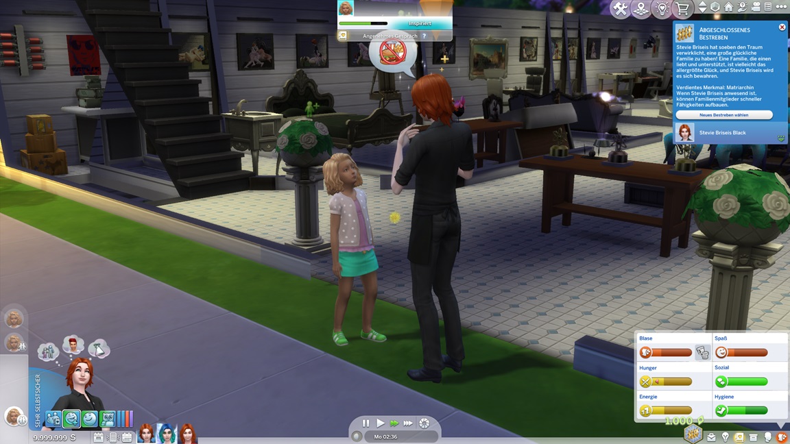 Eigentlich fehlt ihr noch das Herrenhaus-Bestreben, doch dieses erhält sie von der Konsole geschenkt, da sie dafür einfach nur in einen anderen Haushalt wechseln müsste.