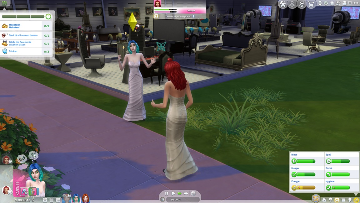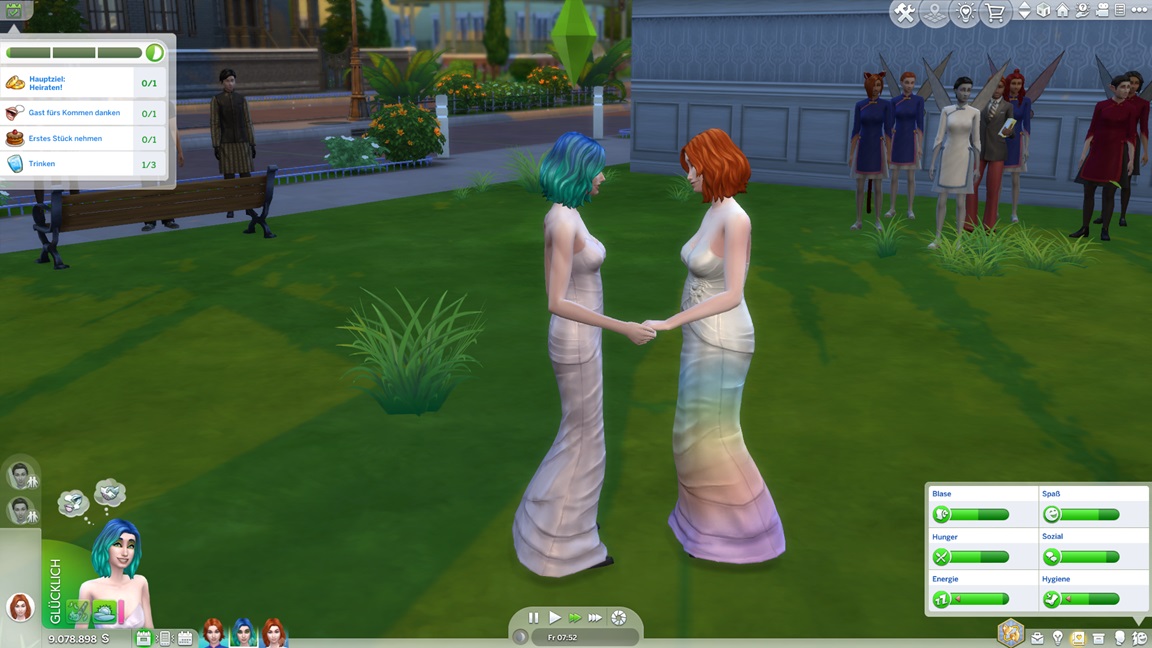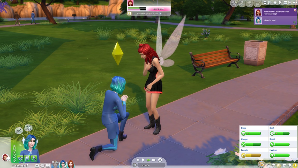 Sie beschließen, direkt Ringe zu tauschen. (Fun fact: Vor dem Date besaßen sie nur minimalste Romantikwerte, Nachwirkungen eines "Bezaubernd vorstellen".)
